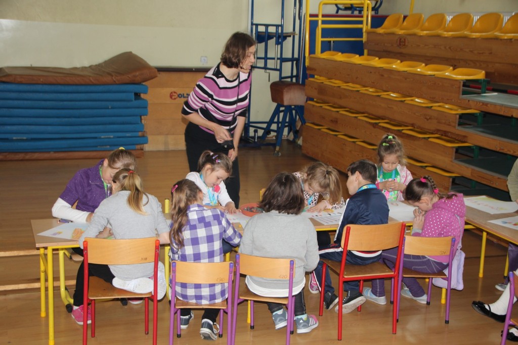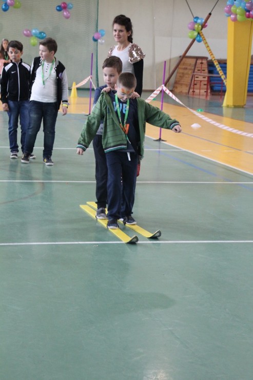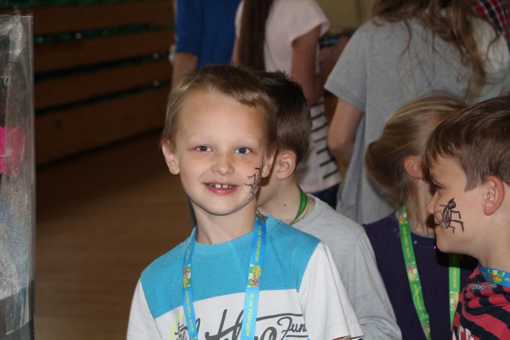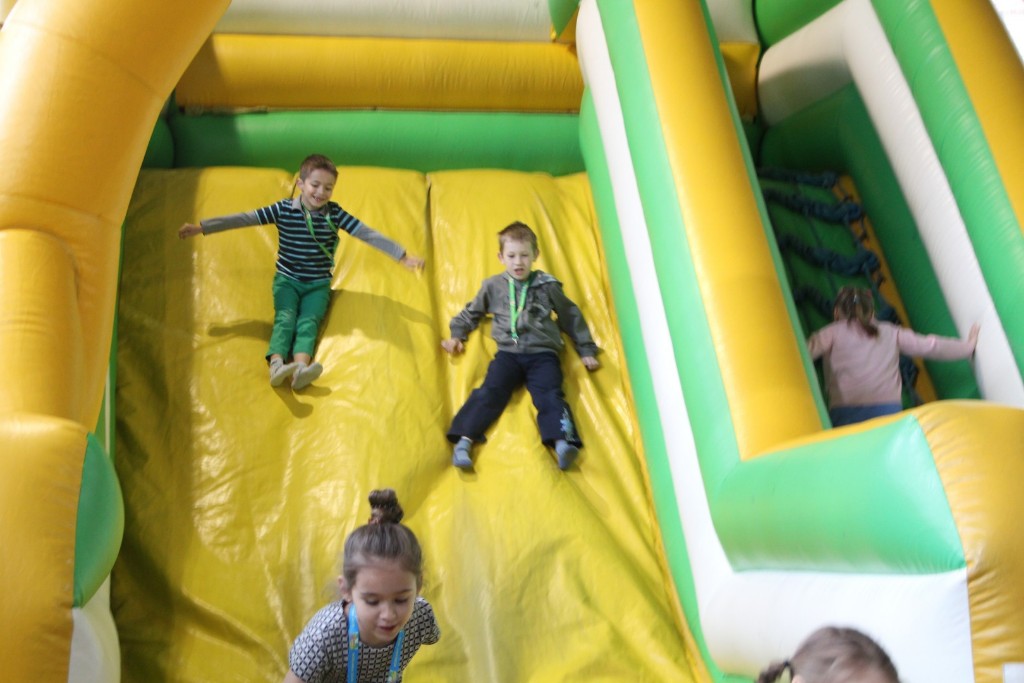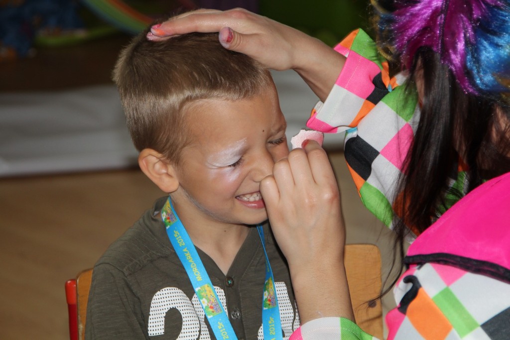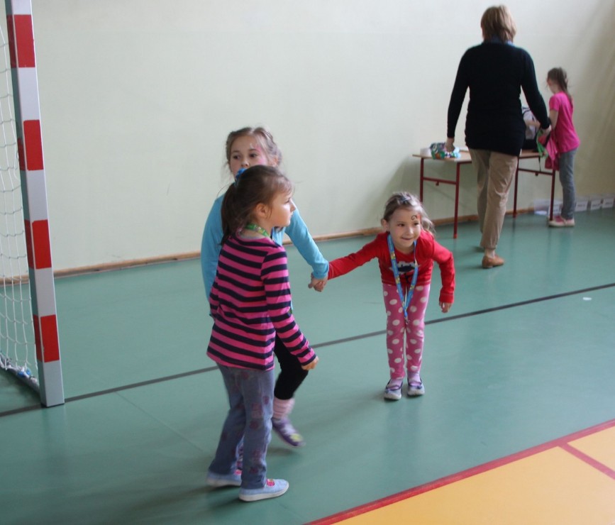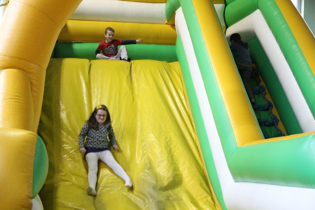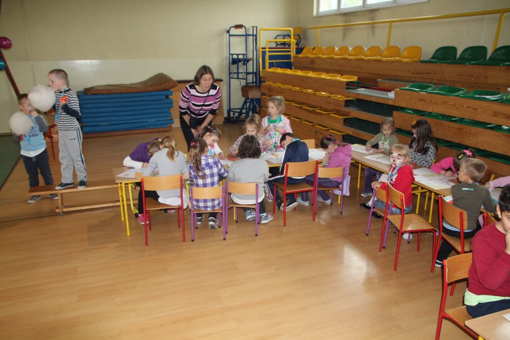 Na parkiecie hali sportowej już od godziny 9 – tej trwała odlotowa impreza prowadzona przez animatorów. Dzieci tańczyły w rytm znanych piosenek. Mogły do woli poszaleć na ogromnej, dmuchanej zjeżdżalni. Każdy mógł skorzystać z usługi: malowanie twarzy, co sprawiło, że zrobiło się nadzwyczaj kolorowo. Wspaniałą atrakcją były również baloniki, które zgodnie z życzeniem dzieci przekształcały się m.in.: w zwierzątka, rośliny – fantazji nie brakowało. Ponadto na specjalnie życzenie najmłodszych uczestników imprezy, szkolna grupa cheerleaders zaprezentowała pokaz swoich umiejętności.