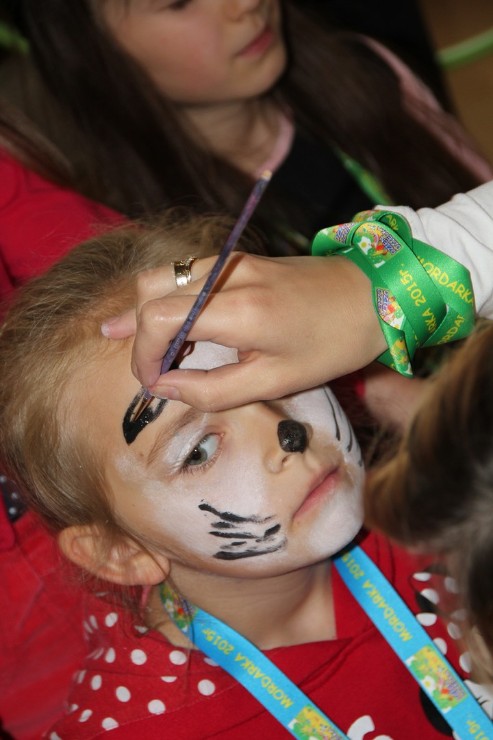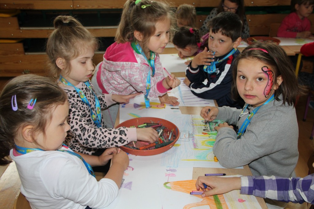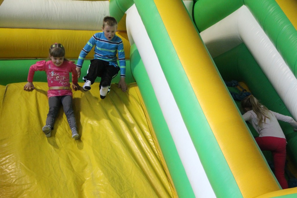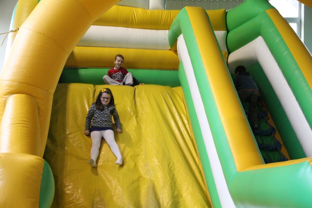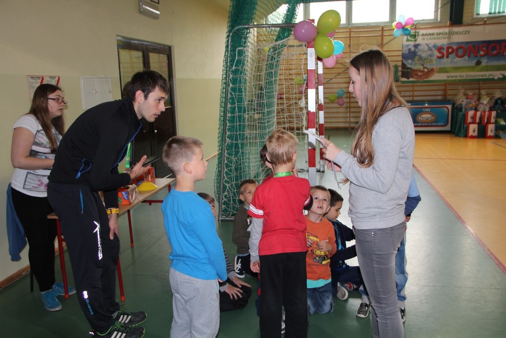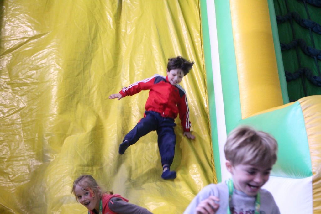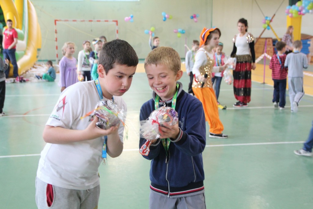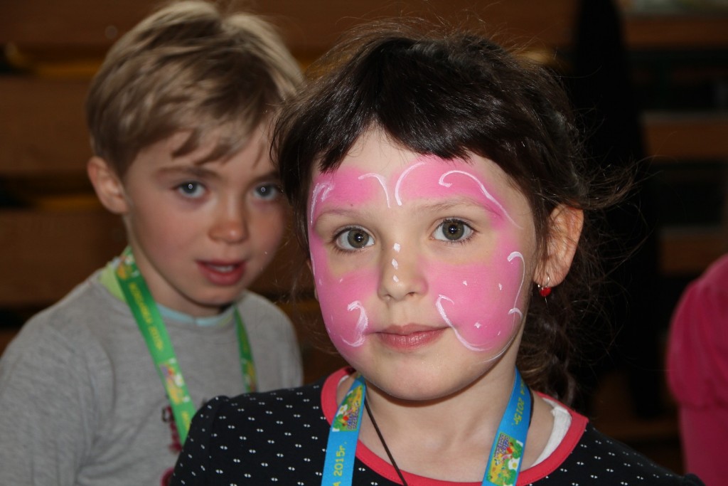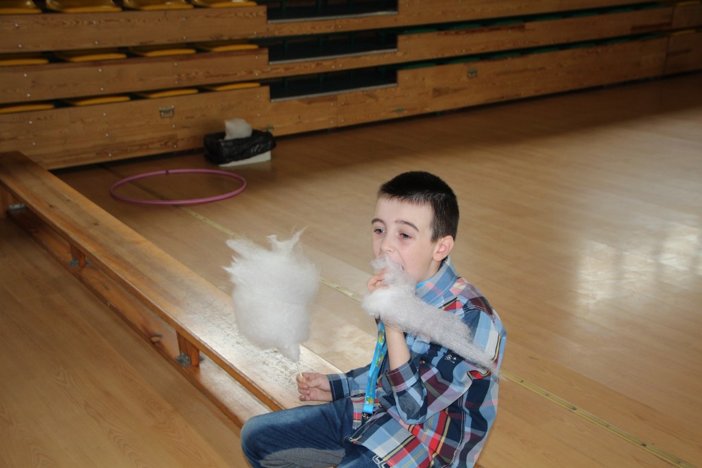 Na parkiecie hali sportowej już od godziny 9 – tej trwała odlotowa impreza prowadzona przez animatorów. Dzieci tańczyły w rytm znanych piosenek. Mogły do woli poszaleć na ogromnej, dmuchanej zjeżdżalni. Każdy mógł skorzystać z usługi: malowanie twarzy, co sprawiło, że zrobiło się nadzwyczaj kolorowo. Wspaniałą atrakcją były również baloniki, które zgodnie z życzeniem dzieci przekształcały się m.in.: w zwierzątka, rośliny – fantazji nie brakowało. Ponadto na specjalnie życzenie najmłodszych uczestników imprezy, szkolna grupa cheerleaders zaprezentowała pokaz swoich umiejętności.
