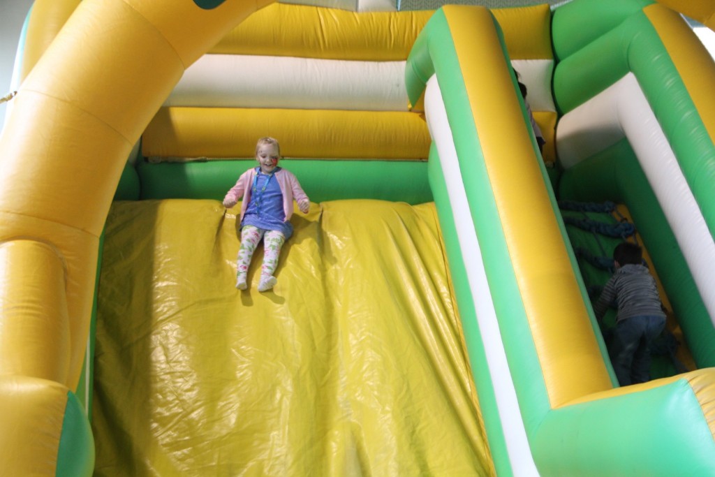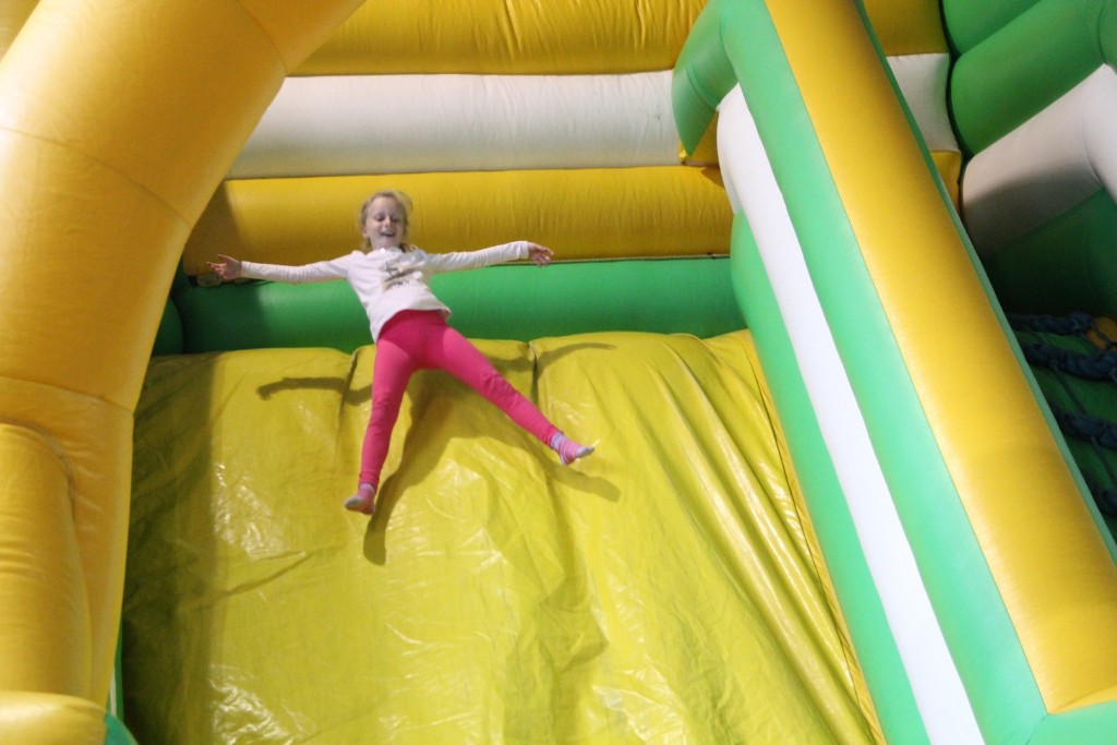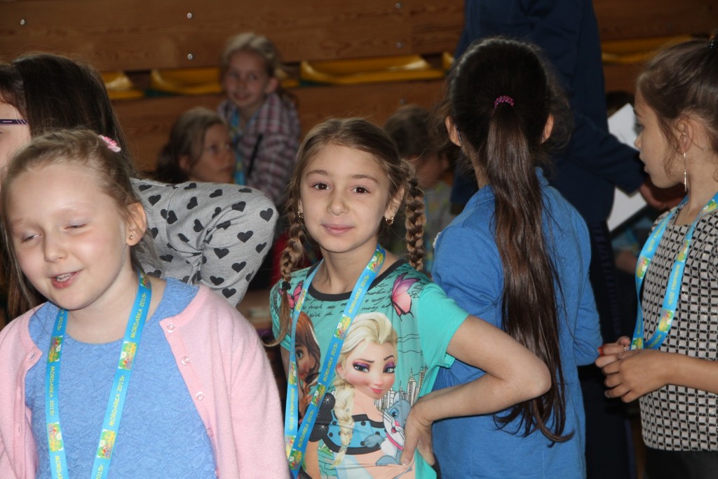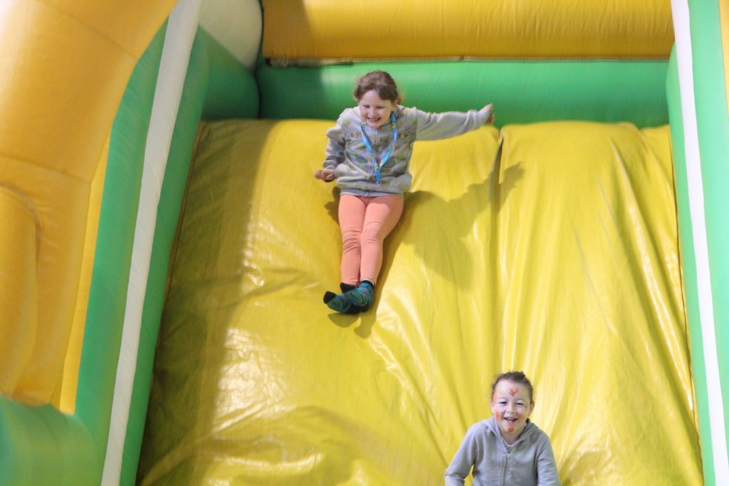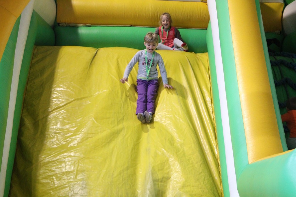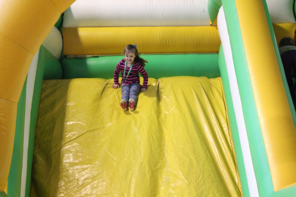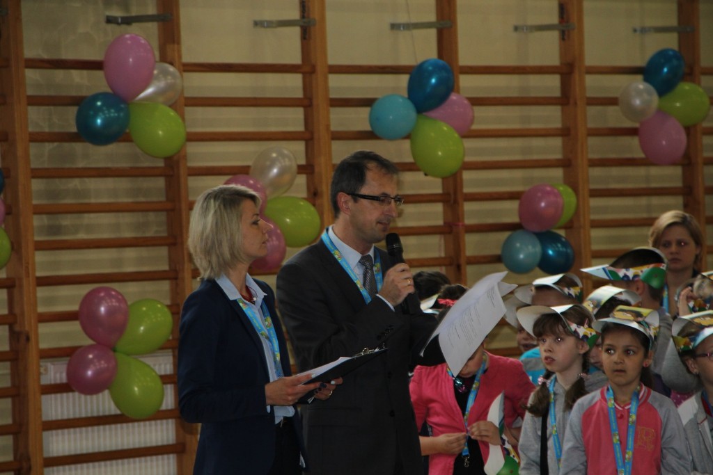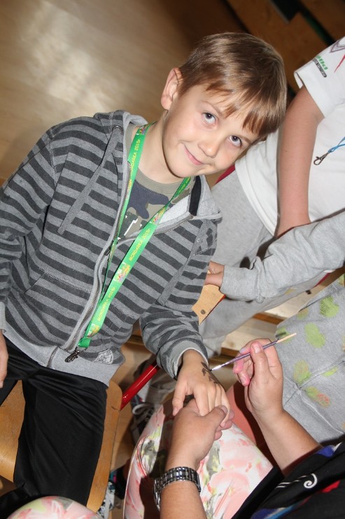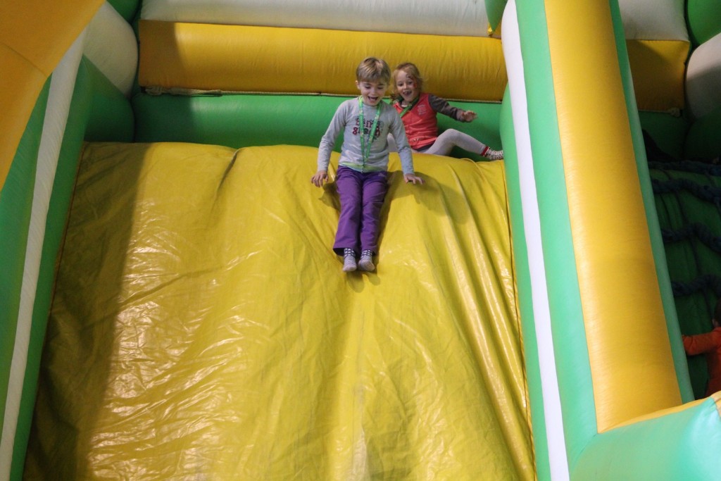 Na parkiecie hali sportowej już od godziny 9 – tej trwała odlotowa impreza prowadzona przez animatorów. Dzieci tańczyły w rytm znanych piosenek. Mogły do woli poszaleć na ogromnej, dmuchanej zjeżdżalni. Każdy mógł skorzystać z usługi: malowanie twarzy, co sprawiło, że zrobiło się nadzwyczaj kolorowo. Wspaniałą atrakcją były również baloniki, które zgodnie z życzeniem dzieci przekształcały się m.in.: w zwierzątka, rośliny – fantazji nie brakowało. Ponadto na specjalnie życzenie najmłodszych uczestników imprezy, szkolna grupa cheerleaders zaprezentowała pokaz swoich umiejętności.