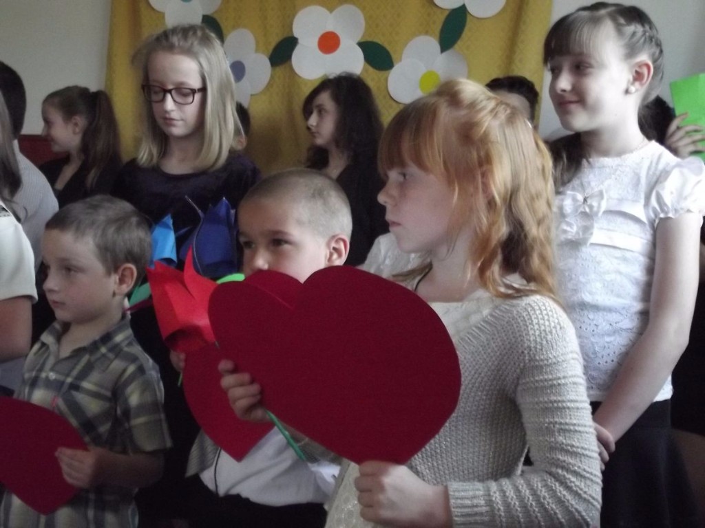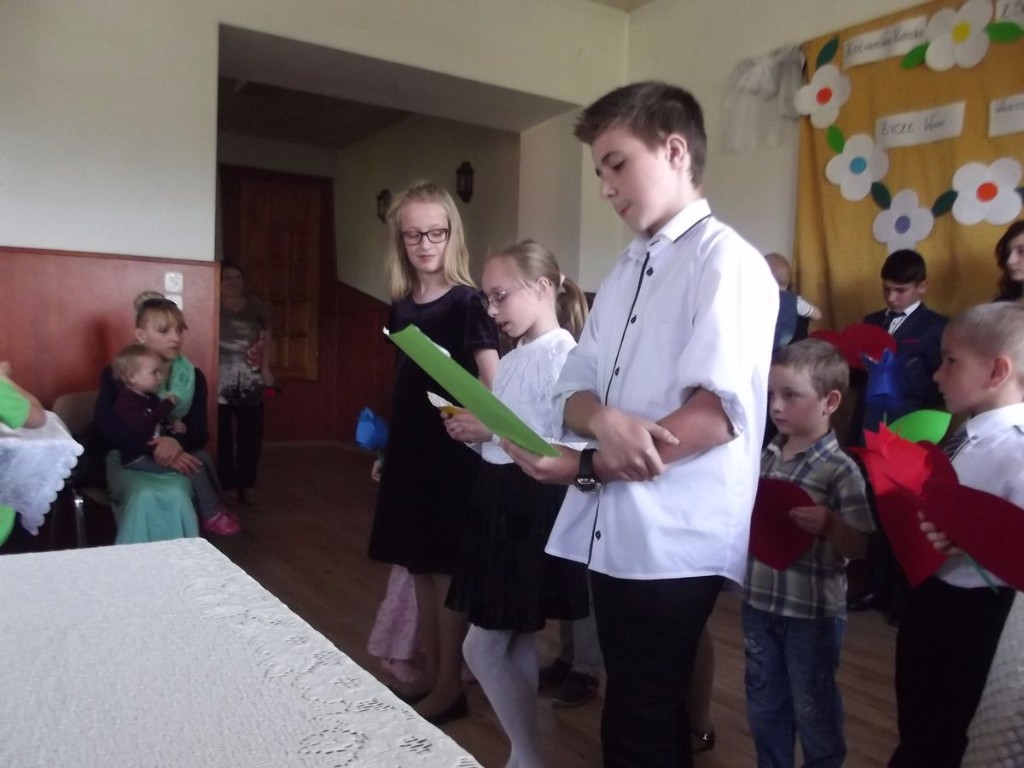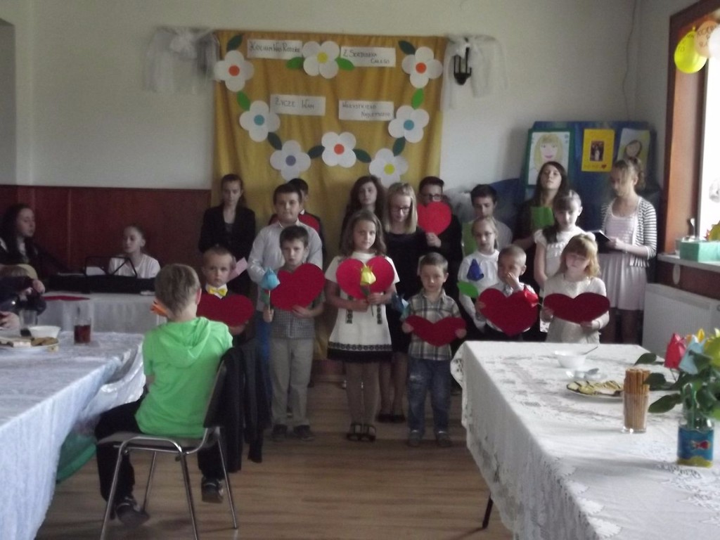 W tym szczególnym dniu świetlica zamieniła się w scenę, na której dzieci i młodzież pięknie recytowały wiersze i śpiewały piosenki. Na koniec części artystycznej nasi aktorzy zaśpiewali rodzicom ,,Sto lat". Następnie dzieci wręczyły swoim kochanym rodzicom własnoręcznie wykonane upominki, słodkie buziaki oraz najserdeczniejsze życzenia płynące z małych serduszek. Na zakończenie wszyscy zostali zaproszeni na słodki poczęstunek. Atmosfera tej uroczystości była podniosła i niezwykle rodzinna.