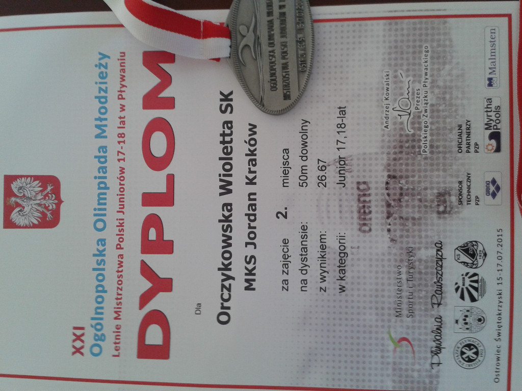 Wioli gratulujemy tak wysokich osiągnięć i życzymy wytrwałości i sukcesów w dalszej karierze pływackiej!