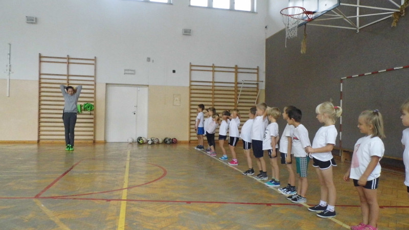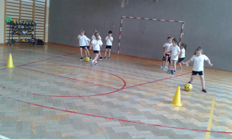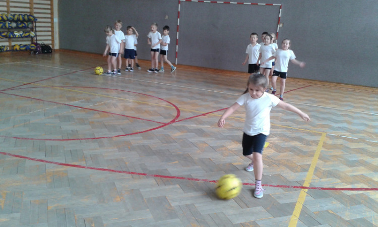 Obecnie uczniowie pierwszych klas zdobywają sprawność „Piłkarz” i po opanowaniu określonych umiejętności otrzymają specjalne oznaczenia, które wklejone zostaną do legitymacji szkolnych. Jak mówi Dyrektor placówki - Magdalena Strzebońska zajęcia bardzo spodobały się pierwszoklasistom, a różnorodne ćwiczenia i zabawy sportowe jakie zakłada program pozwalają najmłodszym na podnoszenie sprawności fizycznej, co połączone jest jednocześnie z dobrą zabawą. Świadczą o tym chociażby poniższe fotografie.