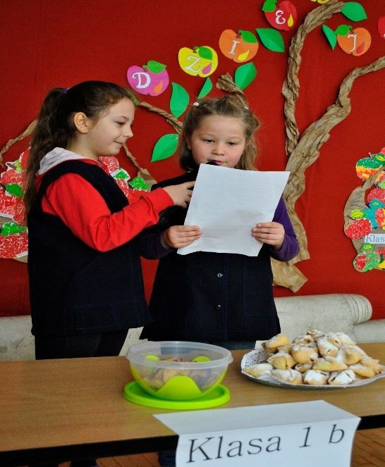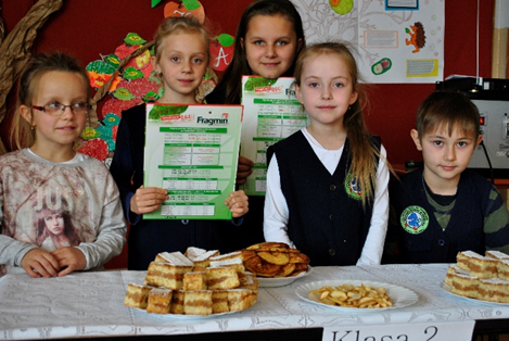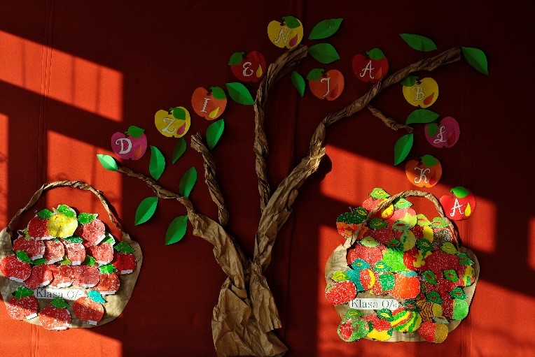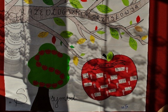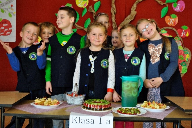 Uczniowie mieli spotkanie z lokalnym sadownikiem, Stanisławem Moskalem , który w ciekawy sposób przedstawił im prace sadownicze. Jednym z zadań było zebranie informacji o jabłku i uzyskanie odpowiedzi na pytania : dlaczego jabłka są stale dostępne lub rzadko bywają w ich domu.*Czy ich bliscy mają swoje ulubione odmiany? Czy łatwo je dziś znaleźć? Ponadto uczniowie wykonali piękne prace plastyczne o jabłku w różnorodnych technikach . Starsi uczniowie szkoły podstawowej wykonali fantastyczne AUTOMATY JABŁKOWE , aby zachęcić wszystkich do jedzenia tych owoców .Gimnazjaliści natomiast przygotowali plakaty zawierające m.in. informacje o symbolice jabłka w literaturze , przysłowiach , a jedna z klas patriotyczny plakat z jabłkiem w tle. Podsumowaniem tych działań był DZIEŃ JABŁKA - 5. listopada kiedy wszyscy uczniowie prezentowali na forum szkoły swoje prace oraz przygotowane przez siebie potrawy z jabłek ( przy dużym zaangażowaniu rodziców ) . Miała miejsce degustacja smakołyków , które nie tylko pięknie się prezentowały ale również wybornie smakowały .
