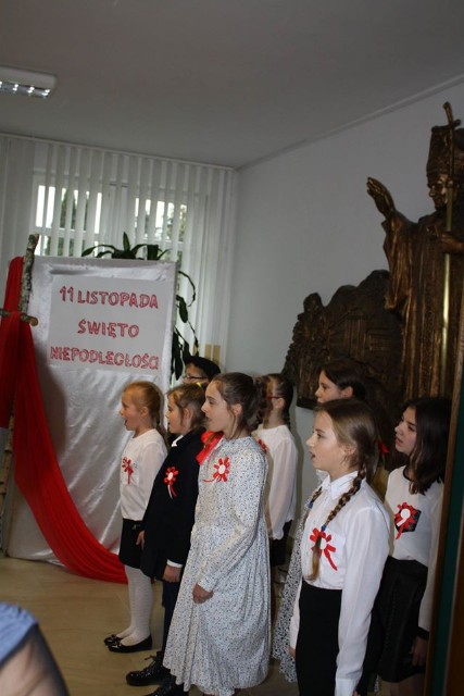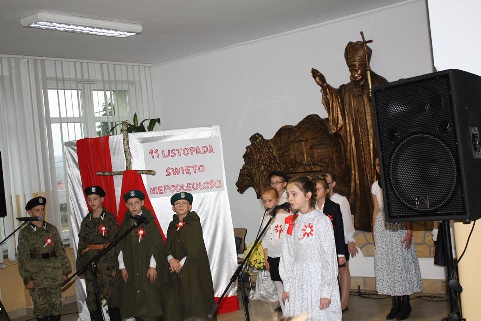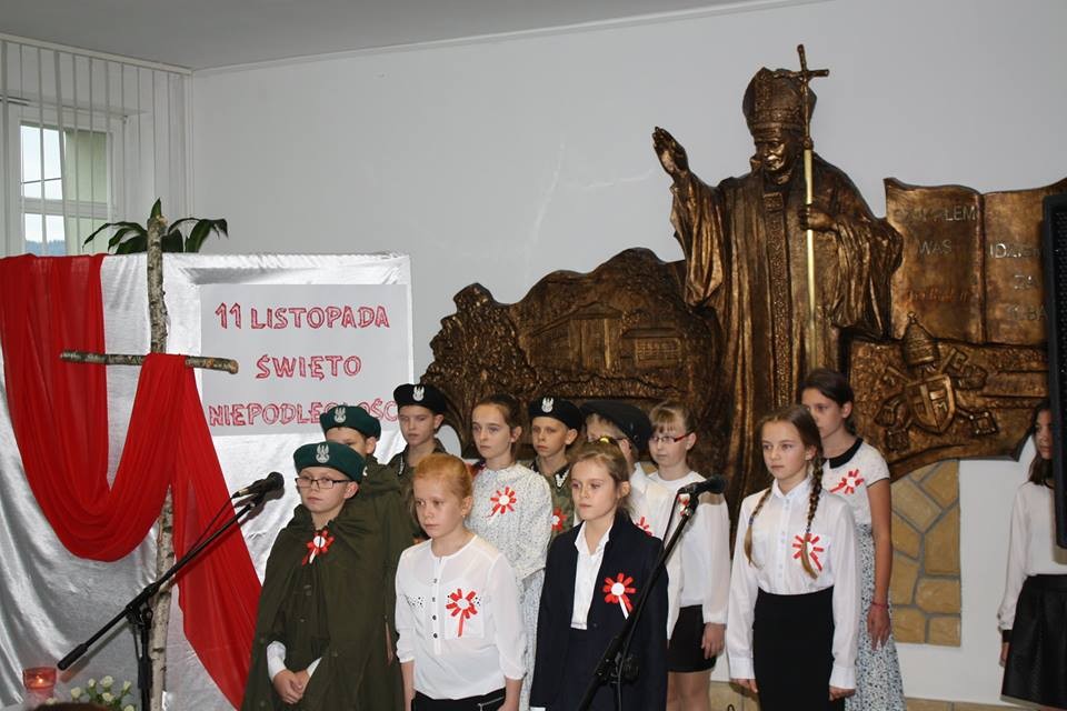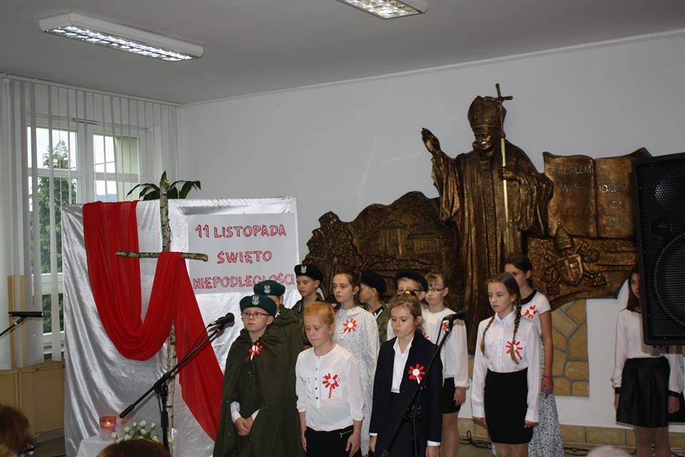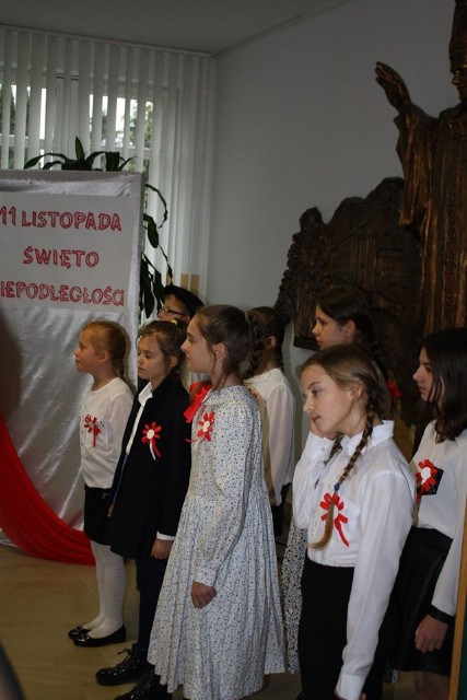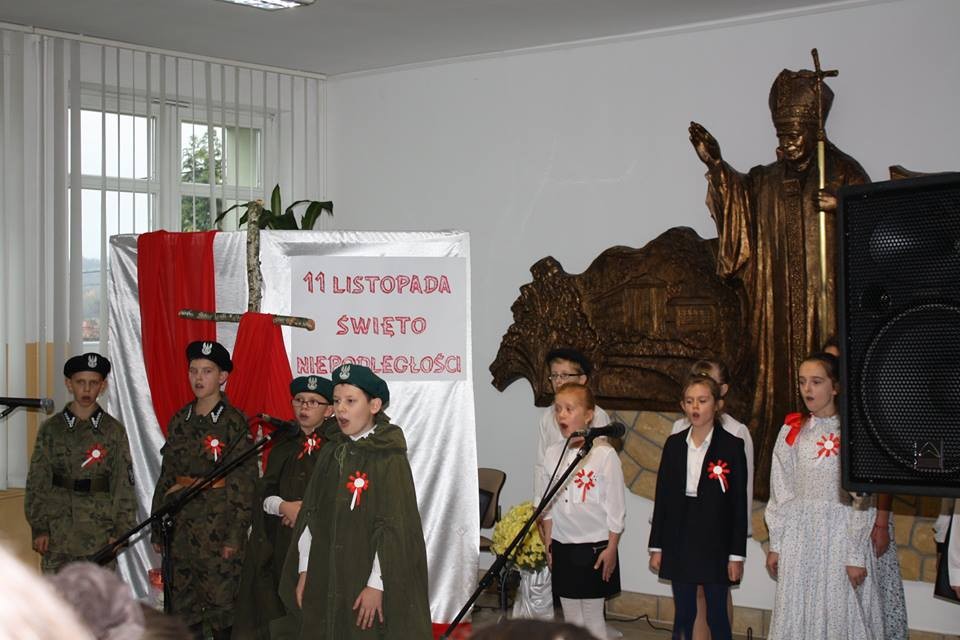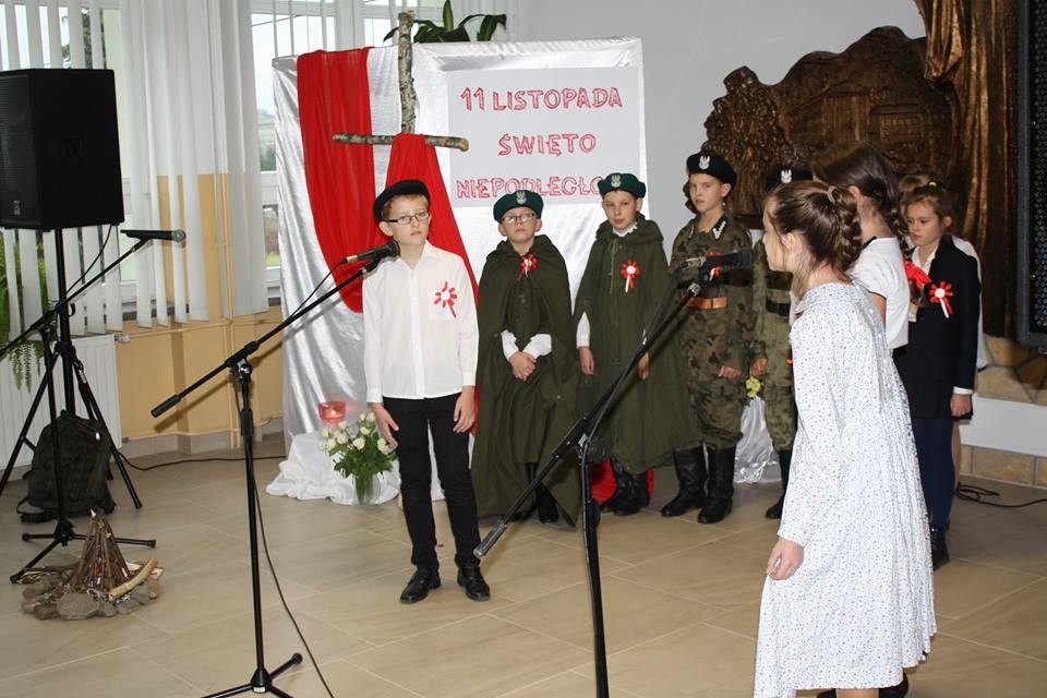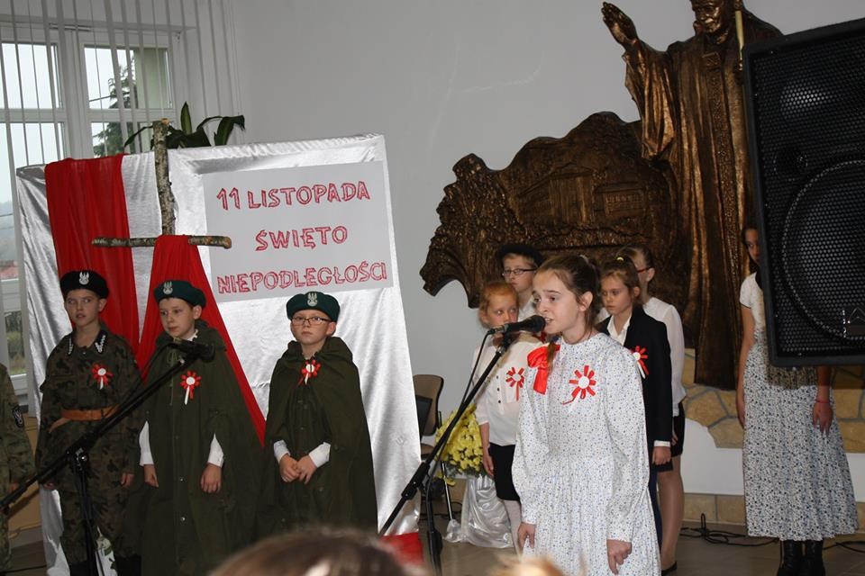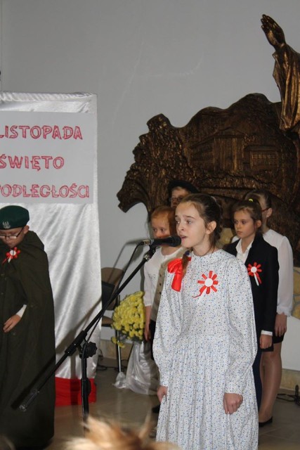 W przededniu 97 rocznicy Święta Odzyskania Niepodległości w Zespole Szkół nr 1 w Męcinie odbyła się uroczysta akademia. Na tle brzozowego krzyża i polskich barw narodowych uczniowie zaprezentowali w piosenkach i wierszach postacie historycznych bohaterów. Młodzi aktorzy, grający role żołnierzy z tamtych czasów, siedząc przy ognisku w strojach wiarusów, wspominali wielkich dowódców, straszne wojenne znoje oraz dni szczęśliwego powrotu do domu. Przywołali atmosferę tęsknoty za wolnością Ojczyzny oraz euforii z powodu odzyskania niepodległości. Cały program artystyczny ubogacał śpiew szkolonego chóru.