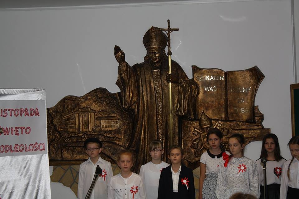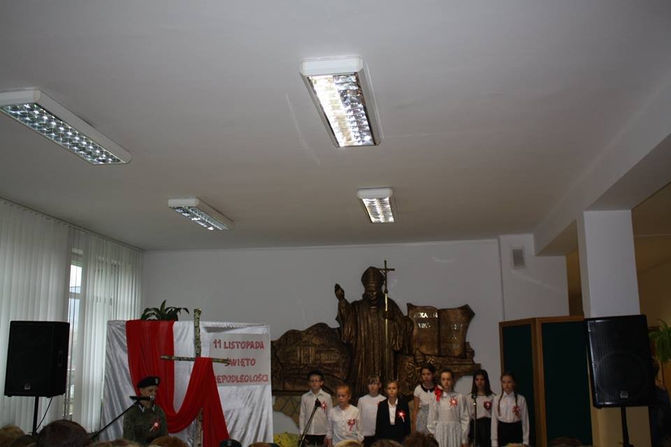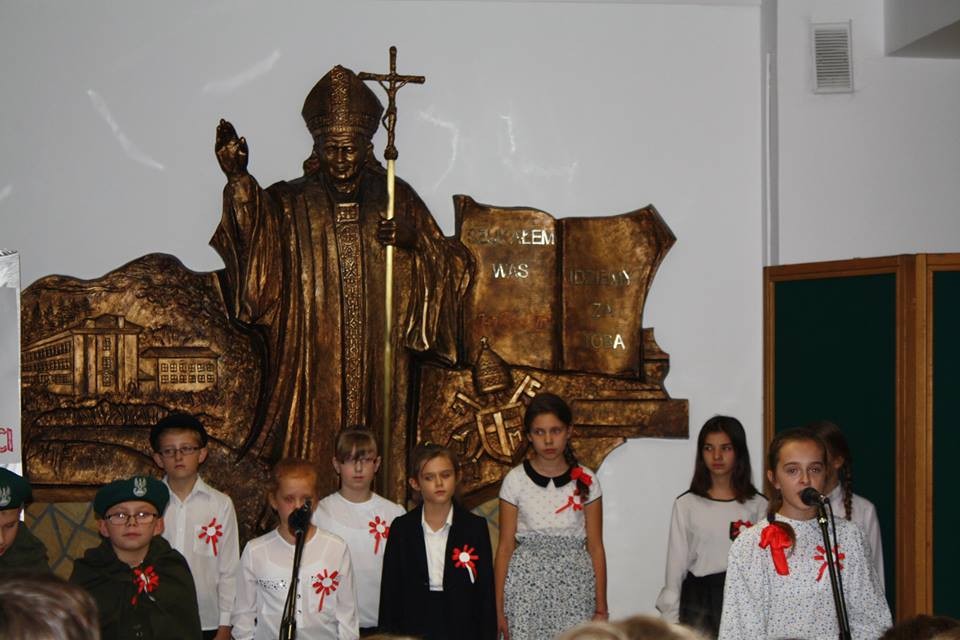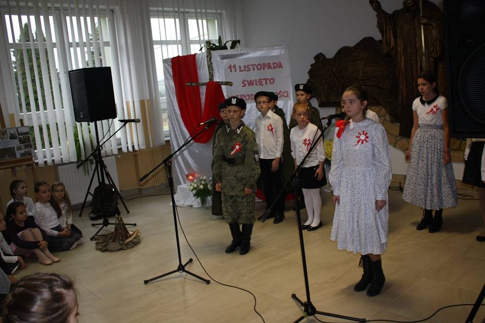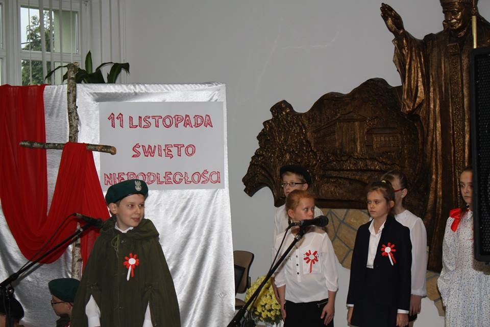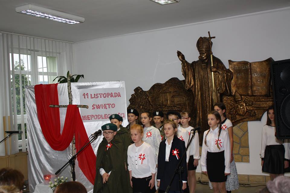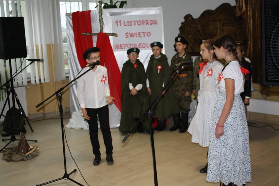 W przededniu 97 rocznicy Święta Odzyskania Niepodległości w Zespole Szkół nr 1 w Męcinie odbyła się uroczysta akademia. Na tle brzozowego krzyża i polskich barw narodowych uczniowie zaprezentowali w piosenkach i wierszach postacie historycznych bohaterów. Młodzi aktorzy, grający role żołnierzy z tamtych czasów, siedząc przy ognisku w strojach wiarusów, wspominali wielkich dowódców, straszne wojenne znoje oraz dni szczęśliwego powrotu do domu. Przywołali atmosferę tęsknoty za wolnością Ojczyzny oraz euforii z powodu odzyskania niepodległości. Cały program artystyczny ubogacał śpiew szkolonego chóru.