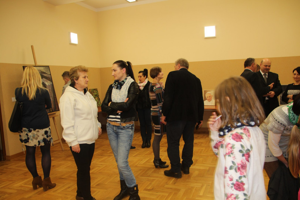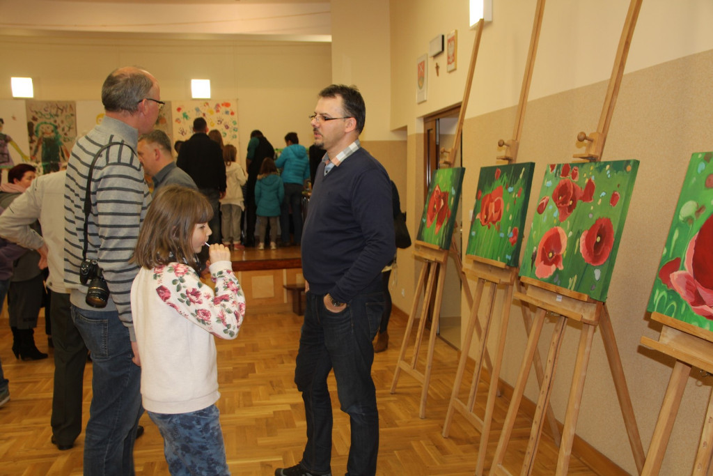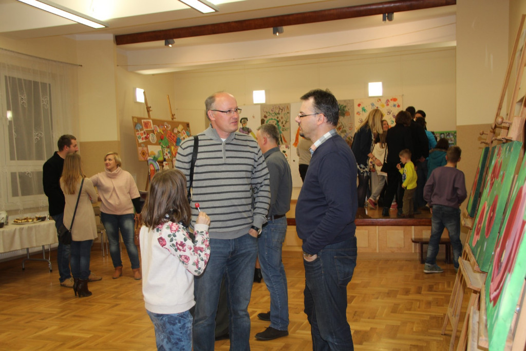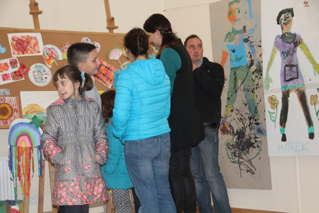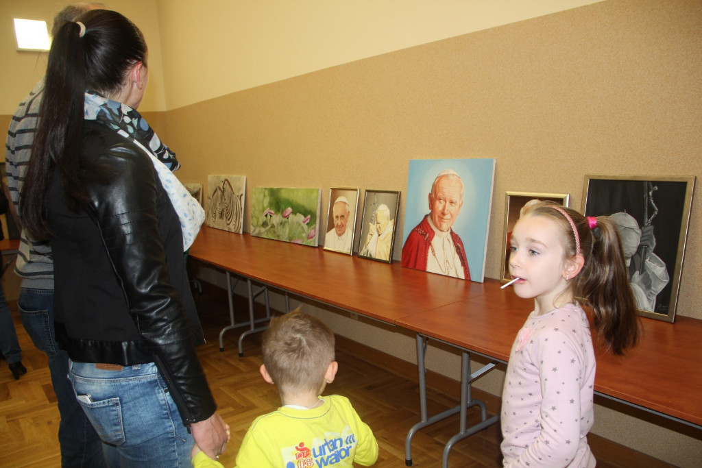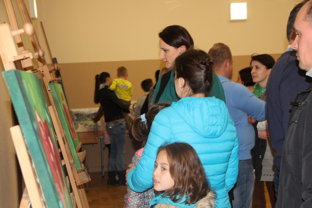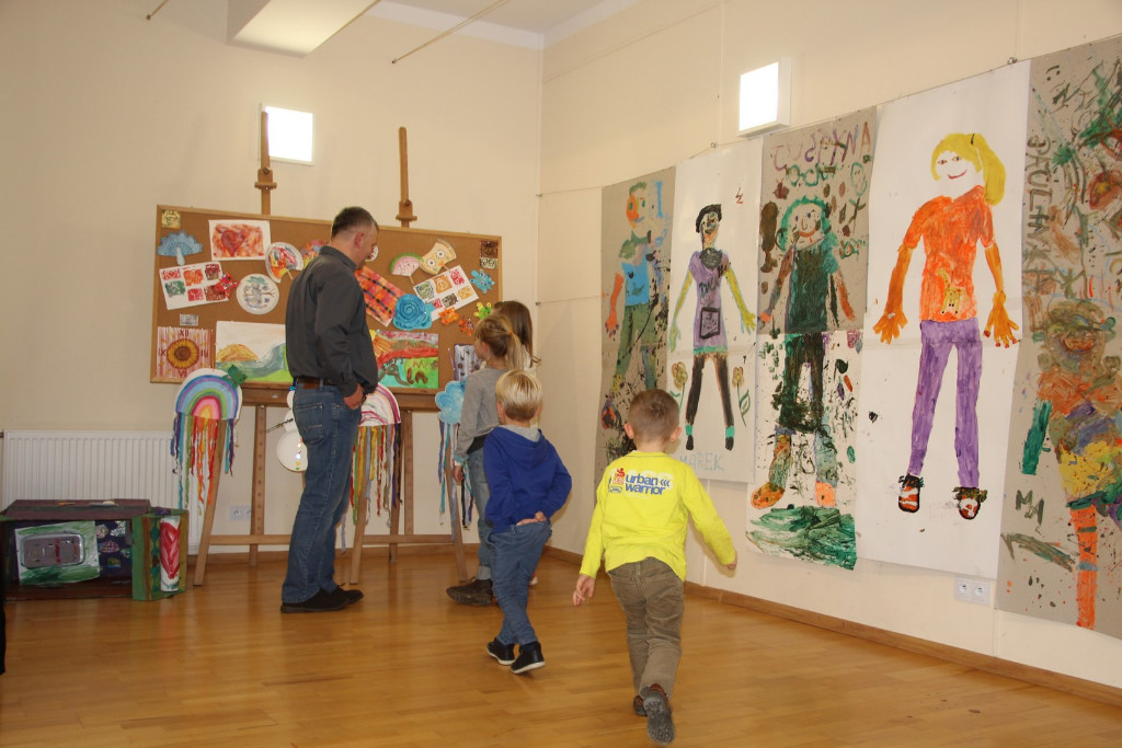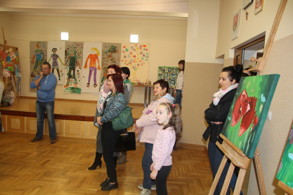 Wernisaż był także okazją zaprezentowania prac dzieci uczęszczających na zajęcia do świetlicy w Starej Wsi, gdzie pracuje Jolanta Biedroń. Prace, których od ferii zimowych zebrało się naprawdę sporo przykuły uwagę właśnie najmłodszych uczestników spotkania. Jak się okazuje wśród nich było liczne grono samych autorów prac, którzy mogli pochwalić się tym co wykonali przed swoimi rodzicami i dziadkami.