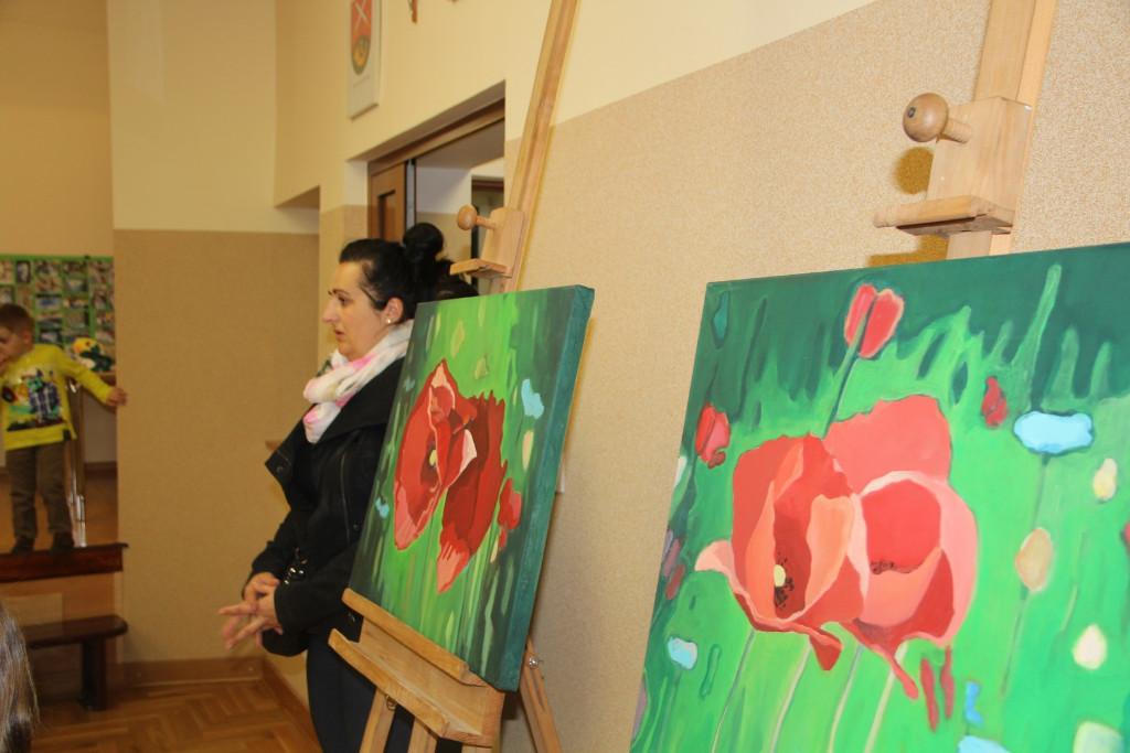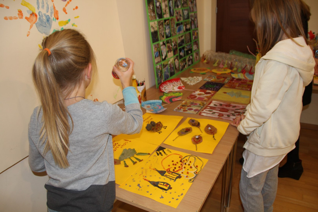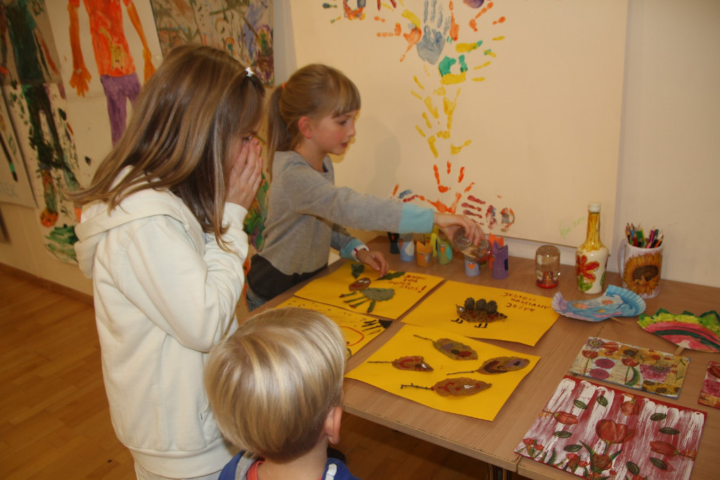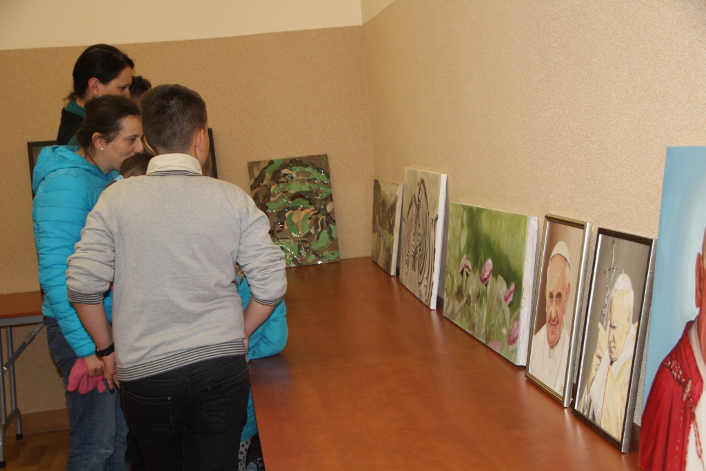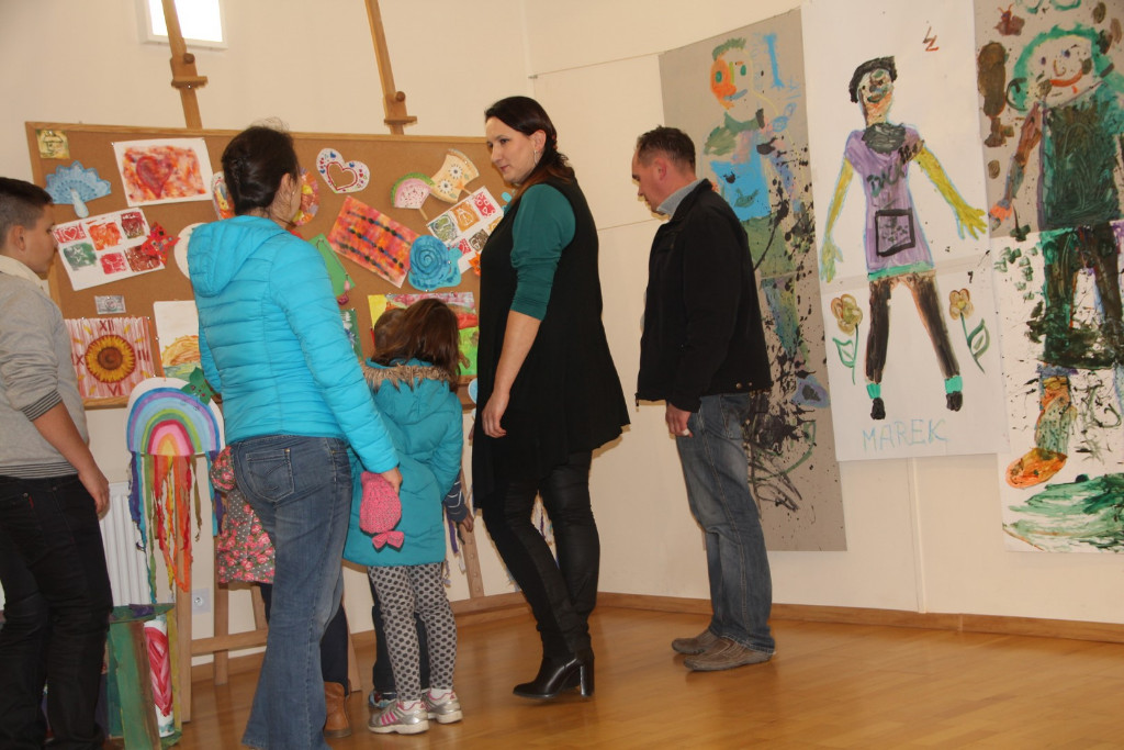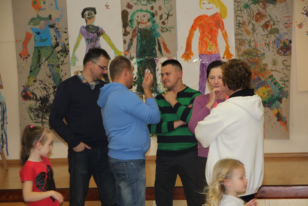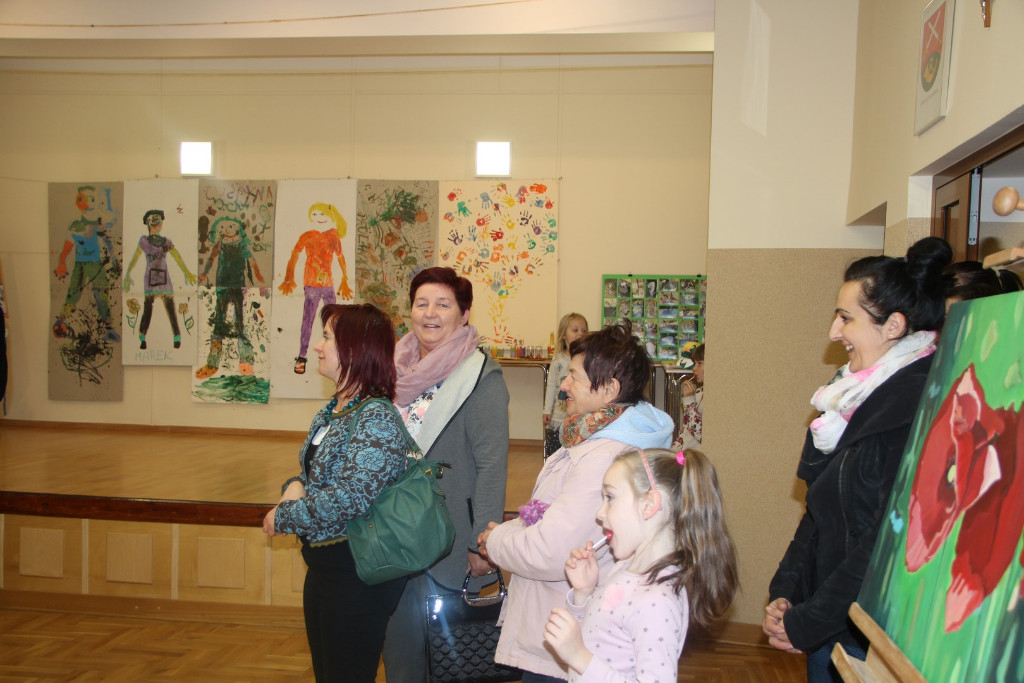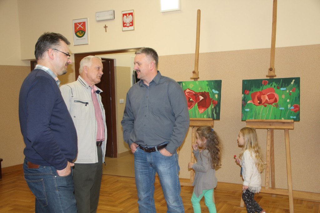 Wernisaż był także okazją zaprezentowania prac dzieci uczęszczających na zajęcia do świetlicy w Starej Wsi, gdzie pracuje Jolanta Biedroń. Prace, których od ferii zimowych zebrało się naprawdę sporo przykuły uwagę właśnie najmłodszych uczestników spotkania. Jak się okazuje wśród nich było liczne grono samych autorów prac, którzy mogli pochwalić się tym co wykonali przed swoimi rodzicami i dziadkami.