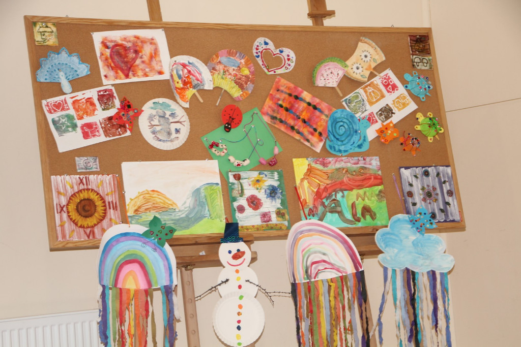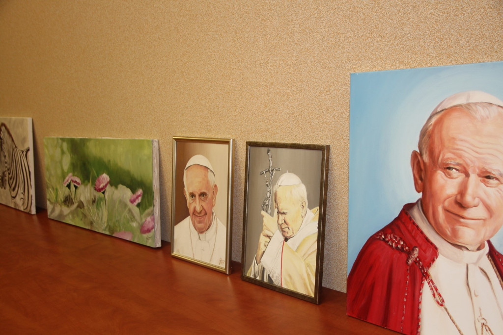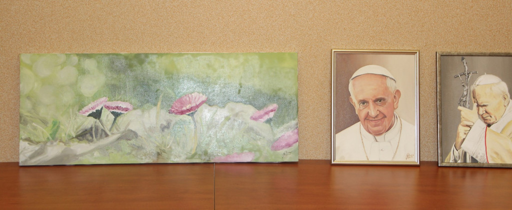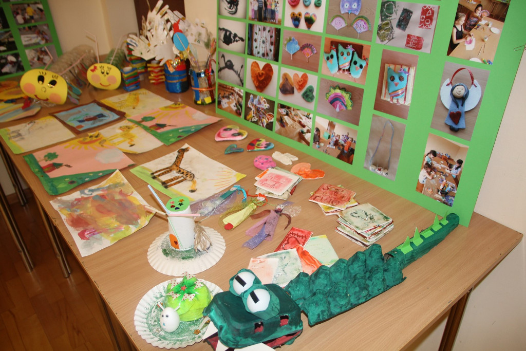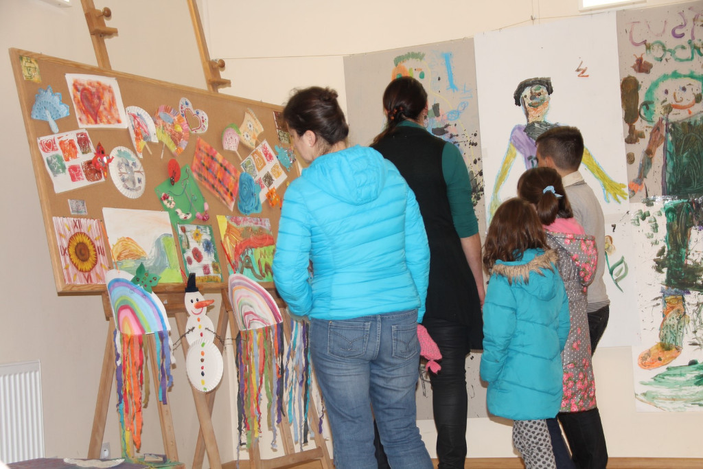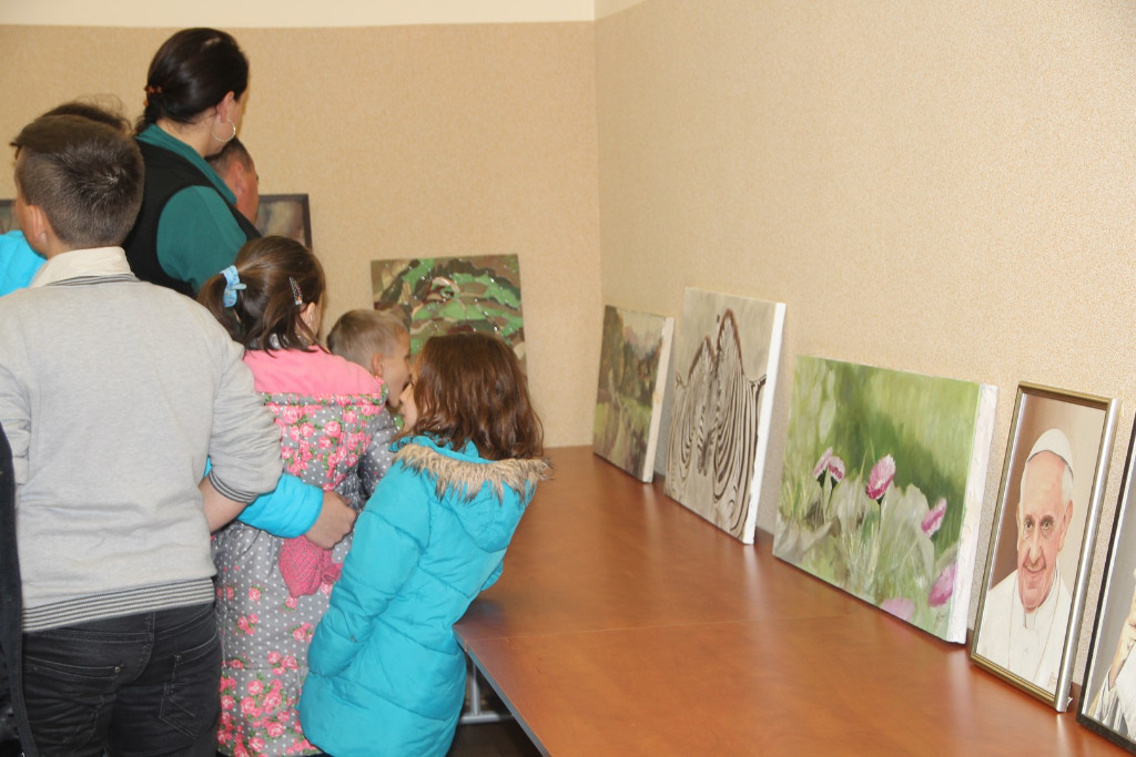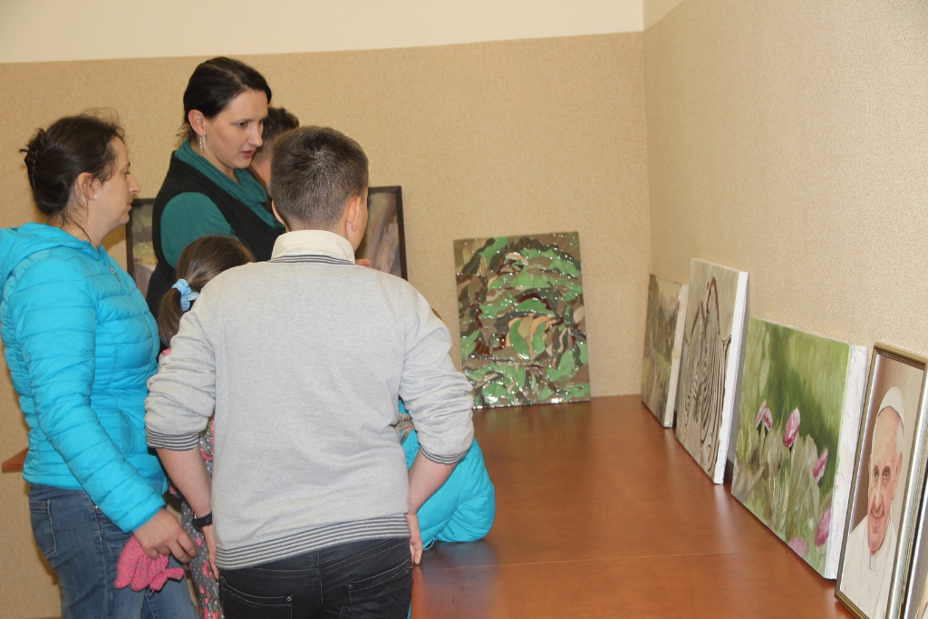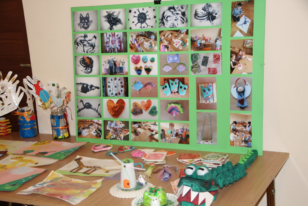 Wernisaż był także okazją zaprezentowania prac dzieci uczęszczających na zajęcia do świetlicy w Starej Wsi, gdzie pracuje Jolanta Biedroń. Prace, których od ferii zimowych zebrało się naprawdę sporo przykuły uwagę właśnie najmłodszych uczestników spotkania. Jak się okazuje wśród nich było liczne grono samych autorów prac, którzy mogli pochwalić się tym co wykonali przed swoimi rodzicami i dziadkami.