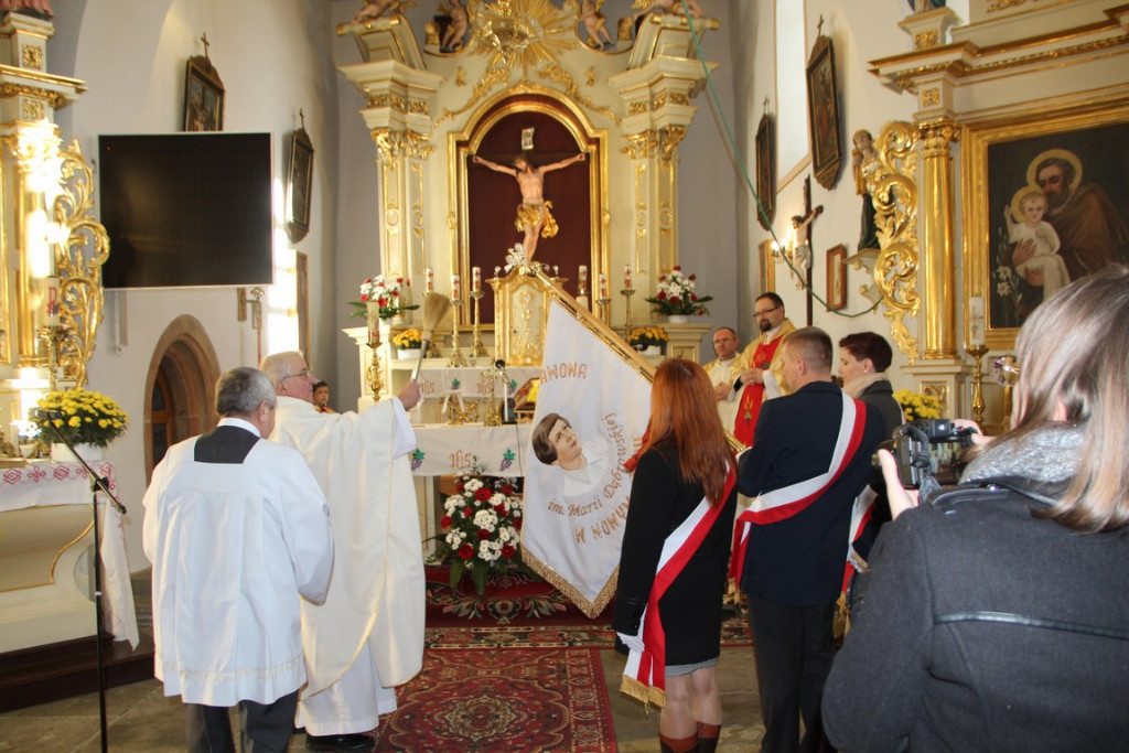 Uroczystość nadania sztandaru rozpoczęła się Mszą św. w Kościele w Nowym Rybiu, gdzie miało miejsce poświęcenie nowego symbolu placówki. Następnie w budynku szkoły odbyła się uroczystość nadania sztandaru, która zgromadziła nie tylko cała społeczność szkolną, licznie przybyłych mieszkańców, ale także wiele osób związanych z placówką – obecni byli m.in. przedstawiciele kuratorium oświaty, emerytowani nauczyciele, a także władze gminy na czele z Wójtem Władysławem Pazdanem, Zastępcą Wójta - Marianem Mąka oraz Przewodniczącym Rady Gminy - Stanisławem Młyńskim. Wójt Gminy podziękował lokalnej społeczności, że właśnie w takim czasie świętowania 50-lecia działalności placówki i 110-lecia szkolnictwa w Nowym Rybiu udało się szkole nadać sztandar.