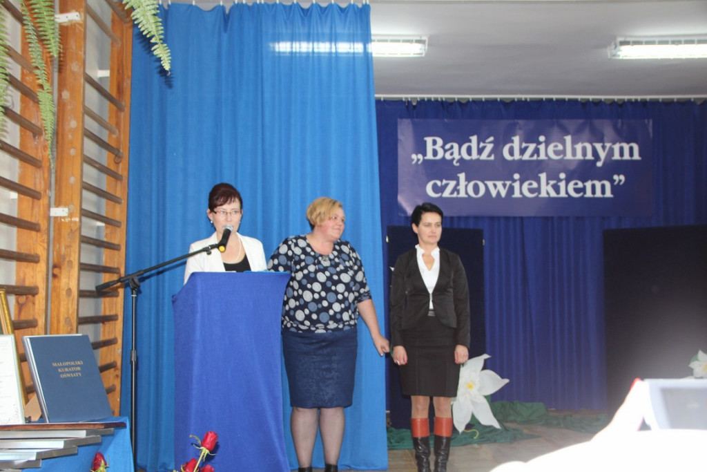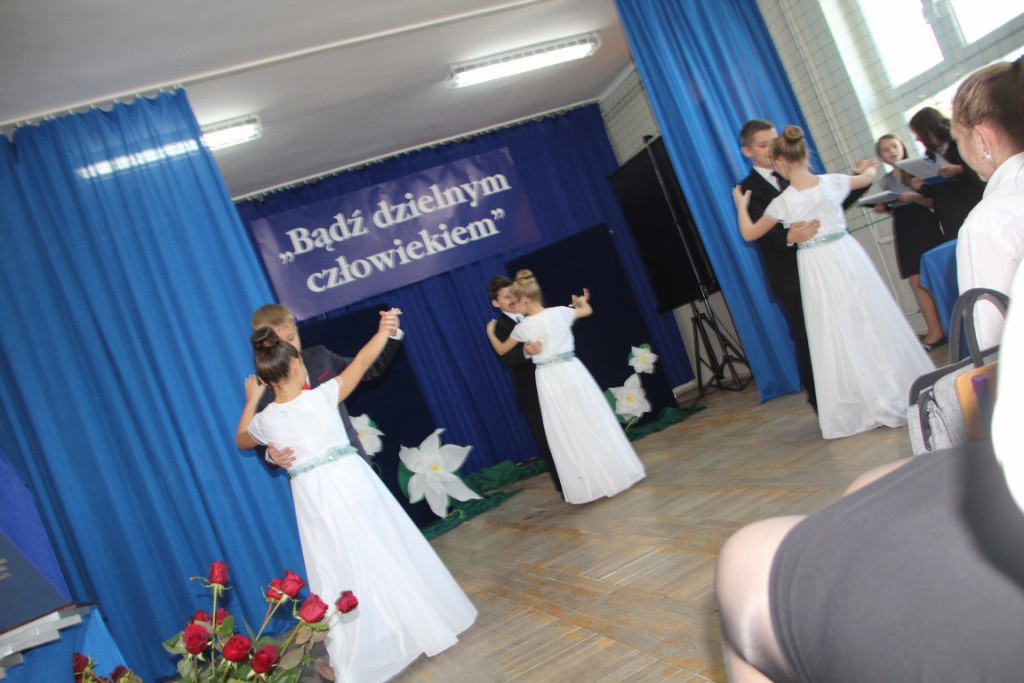 Podczas uroczystości wspomniano historię placówki, a na tak szczególną okazję specjalny występ nawiązujący do twórczości patronki Marii Dąbrowskiej przygotowali uczniowie.