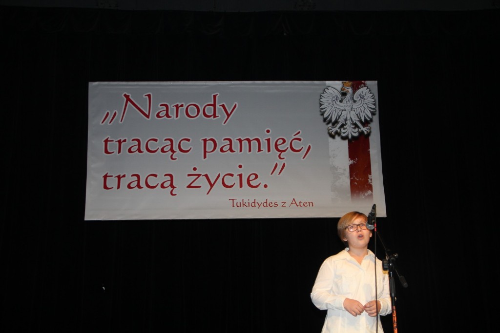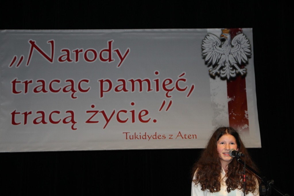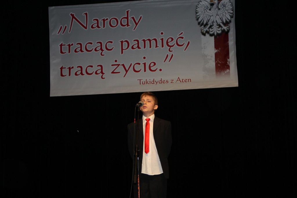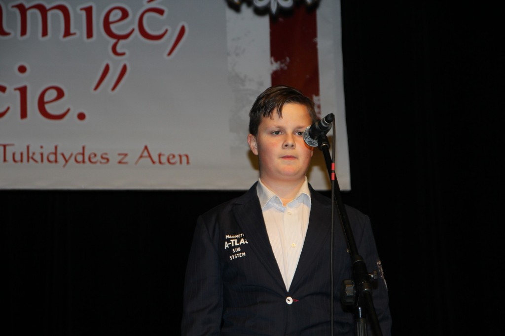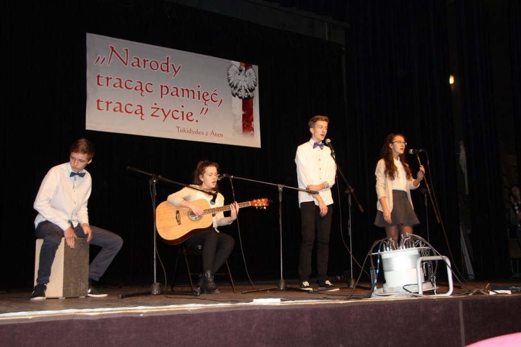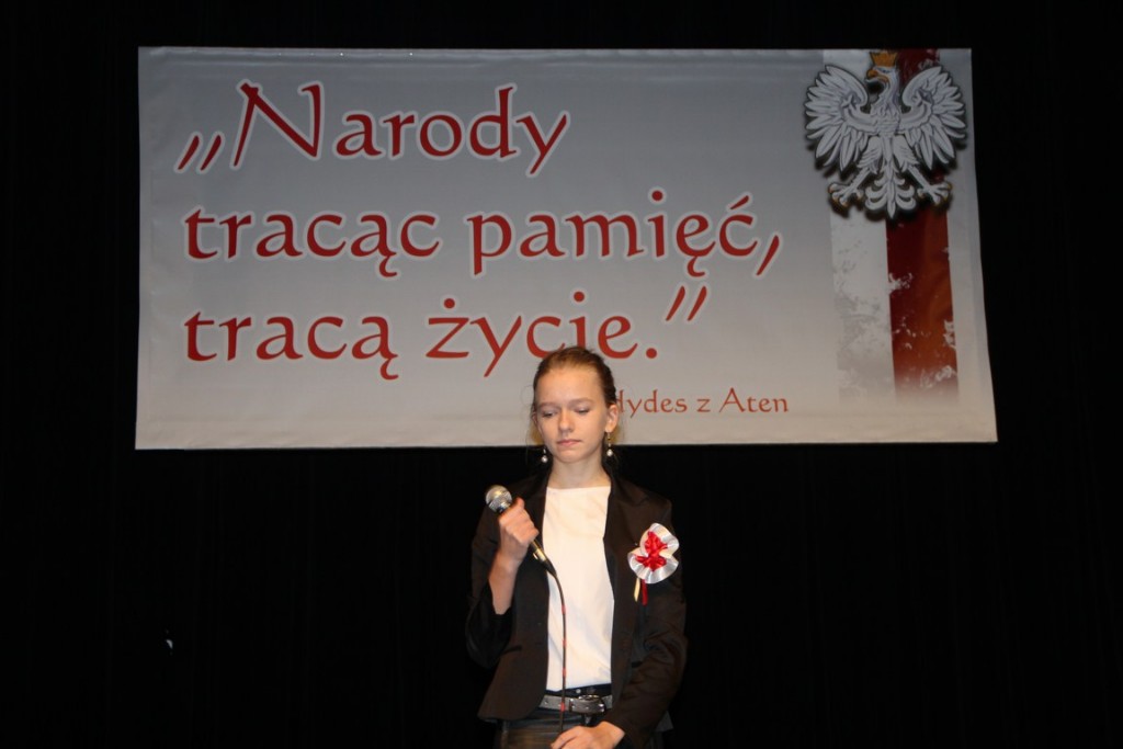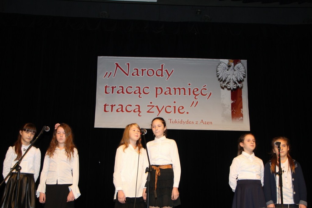 W myśl tegorocznych zapisów regulaminowych uczestnicy Konkursu Pieśni Patriotycznej przygotowali utwór związany z najnowszą historią Polski (od lat 80. XX wieku) i tutaj wystąpiło 14 uczestników ze szkół podstawowych /zespołów i solistów/ i 16 gimnazjalistów /zespołów i solistów/. Występy uczestników oceniało jury w składzie: Halina Dyczek – przewodnicząca oraz członkowie – Renata Biernat i Renata Czaja.
