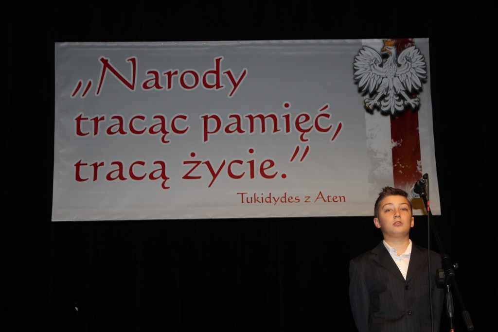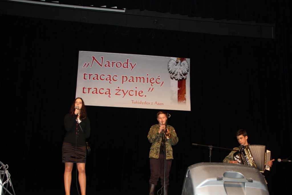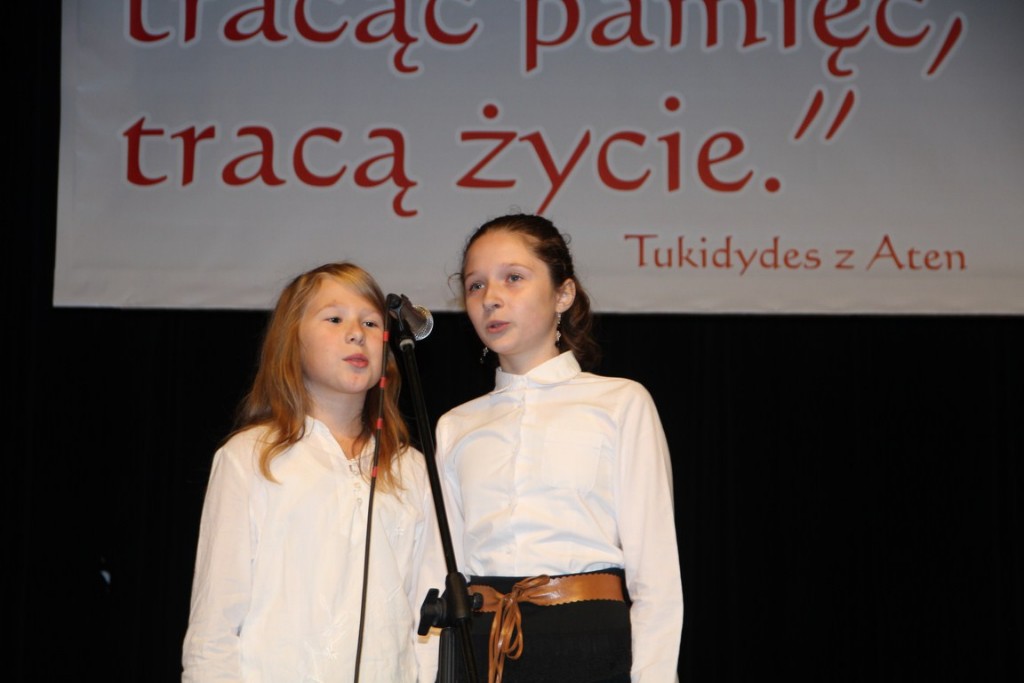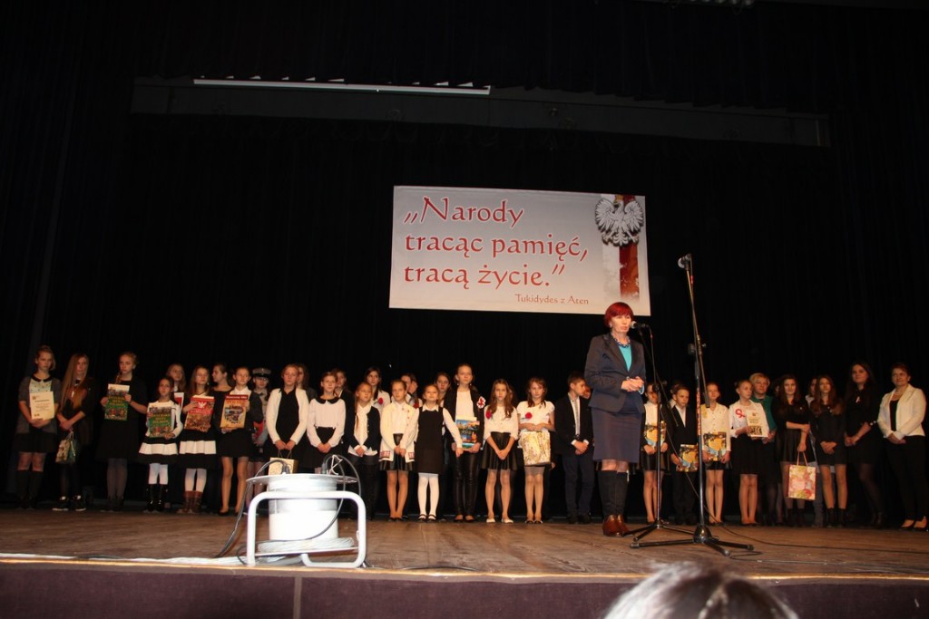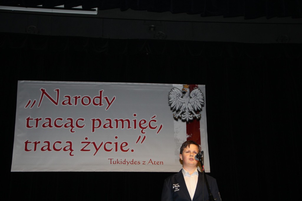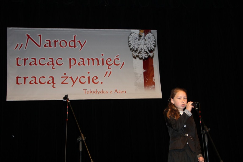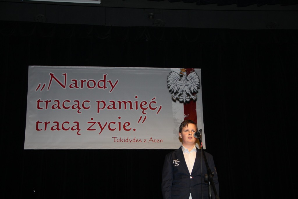 W myśl tegorocznych zapisów regulaminowych uczestnicy Konkursu Pieśni Patriotycznej przygotowali utwór związany z najnowszą historią Polski (od lat 80. XX wieku) i tutaj wystąpiło 14 uczestników ze szkół podstawowych /zespołów i solistów/ i 16 gimnazjalistów /zespołów i solistów/. Występy uczestników oceniało jury w składzie: Halina Dyczek – przewodnicząca oraz członkowie – Renata Biernat i Renata Czaja.