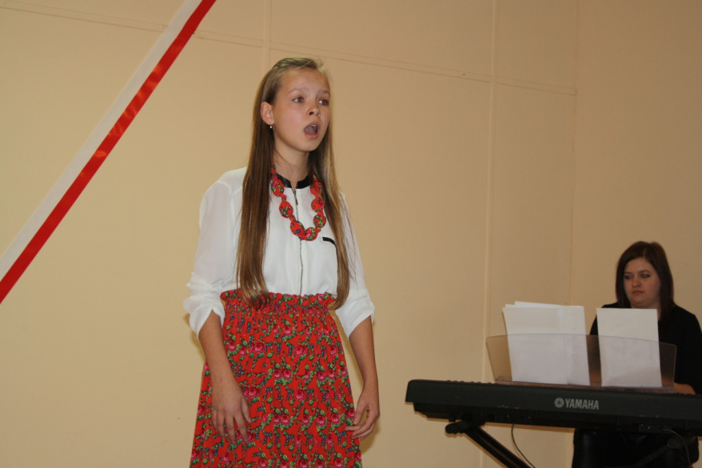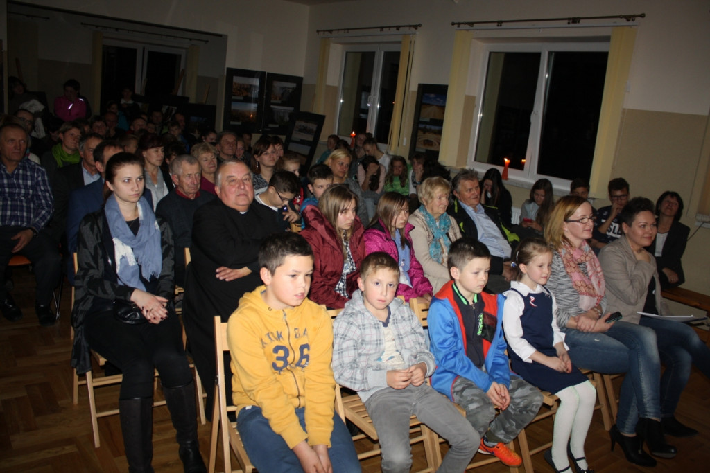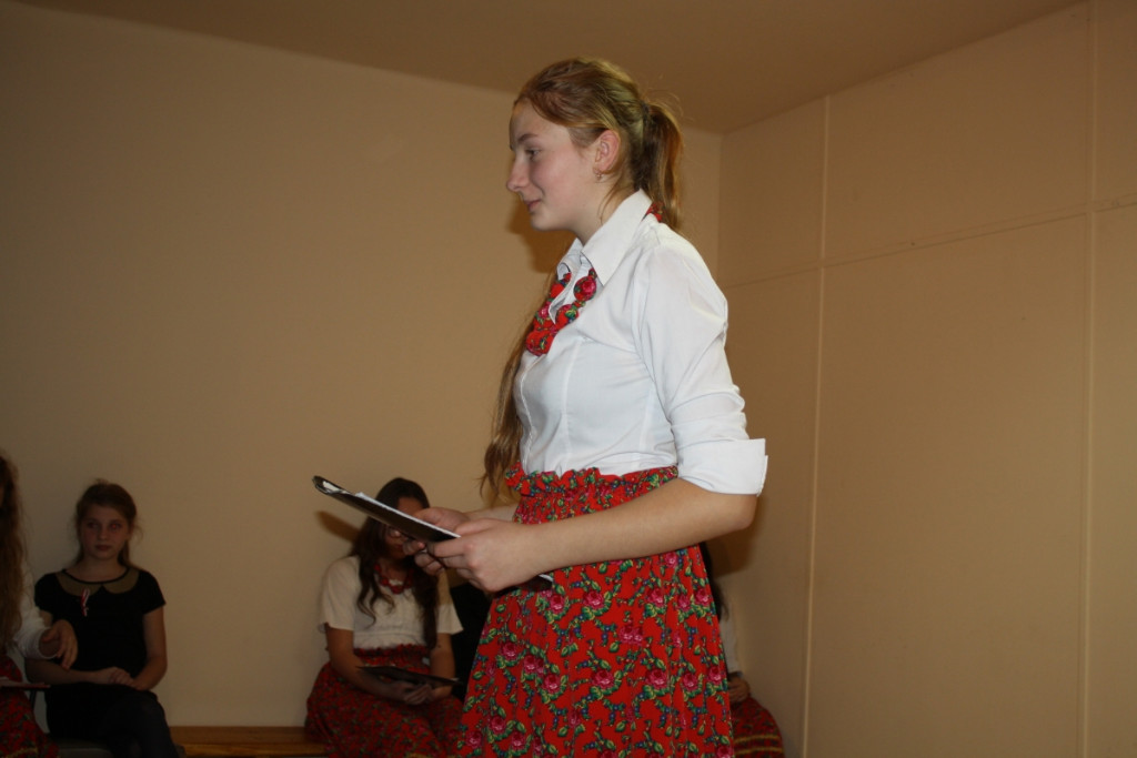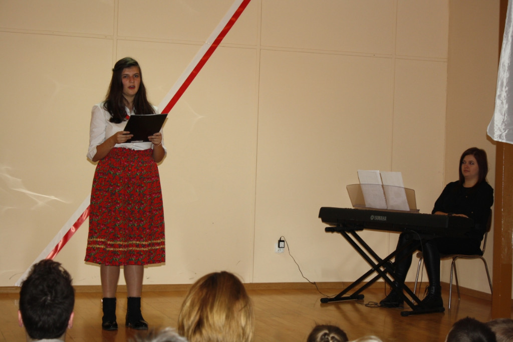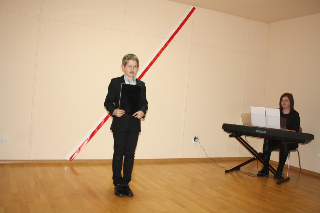 Inscenizacja słowno – muzyczna przygotowana została przez uczniów Szkoły Muzycznej w Trzcianie uczęszczających na zajęcia wokalne w ramach eksperymentu wokalnego pod kierunkiem: Ewy Mazur - pianistki, Magdy Mazur - zajmującej się choreografią, Ilony Szczepańskiej prowadzącej śpiew, na podstawie scenariusza prof. Moniki Rosiewicz. Występ zawierający wersy wojskowych i żołnierskich pieśni był dla uczestników spotkania niezwykłym przeżyciem. Następnie miała miejsce druga cześć Wieczornicy, podczas której uczestnicy otrzymali śpiewniki i pod przewodnictwem Ilony Szczepańskiej wspólnie śpiewali popularne pieśni takie jak: "Wojenko, Wojenko", "Piechota", "Legiony", "O mój rozmarynie", by zakończyć uroczystym "Nie rzucim ziemi skąd nasz ród, Nie damy pogrześć mowy, Polski my naród, polski lud, Królewski szczep Piastowy". Słowa uznania i podziękowania za piękne chwile refleksji i zadumy, które dały możliwość nie tylko wspomnienia, ale i oddania hołdu walczącym za wolność Ojczyzny skierowali w stronę wykonawców Zastępca Wójta Marian Mąka oraz Ks. Proboszcz Kazimierz Basista.