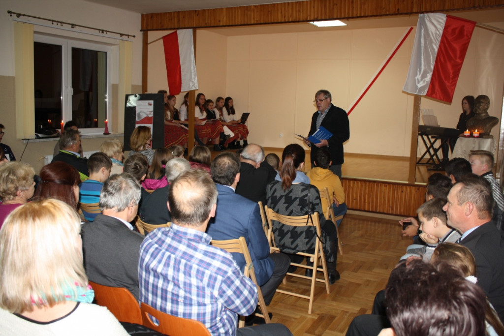 …Trzeba pamiętać o słowach naszego rodaka Jana Pawła II, że "człowiek jest powołany do wolności. (...) Wolność jest człowiekowi nie tylko dana ale i zadana, by ukazywała prawdę o dobru. Gdyby nie ogromny wysiłek i heroizm Polaków bijących się za Naszą i Waszą wolność, nie byłoby nas tutaj - tymi słowami rozpoczął Wieczornicę Dyrektor Gminnej Biblioteki Publicznej w Starej Wsi Jacenty Musiał, witając licznie przybyłych, uczestników spotkania, wśród których obecni bylii zaproszeni goście: Zastępca Wójta Gminy Limanowa Marian Mąka, Ks. Proboszcz Parafii w Nowym Rybiu Kazimierz Basista, Ks. Katecheta Józef Uryga, Radny Gminy Limanowa Władysław Lachor, Dyrektor Szkoły Podstawowej w Nowym Rybiu Maria Gąsiorek oraz Sołtysi wsi Bałażówka Henryk Gąsiorek i Nowe Rybie Jan Myszka.