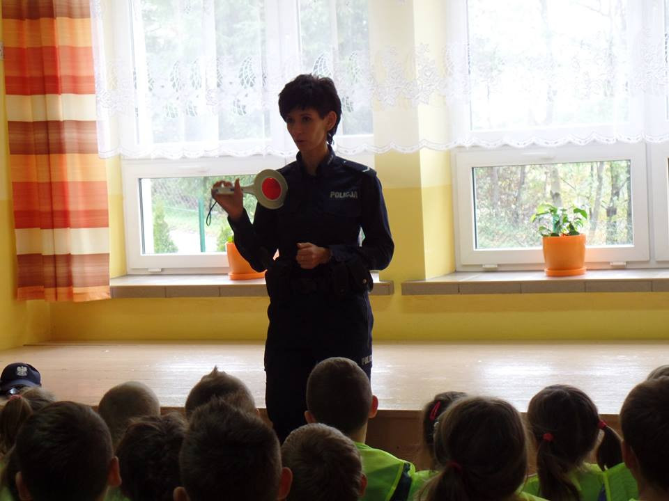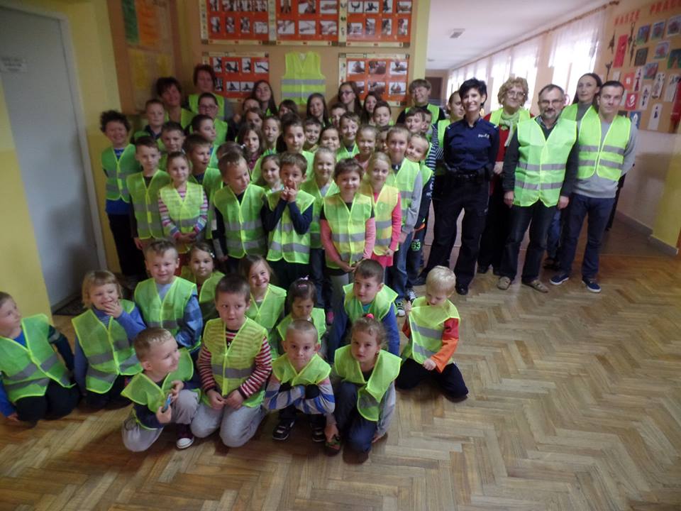 W ramach akcji w październiku odbyło się spotkanie z Policjantem z Komendy Powiatowej Policji w Limanowej. Pani Policjant wygłosiła prelekcję na temat bezpiecznego poruszania się po drodze oraz na temat zagrożeń, jakie czyhają na dzieci w drodze do i ze szkoły. Zwracała także uwagę na konieczność noszenia elementów odblaskowych, by zwiększyć bezpieczeństwo pieszych poruszających się po drogach.