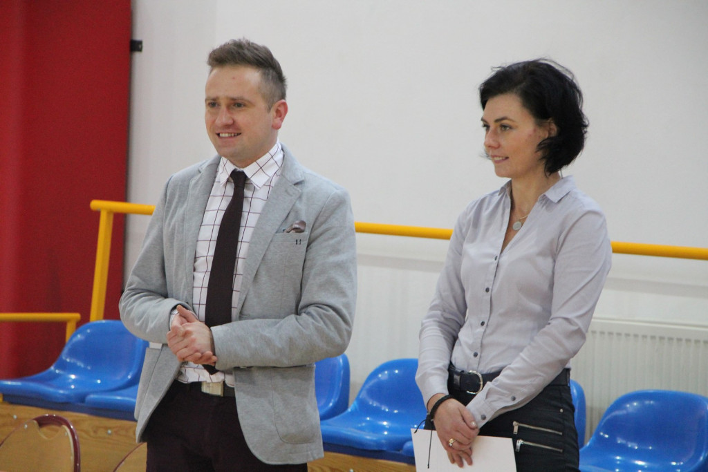 Puchary oraz nagrody rzeczowe wręczyli: Edyta Król – Dyrektor Gminnego Zespołu Obsługi Szkół, oraz Wojciech Korabik – Kierownik wydziału kultury i promocji.