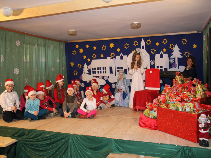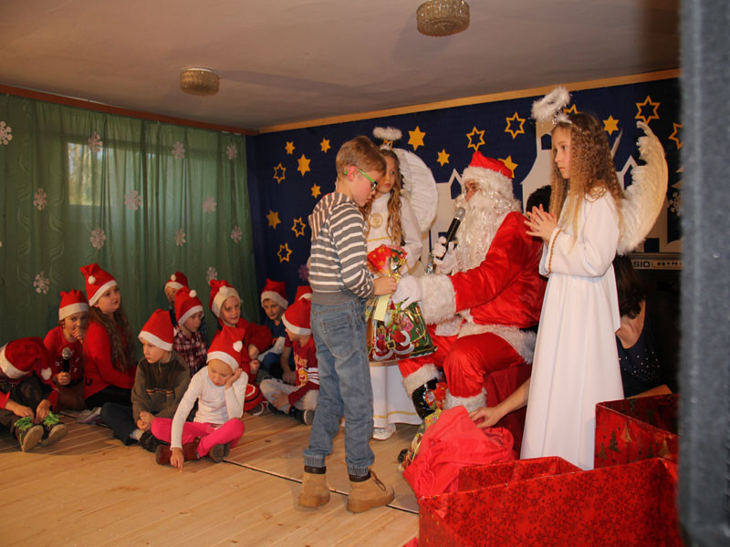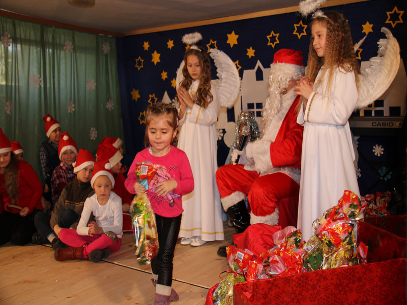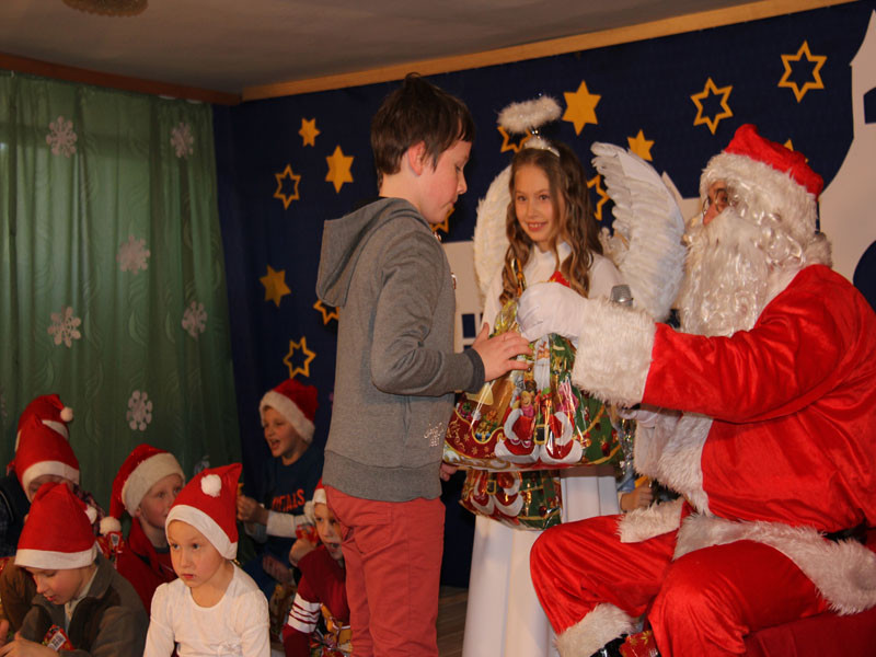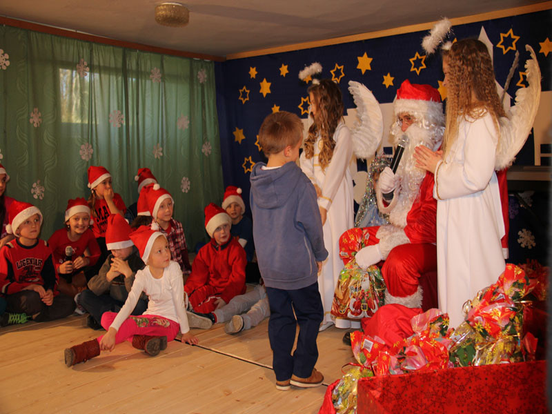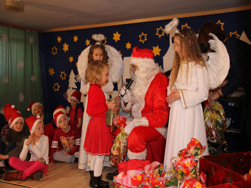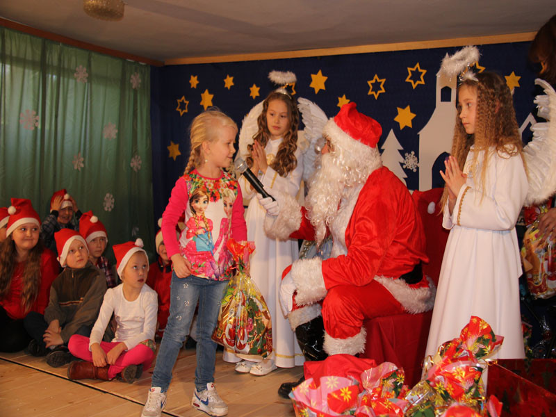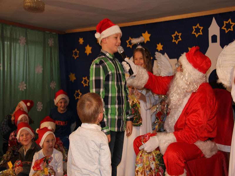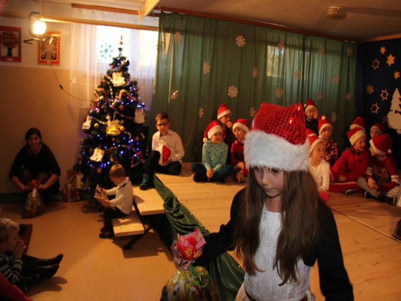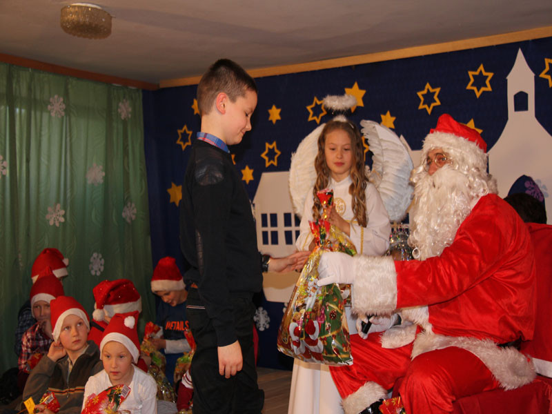 W oczekiwaniu na Mikołaja dzieci z klasy drugiej z wychowawcą Zdzisławą Zoń i Moniką Płachta przygotowały występ artystyczny. Gdy tylko Mikołaj z aniołami wszedł do pięknie udekorowanej sali, na buziach dzieci pojawiło się zaskoczenie, zdziwienie, a przede wszystkim ogromna radość. Wszyscy przywitali Mikołaja ogromnymi brawami. Również dyrektor szkoły Józefa Setlak serdecznie powitała Mikołaja, wszystkie dzieci, zebranych gości, rodziców, przedstawicieli klasowych rad rodziców oraz nauczycieli . Nastąpił najbardziej oczekiwany moment rozdawania prezentów. Każde dziecko otrzymało paczkę, mogło też porozmawiać z Mikołajem oraz zrobić pamiątkowe zdjęcie. Chwile spędzone w szkole wywołały wiele przeżyć i wrażeń nie tylko tym najmniejszym, ale także rodzicom i wychowawcom klas. Wszystkie dzieci zaprosiły Mikołaja na kolejne spotkanie za rok.
