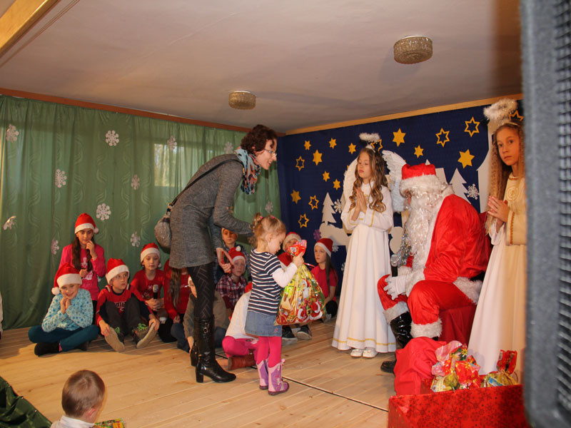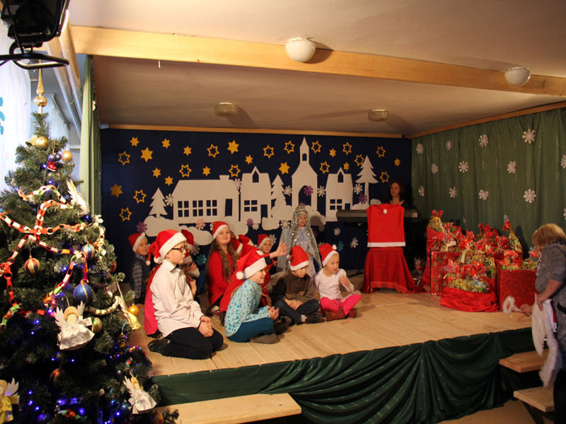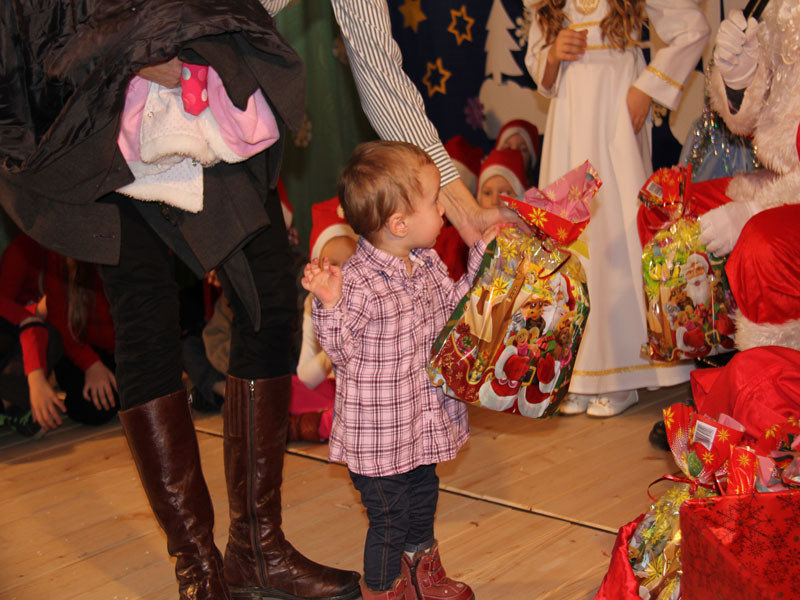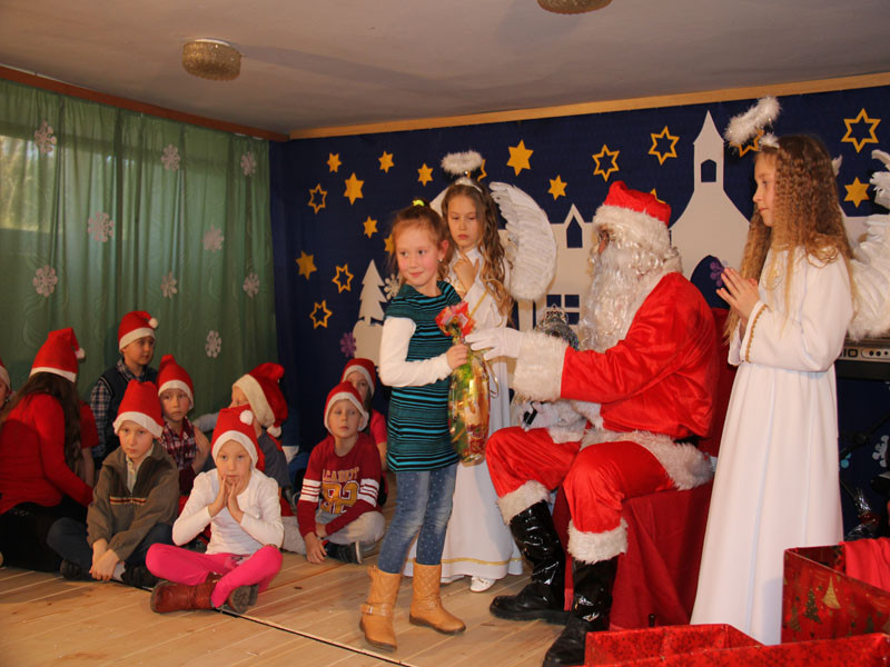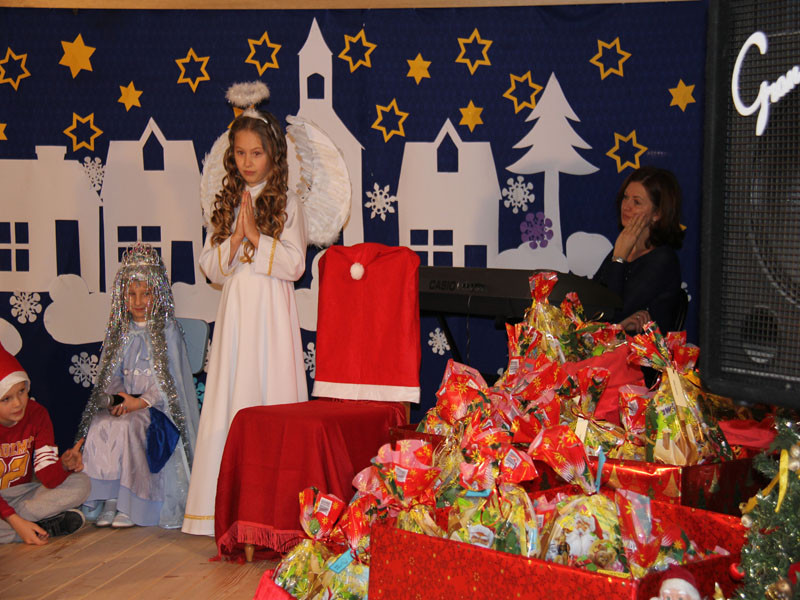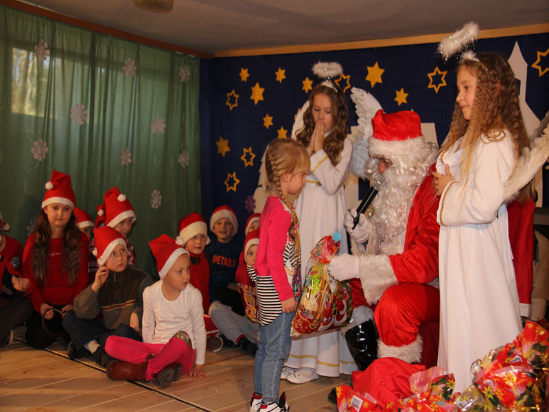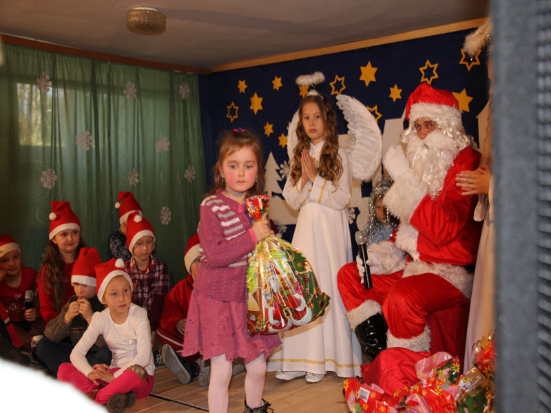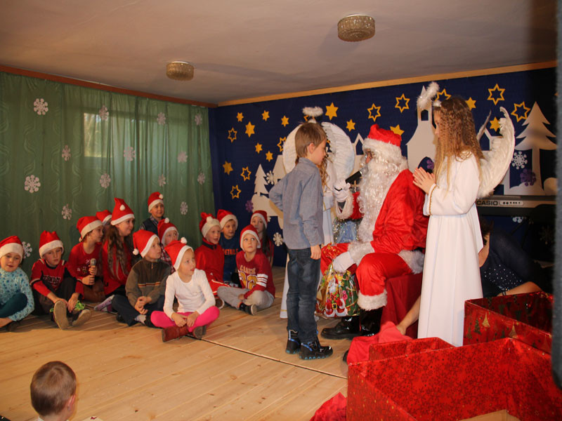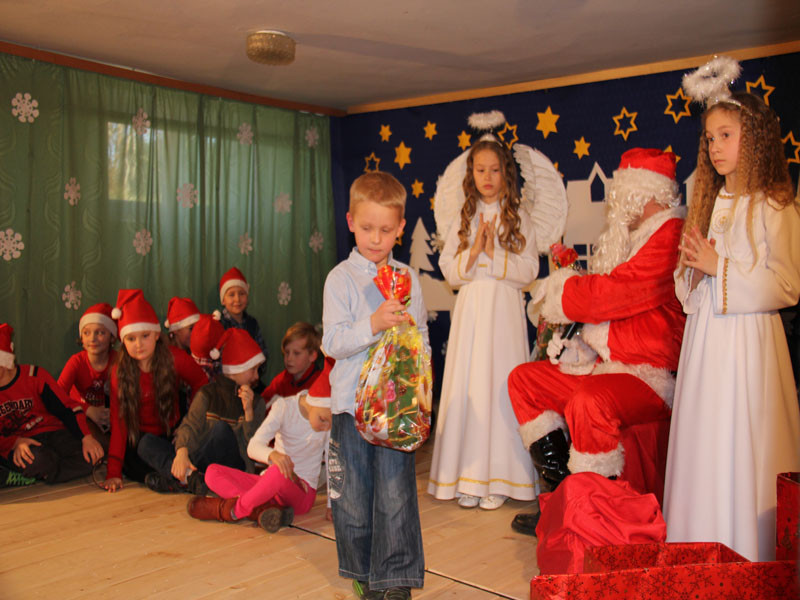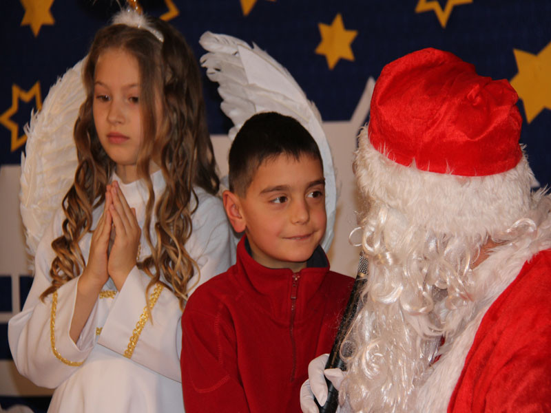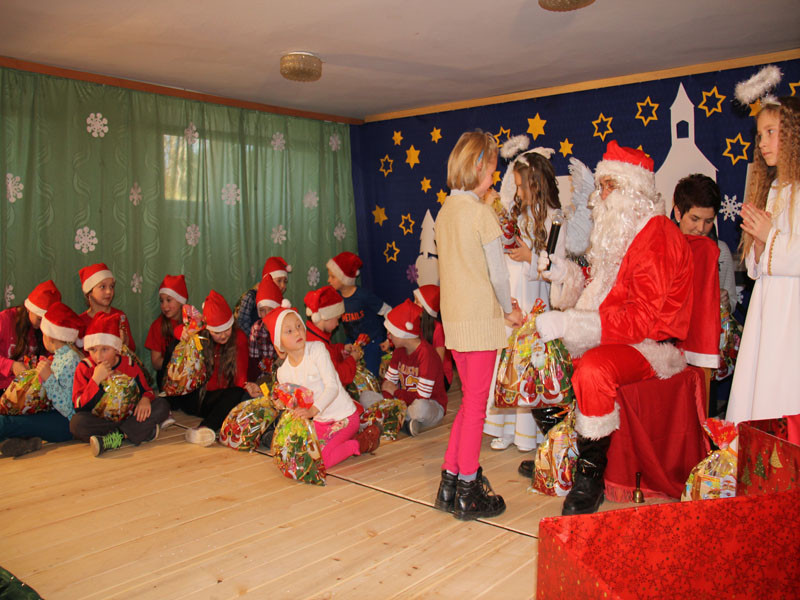 W oczekiwaniu na Mikołaja dzieci z klasy drugiej z wychowawcą Zdzisławą Zoń i Moniką Płachta przygotowały występ artystyczny. Gdy tylko Mikołaj z aniołami wszedł do pięknie udekorowanej sali, na buziach dzieci pojawiło się zaskoczenie, zdziwienie, a przede wszystkim ogromna radość. Wszyscy przywitali Mikołaja ogromnymi brawami. Również dyrektor szkoły Józefa Setlak serdecznie powitała Mikołaja, wszystkie dzieci, zebranych gości, rodziców, przedstawicieli klasowych rad rodziców oraz nauczycieli . Nastąpił najbardziej oczekiwany moment rozdawania prezentów. Każde dziecko otrzymało paczkę, mogło też porozmawiać z Mikołajem oraz zrobić pamiątkowe zdjęcie. Chwile spędzone w szkole wywołały wiele przeżyć i wrażeń nie tylko tym najmniejszym, ale także rodzicom i wychowawcom klas. Wszystkie dzieci zaprosiły Mikołaja na kolejne spotkanie za rok.