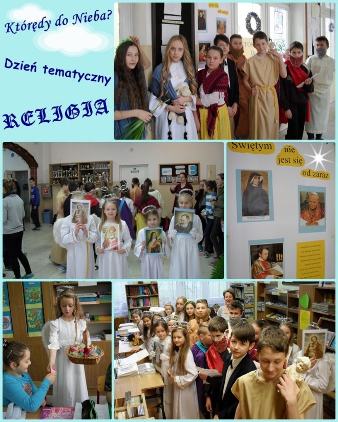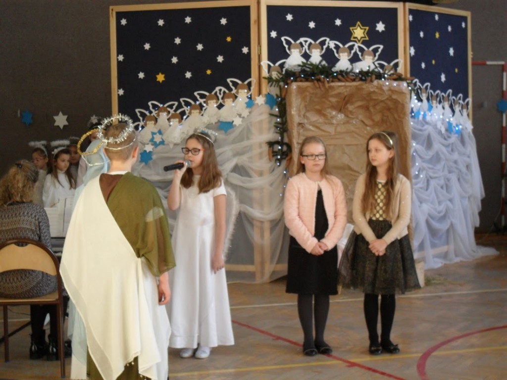 W dniu 18 grudnia w szkole zagościł "niebiański orszak" w związku z dniem tematycznym - religia. Szóstoklasiści, pod kierunkiem katechetki Danuty Małuchy, wcielili się w postaci Świętych i wraz z aniołkami (trzecioklasistkami) wędrowali szkolnymi korytarzami, składając swoim rówieśnikom życzenia Bożonarodzeniowe. Udzielali również podpowiedzi, opartej na słowie Bożym, jaką drogą iść w życiu, aby dostać się do NIEBA. Na korytarzach brzmiały dźwięki piosenki Magdy Anioł „Coś się święci”.