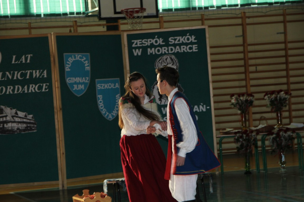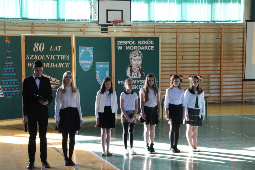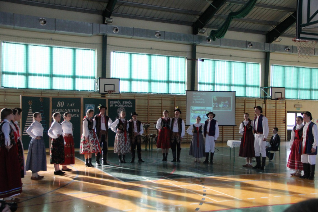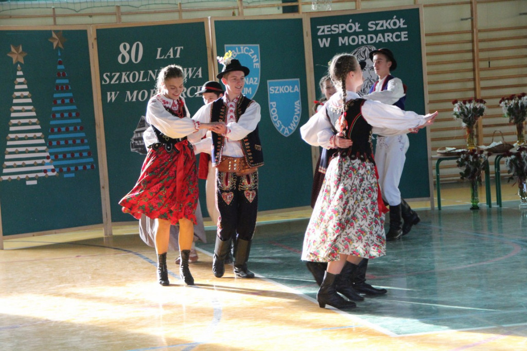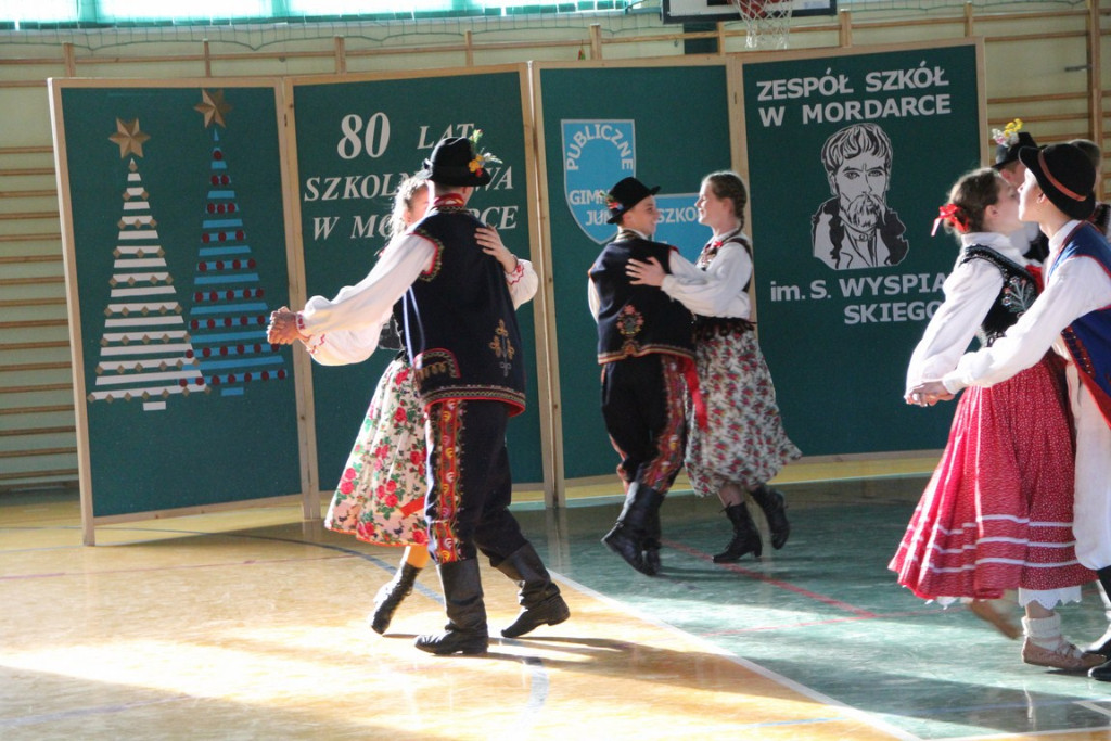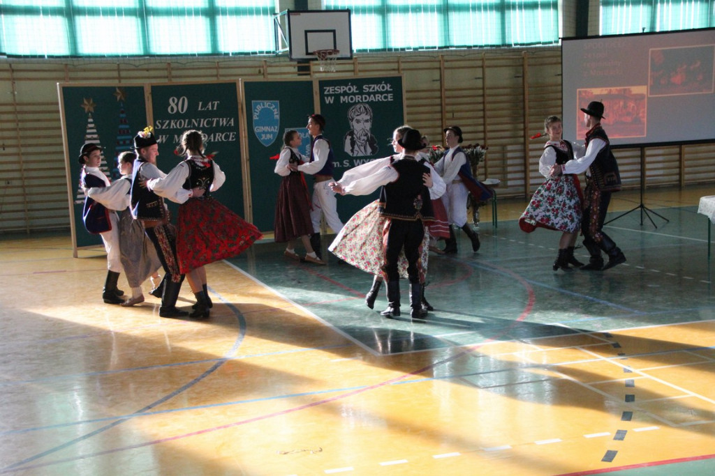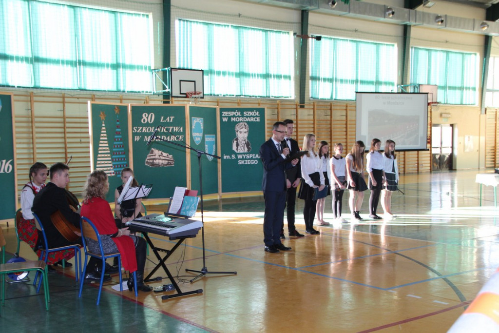 14 stycznia bieżącego roku w Zespole Szkół im. Stanisława Wyspiańskiego odbył się jubileusz osiemdziesięciolecia szkolnictwa w Mordarce. Uroczystość dedykowana była byłym i obecnym pracownikom szkoły, wszystkim absolwentom, zaproszonym gościom, rodzicom, pracownikom i uczniom. W samo południe cała społeczność szkolna zgromadziła się na hali sportowej. Swoją obecnością zaszczycili nas: wójt Gminy Limanowa Władysław Pazdan, dyrektor Gminnego Zespołu Obsługi Szkół Edyta Król, Jacenty Musiał dyrektor Gminnej Biblioteki Publicznej w Starej Wsi, Dorota Musiał kierownik GOPS w Limanowej , Wojciech Korabik kierownik Wydziału Kultury i Promocji UG Limanowa, Elżbieta Mordarska dyrektor ZNP, Wiesława Tudaj dyrektor Szkoły Podstawowej nr 1 w Siekierczynie, Magdalena Pietrzak z Powiatowej Stacji Sanitarno-Epidemiologicznej w Limanowej, proboszcz parafii Mordarka ks. Zbigniew Stabrawa.