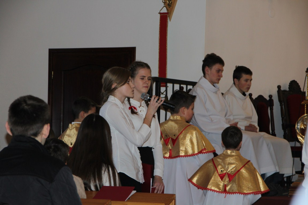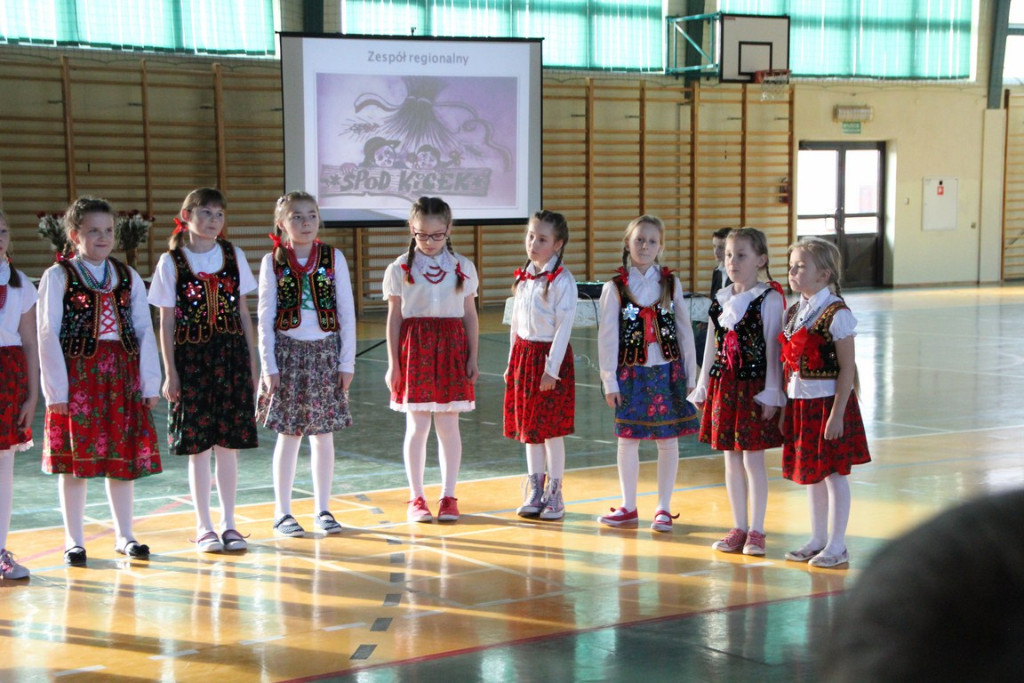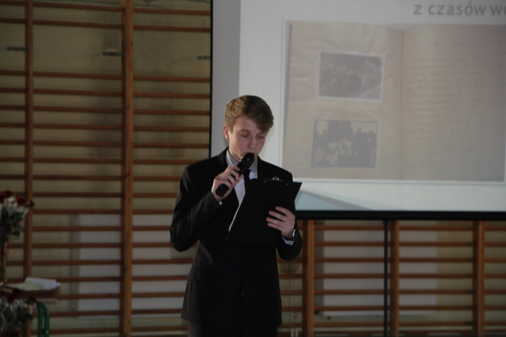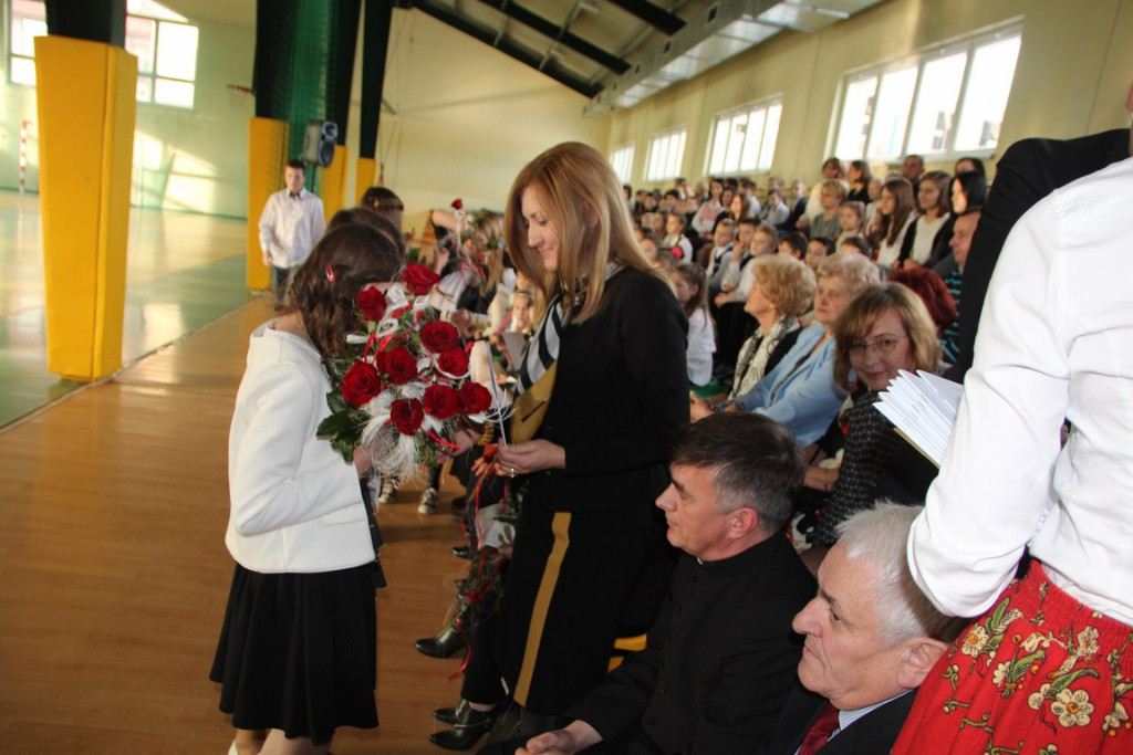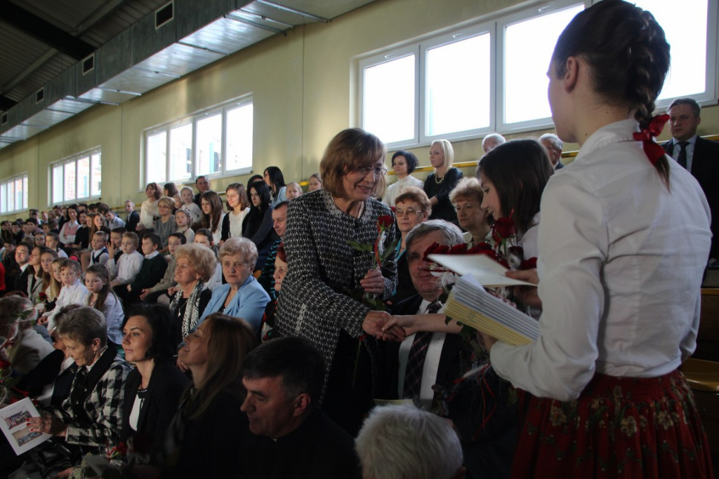 Uroczystość rozpoczął dyrektor Zespołu Szkół im. Stanisława Wyspiańskiego Paweł Ciuła. Przywitał zaproszonych gości, podkreślił znaczenie szkoły w społeczności lokalnej, zaangażowanie wszystkich, którym na sercu leżało jej dobro. Przypomniał nazwiska pierwszych nauczycieli, kierowników, dyrektorów, działaczy społecznych, katechetów. Wyraził ogromną wdzięczność osobom, dzięki którym nasza szkoła nigdy nie była jedynie miejscem czy instytucją, ale zawsze zwartą społecznością stworzoną przez pokolenia uczniów i ich rodziców, nauczycieli, którzy oddali szkole swoje umiejętności, entuzjazm i serce. Wokół szkoły zawsze gromadziły się osoby twórcze, kreatywne, poszukujące najlepszych rozwiązań oraz otwarte i wrażliwe na potrzeby dzieci. Dzięki ich entuzjazmowi i zaangażowaniu udało się stworzyć szkołę taką, jaką widzimy ją dzisiaj – przyjazną, kolorową i otwartą na nowe.