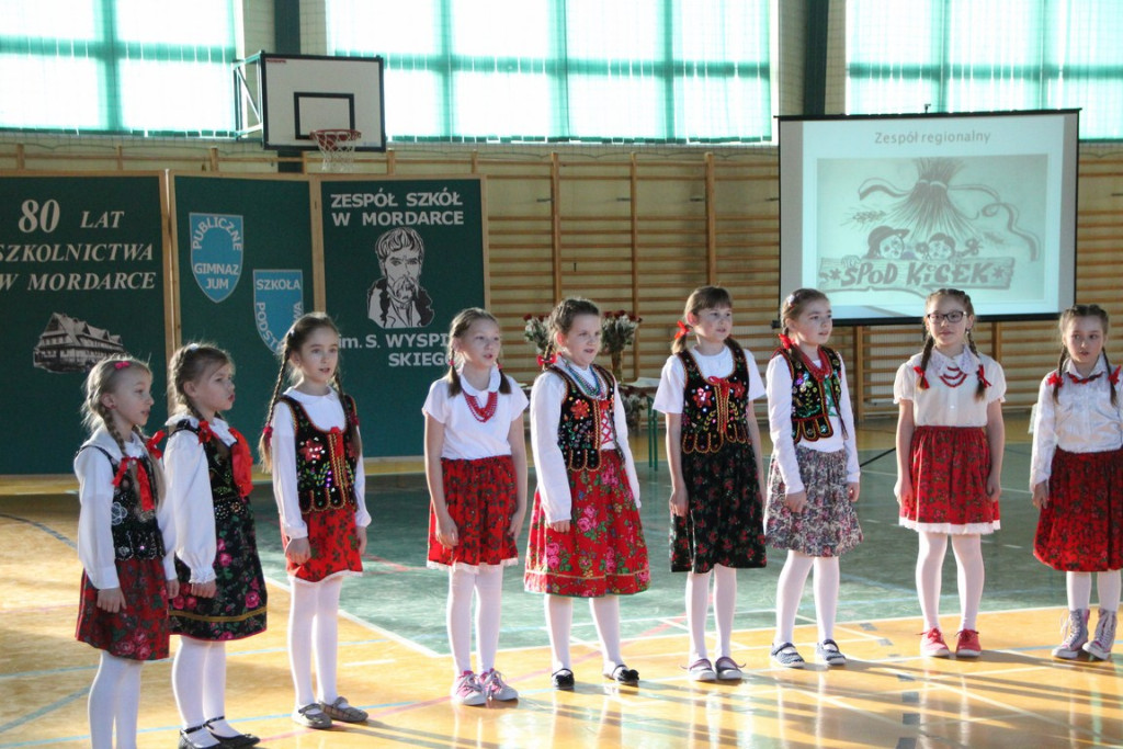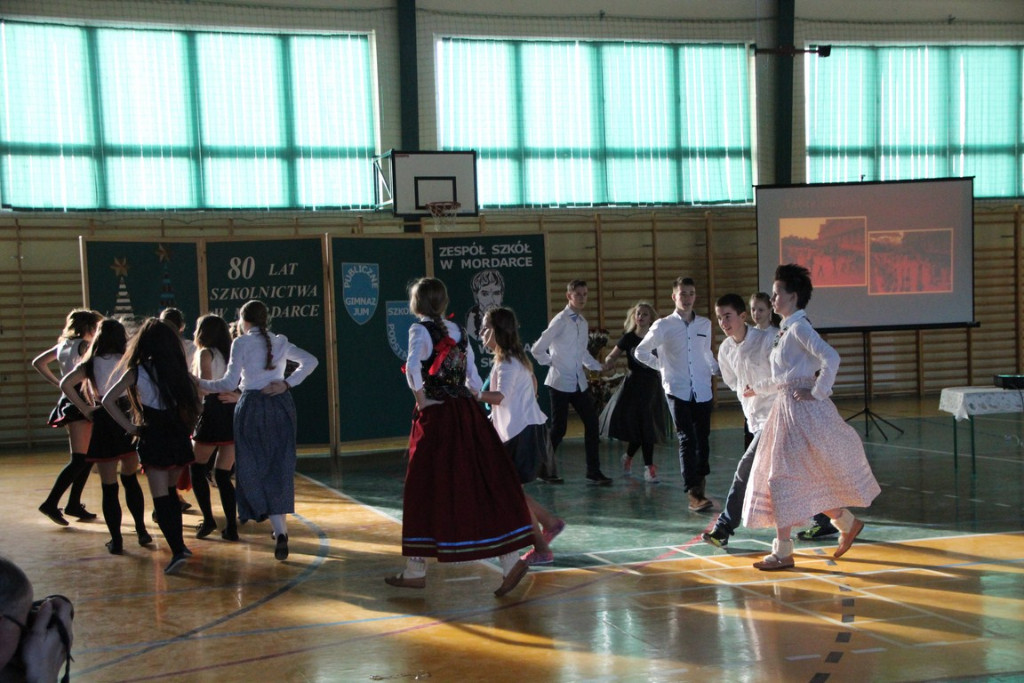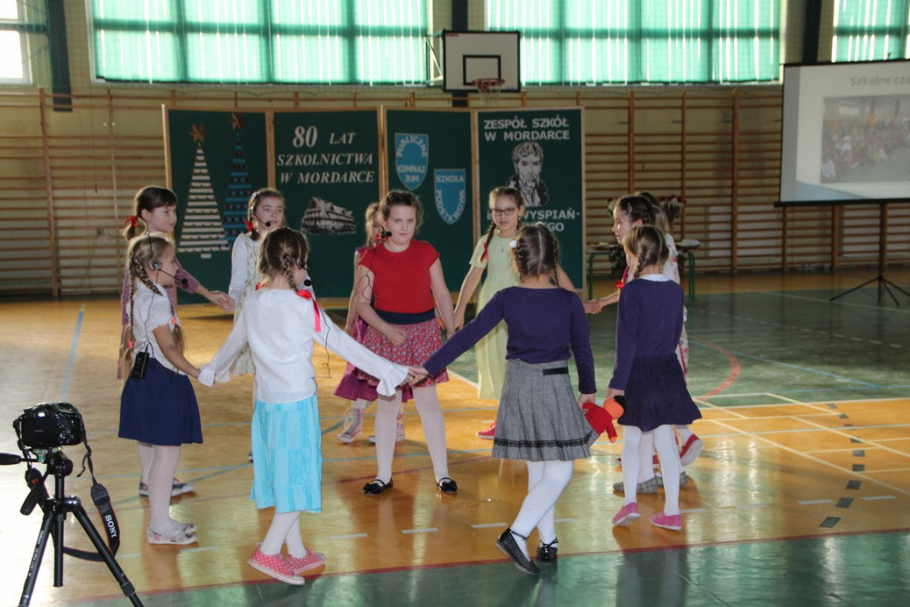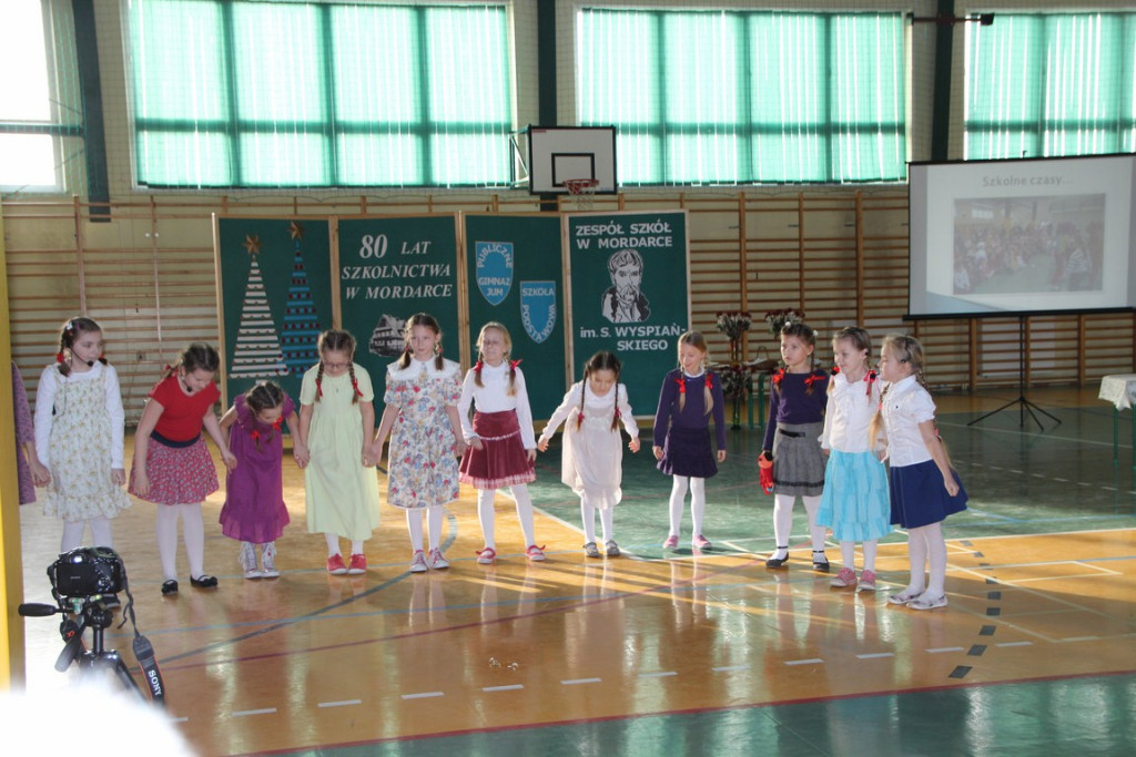 Uczniowie, którzy przygotowali akademię, zabrali wszystkich zebranych w podróż sentymentalną do początków XX wieku i czasów późniejszych. Przypomnieli historię szkolnictwa w Mordarce, wkład mieszkańców wsi i władz lokalnych w rozwój edukacji, wspominali czasy wojen, podkreślali ogromne zaangażowanie nauczycieli, katechetów i dyrektorów szkoły. Młodzież przedstawiła, jak zmieniały się warunki pracy i nauki przez te 80 lat, jak tworzyły się zwyczaje, tradycje, związki z lokalną społecznością. Pokazała też swoje talenty: wokalne, taneczne, teatralne, sportowe, poetyckie. Zebrani goście podziwiali występ młodych solistów, chóru, zespołu teatralnego, zespołu folklorystycznego, którego członkowie występują w dwóch zespołach ludowych: Przyszowianie i Spod Kicek, recytatorów, dziewcząt tańczących w grupie cheerleaders, dzieci z najmłodszych klas, które pokazały, jak zmieniały się zwyczaje na przestrzeni kilkudziesięciu lat.