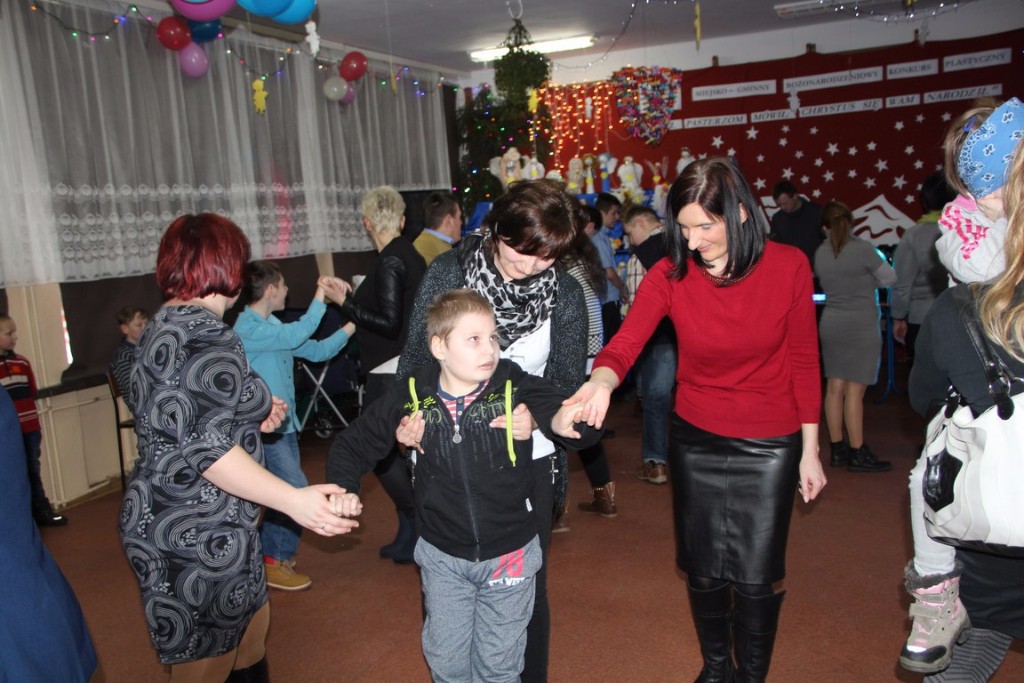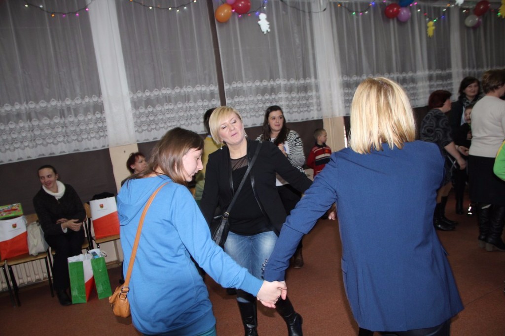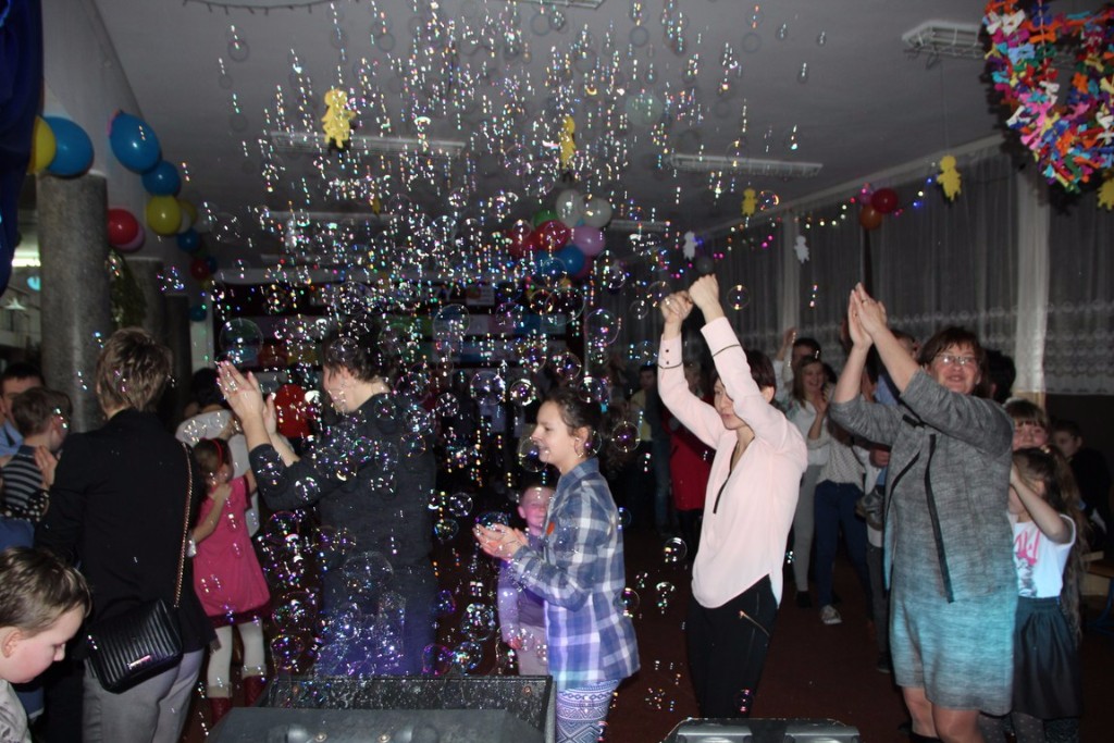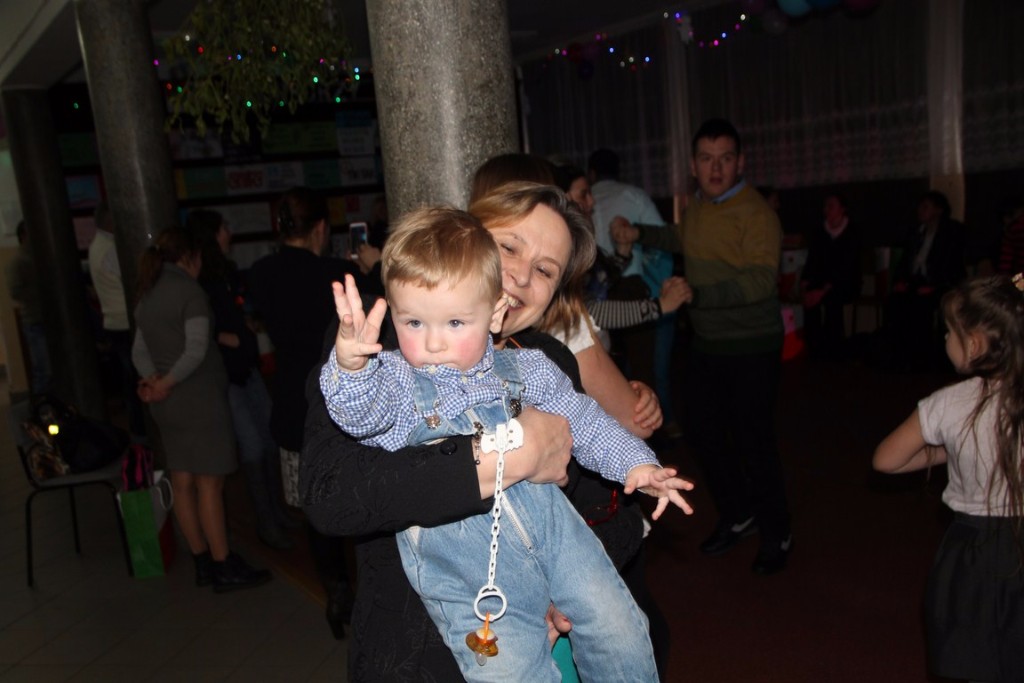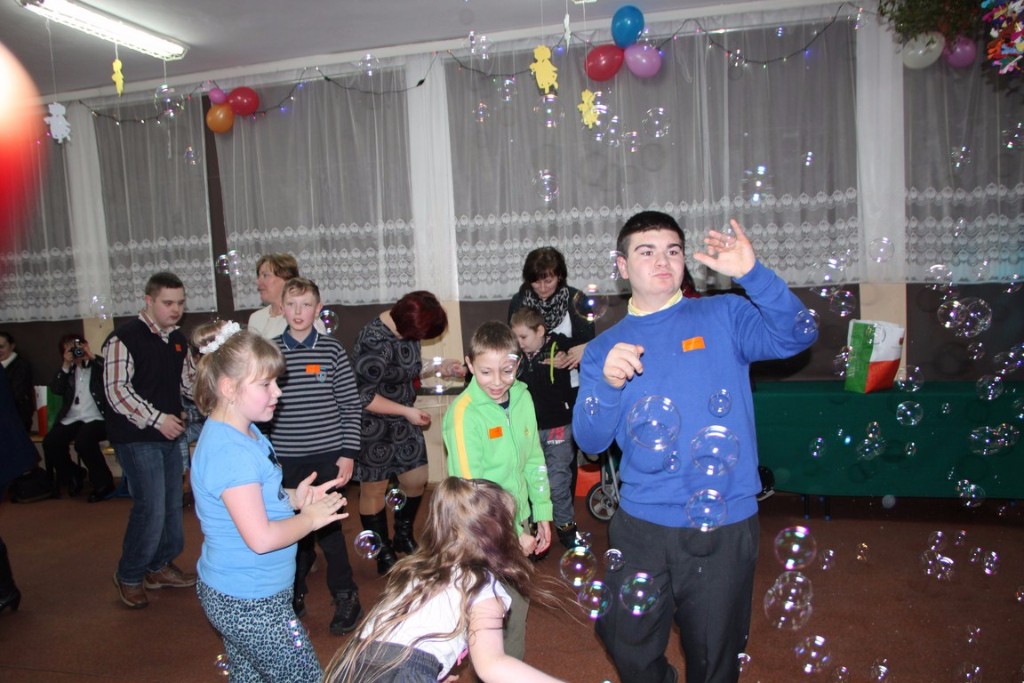 Potem rozpoczął się wyczekiwany przez dzieci bal. Poprowadził go DJ Lech Zwoliński. Przy błysku profesjonalnego oświetlenia, dźwiękach muzyki i kolorowych bańkach mydlanych wszyscy bawili się wyśmienicie! Humor dopisywał zarówno dzieciom, rodzicom, nauczycielom jak i przybyłym gościom. Dorośli bawili się wspólnie z dziećmi. Były kółeczka, korowody, tańce w parach i tańce indywidualne. Wszyscy tancerze byli nagradzani drobnymi prezentami. W czasie przerw w zabawie na dzieci czekał słodki poczęstunek.