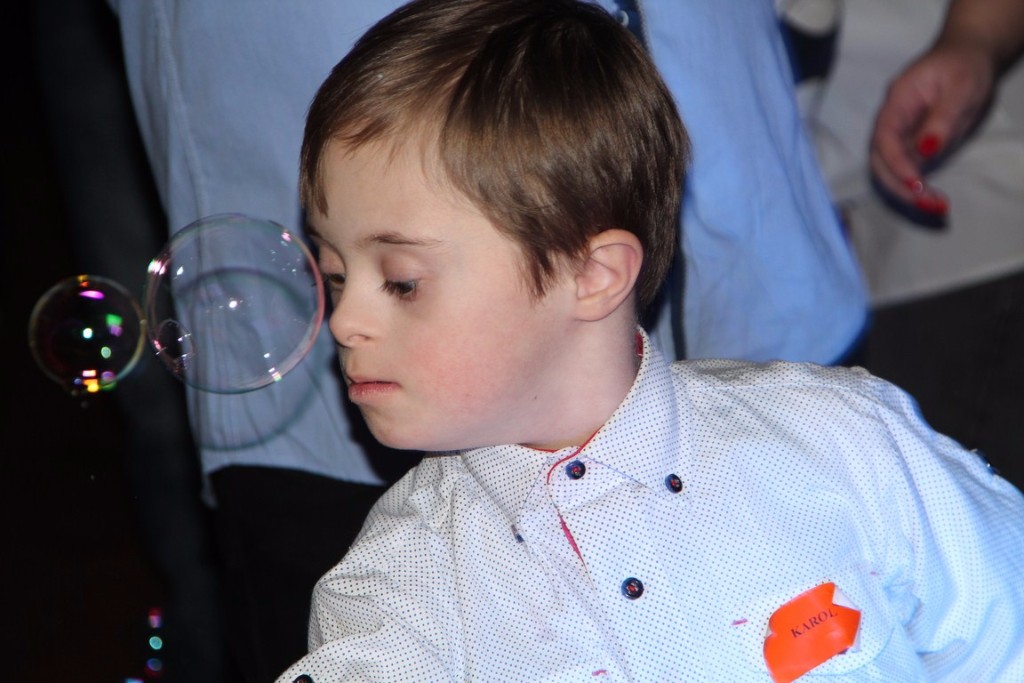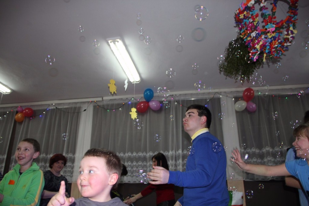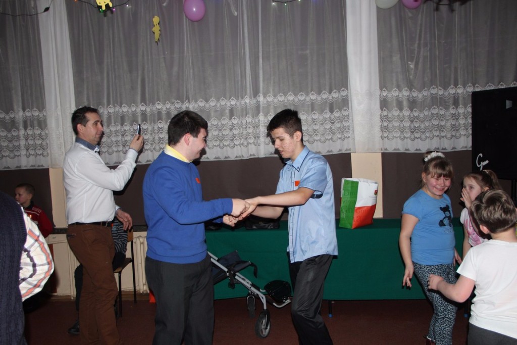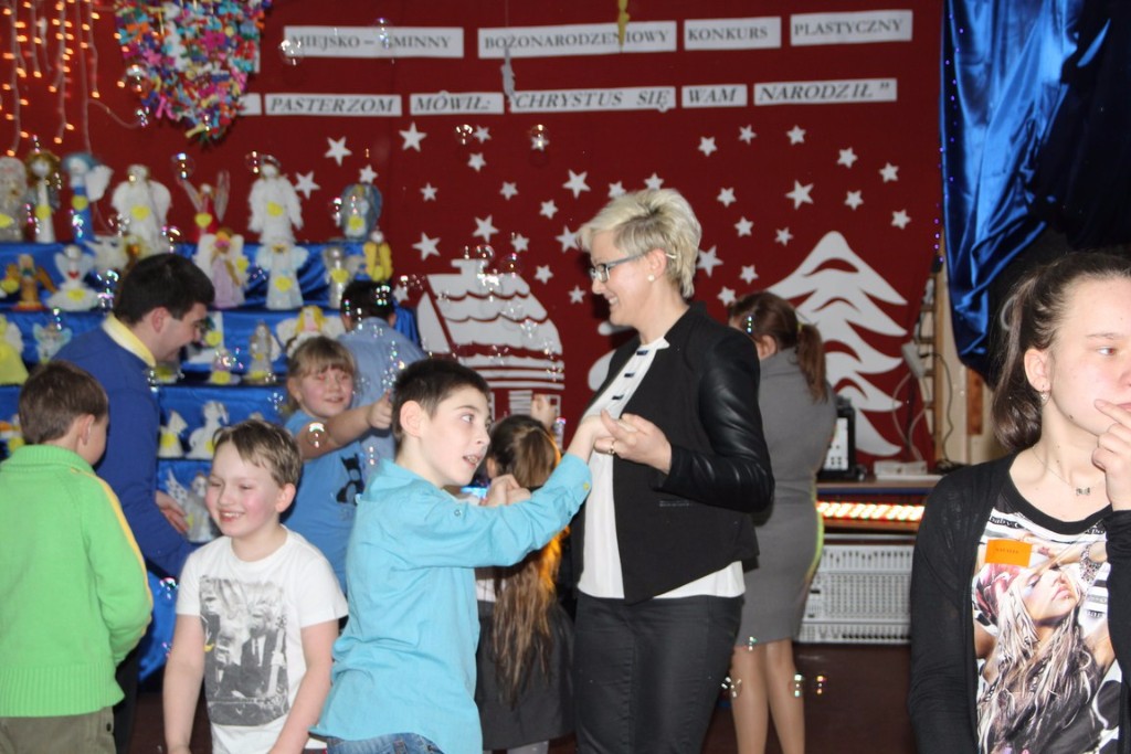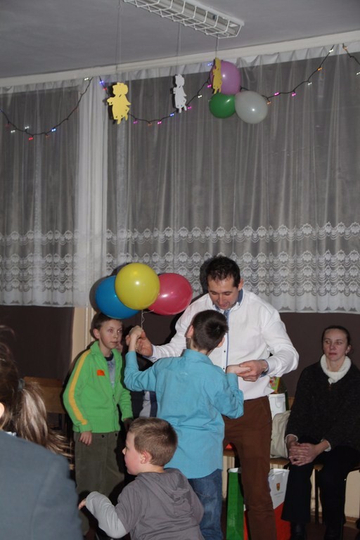 Potem rozpoczął się wyczekiwany przez dzieci bal. Poprowadził go DJ Lech Zwoliński. Przy błysku profesjonalnego oświetlenia, dźwiękach muzyki i kolorowych bańkach mydlanych wszyscy bawili się wyśmienicie! Humor dopisywał zarówno dzieciom, rodzicom, nauczycielom jak i przybyłym gościom. Dorośli bawili się wspólnie z dziećmi. Były kółeczka, korowody, tańce w parach i tańce indywidualne. Wszyscy tancerze byli nagradzani drobnymi prezentami. W czasie przerw w zabawie na dzieci czekał słodki poczęstunek.