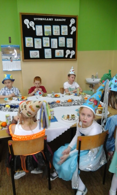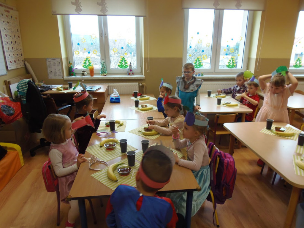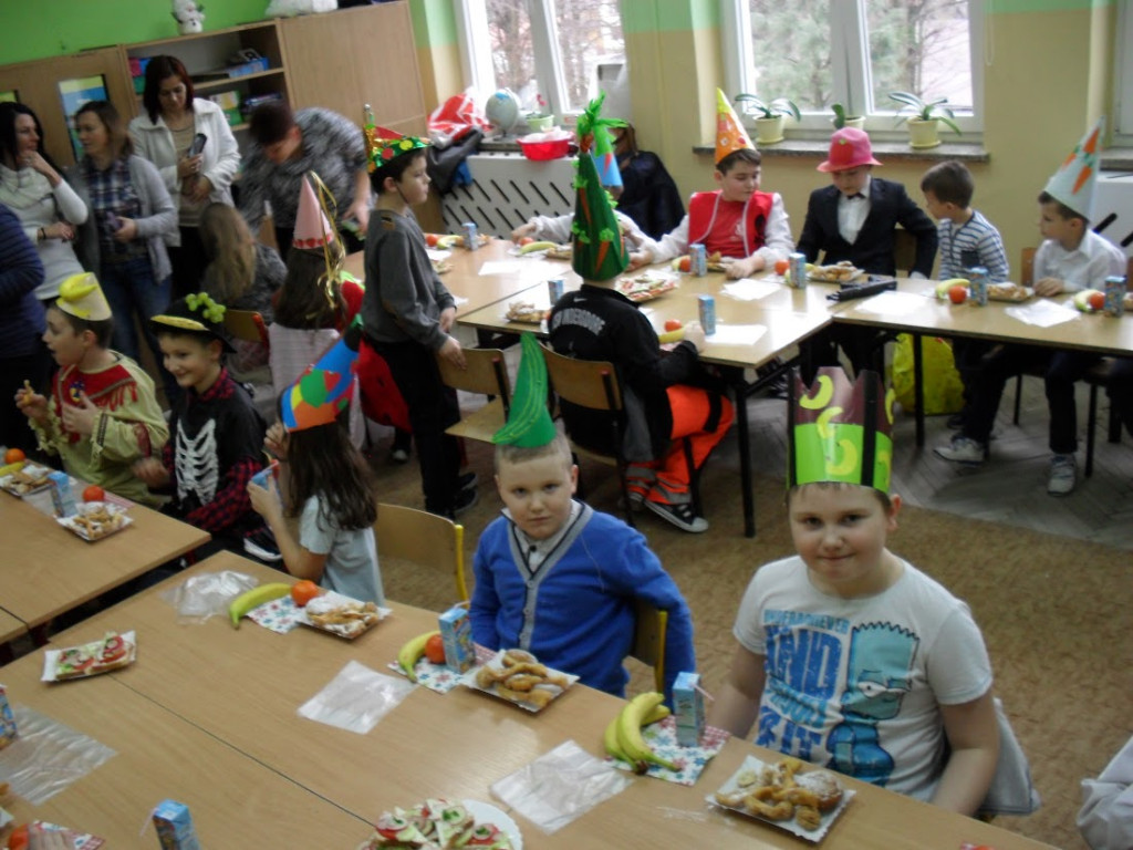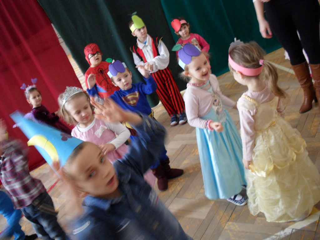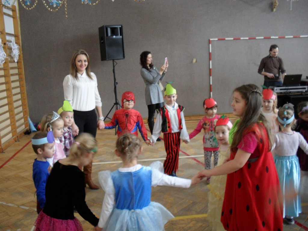 Tegoroczna zabawa karnawałowa dla uczniów klas 0-3 upłynęła pod hasłem „Na balu u Królowej Zimy są owoce i jarzyny”. Do tańca przygrywał DJ, który zachęcał do wspólnej zabawy wesołych przebierańców.