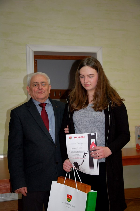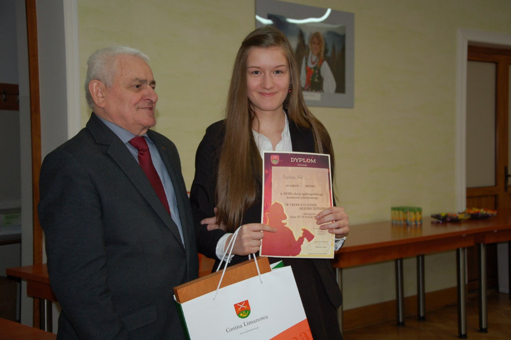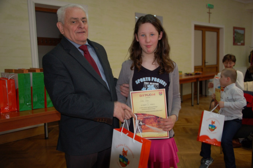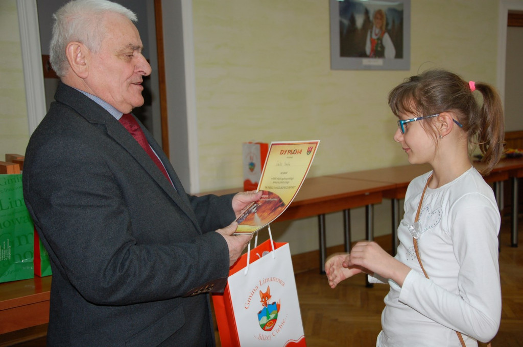 Laureatom gminnego etapu Konkursu oraz osobom wyróżnionym wręczone zostały nagrody i dyplomy przez Wójta Gminy Limanowa – Władysława Pazdana oraz Dyrektor Gminnego Zespołu Obsługi Szkół w Limanowej – Edytę Król.