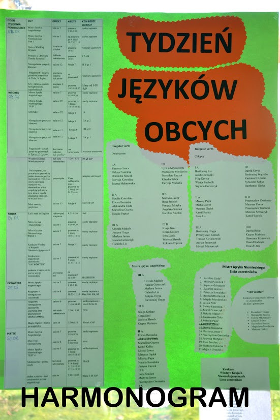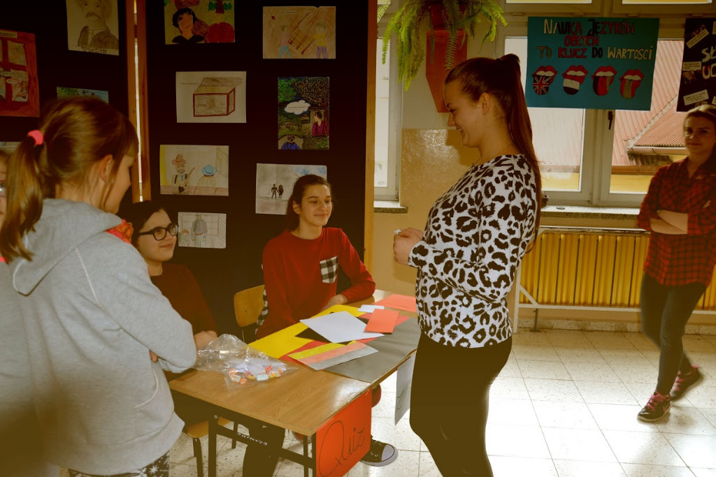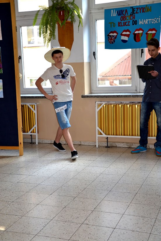Uczniowie klas I gimnazjalnych mogli wykazać się zdolnościami aktorskimi w scenkach z życia w języku niemieckim, a uczniowie klasy pierwszej szkoły podstawowej obejrzeli bajkę w języku angielskim z serii Magic English. Poza tym można było sprawdzić, czy jest się aktywnym słuchaczem i udzielać odpowiedzi na temat przeczytanej przez radiowęzeł historyjki w języku angielskim pt. ,,Sally’s Birthday”.