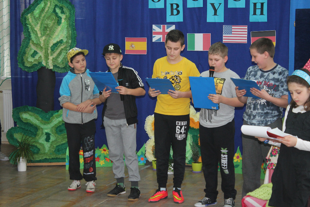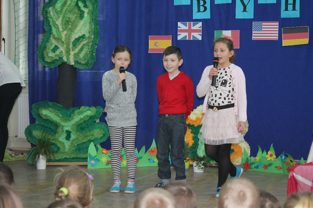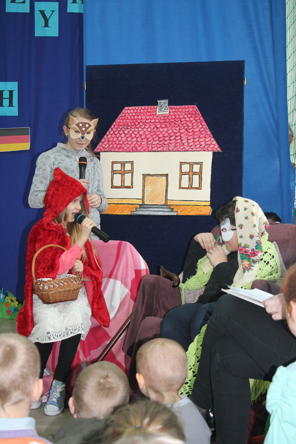 Następnie uczniowie klas IV i V zaprezentowali swoje umiejętności aktorskie oraz językowe w przedstawieniu pt. „Little Red Riding Hood”, czyli „Czerwony Kapturek”. Występ spotkał się z wielkim zainteresowaniem zgromadzonej publiczności. Podkreślić należy nie tylko talent aktorski i językowy, ale również scenografię i kostiumy wykonane przez uczniów. Całe przedsięwzięcie wzbudziło w uczniach wiele pozytywnych emocji. Również z okazji Dnia Języków Obcych w szkole zostały zorganizowane dwa konkursy: konkurs piosenki angielskiej oraz konkurs plastyczny na kartkę ze słownika obrazkowego pt. „Picture Dictionary”.