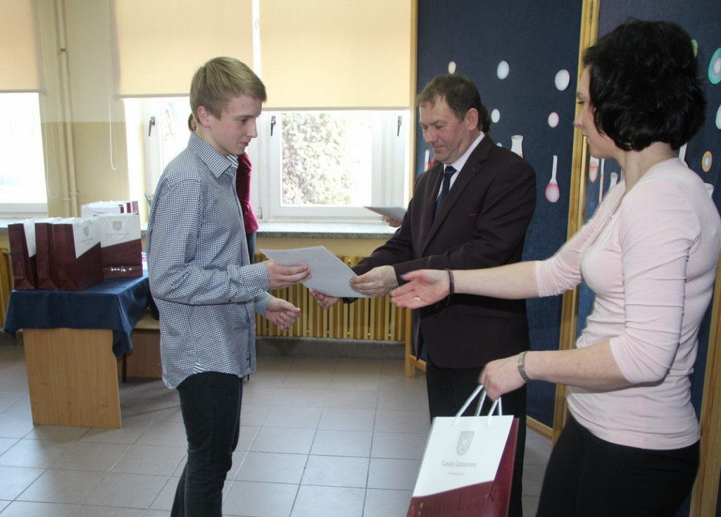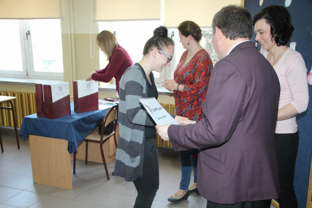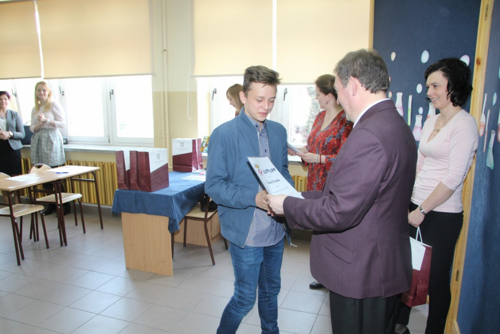 Nagrody oraz dyplomy na zakończenie Konkursu wręczyli jego uczestnikom: Zastępca Wójta Gminy Limanowa – Marian Mąka, Dyrektor Gminnego Zespołu Obsługi Szkół w Limanowej – Edyta Król oraz Dyrektor Zespołu Szkół w Pisarzowej– Magdalena Strzebońska. Podziękowania otrzymali również nauczyciele przygotowujący uczniów do Konkursu.