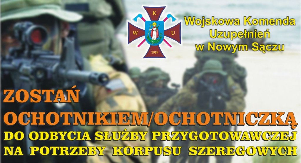 Oficjalny serwisWojskowa Komenda Uzupełnień w Nowym Sączu poszukuje ochotników /ochotniczek do odbycia służby przygotowawczej na potrzeby korpusu szeregowych. W 2016 r. zaplanowano dwa turnusy odbywania służby przygotowawczej, a czas trwania każdego z nich wynosi 4 miesiące.