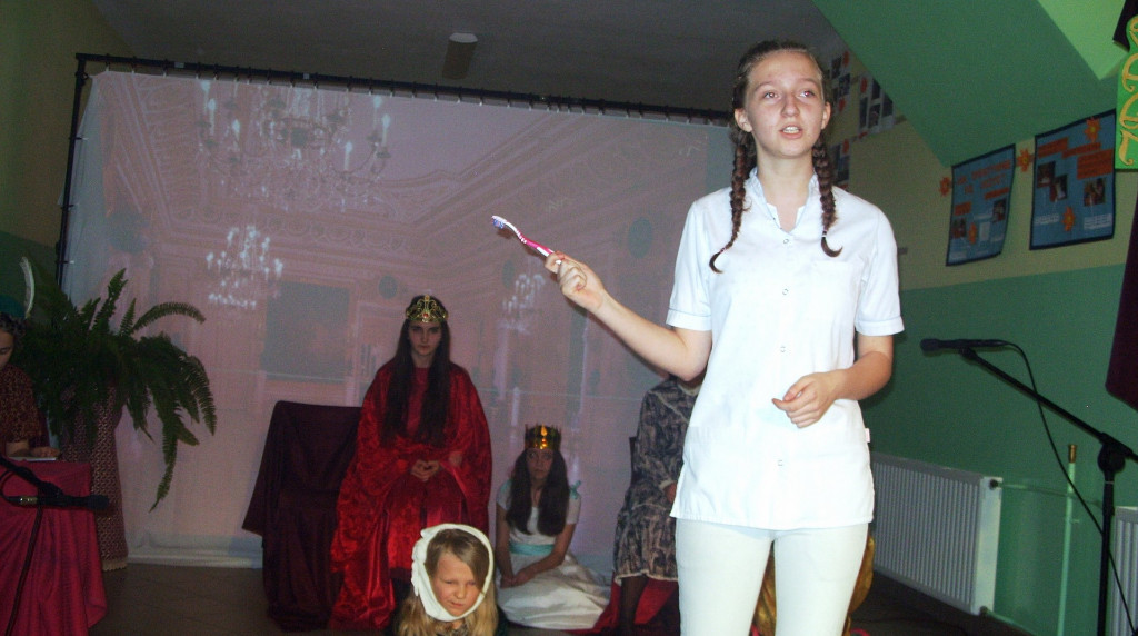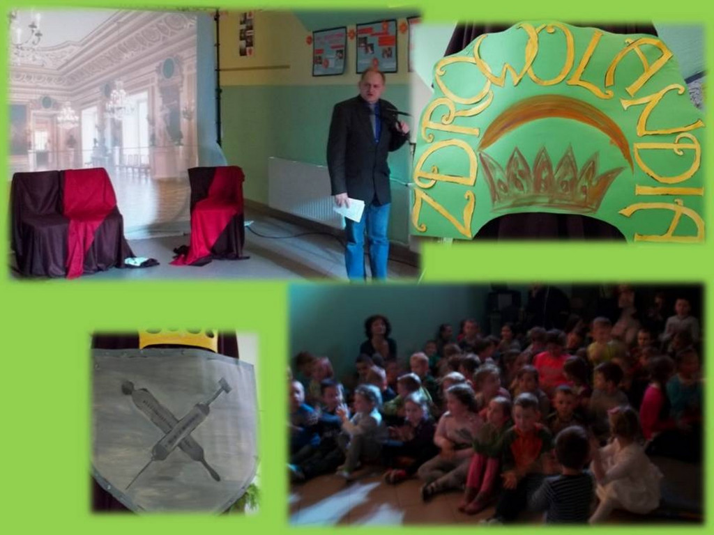 Obchody rozpoczęły się od spektaklu grupy teatralnej „Hydra” , która zaprosiła uczniów klas 0-III do królestwa Zdrowolandii. Młodzi aktorzy wcielili się w postacie Króla Zdrówko, Królowej Rzepki, Królewicza Białego Ząbka, Królewny Piękne Liczko, Anemii, Stomatologii, Inhalacji, Czarownicy – Próchnicy, Wirusa, Witamin, jak i wielu innych bardzo istotnych dla zdrowia bohaterów. Celem przedstawienia było uświadomienie, jak ważną rolę w życiu odgrywa zdrowy styl życia, do czego może doprowadzić złe odżywianie się, czy chociażby brak higieny jamy ustnej. Można było również znaleźć wiele rad i wskazówek, jak dbać i szanować swoje zdrowie oraz jak walczyć z chorobą na wypadek, gdy ta zaatakuje. Piękna gra aktorska, barwne kostiumy, scenografia, „żywa” muzyka oraz spora dawka humoru sprawiły, że widzowie byli zachwyceni przedstawieniem.