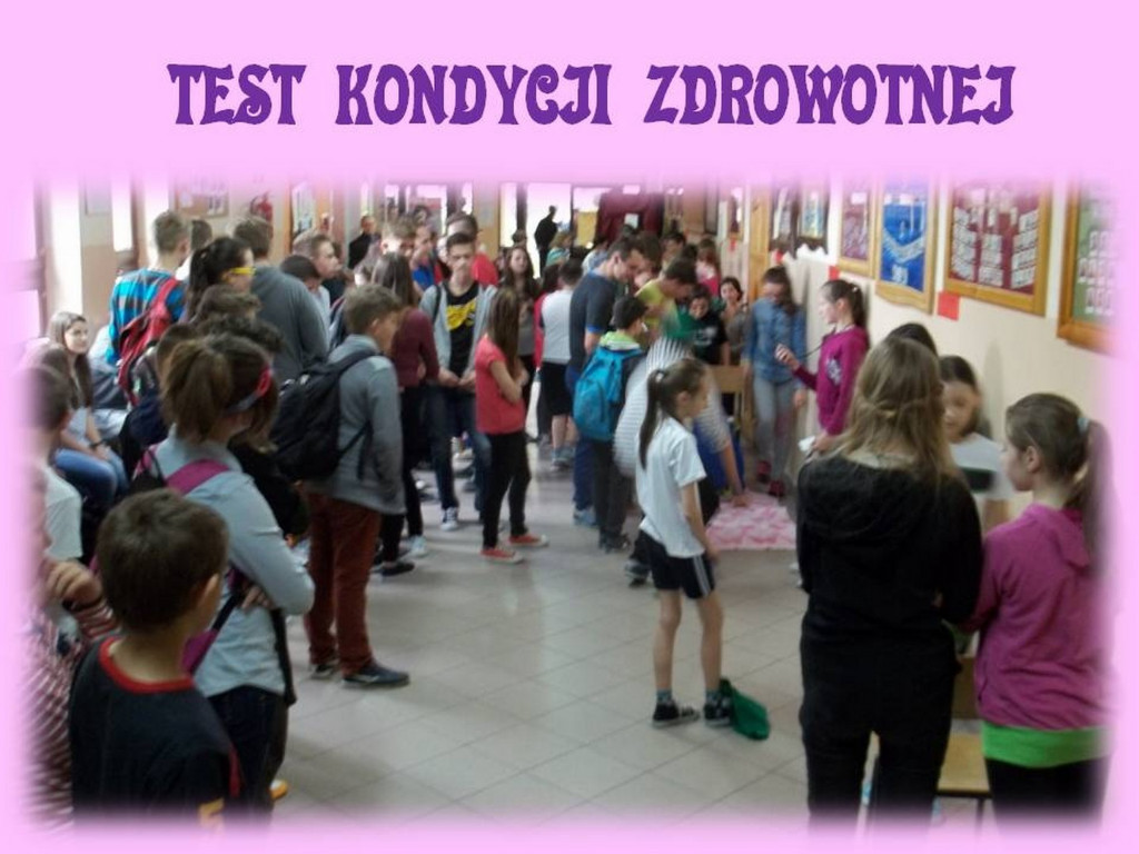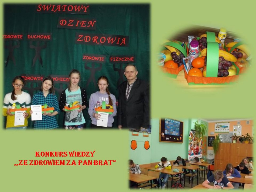 Samorząd Uczniowski z kolei, przygotował na ten wyjątkowy dzień m.in. konkurs wiedzy ,,Ze zdrowiem za pan brat”. Przystąpiło do niego 27 uczniów, a uczestnicy musieli wykazać się wiedzą dotyczącą zasad zdrowego żywienia i profilaktyki chorób. Osoby z największą ilością punktów otrzymały w nagrodę kosze owoców i innych zdrowych produktów. Członkowie SU zapraszali również do udziału w zorganizowanym w jednej z klas pokazie multimedialnym ,,Historia Berniego”, podczas którego można było uzyskać informacje o cukrzycy, jej objawach i sposobie leczenia, zachęcali też do sprawdzenia swojej kondycji zdrowotnej poprzez wykonanie siedmiu ćwiczeń w określonym czasie. Po zakończeniu testu sprawnościowego najbardziej wytrwali, aby zregenerować siły, otrzymywali batonik musli („domowej roboty”).
