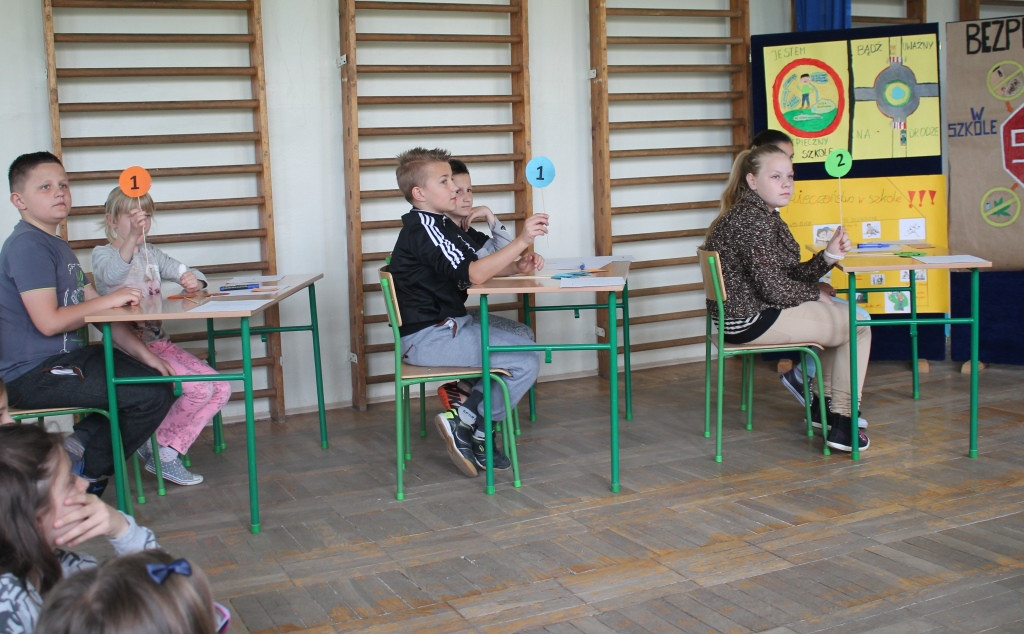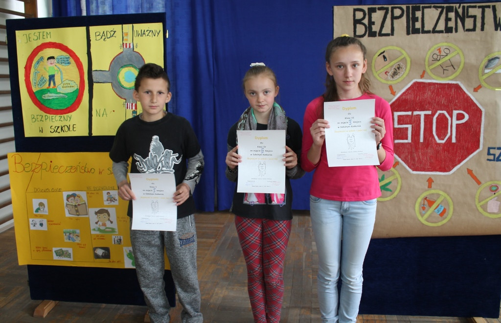 Uczniowie klas IV - VI mieli szansę rywalizować ze sobą o punkty, które zasilą pakiet „Super klasy”. W przedsięwzięciu udział wzięli wszyscy uczniowie klas, którzy zostali wcześniej odpowiednio podzieleni na drużyny. Celem poszczególnych zespołów zadaniowych było jak najlepsze przygotowanie się do właściwej konkurencji. Jedni mieli za zadanie wykonać plakat plastyczny łączący się z hasłem konkursowym, inni solidnie zapoznawali się z przepisami ruchu drogowego oraz przypominali sobie zasady właściwego reagowania w chwili niebezpieczeństwa. Ciekawa okazała się także konkurencja, podczas której zawodnicy omawiali wylosowane przedmioty znajdujące się w apteczce szkolnej bądź w torbie lekarza. Część dzieci musiała natomiast zaprezentować swoje zdolności aktorskie i odegrać scenki dramowe. Drużyny losowały kartki z krótkim opisem zdarzenia. Zadanie polegało na przygotowaniu, a następnie odegraniu scenki, w której przedstawiono skuteczne sposoby pomagania osobom będącym ofiarami agresji lub przemocy. Na koniec nie zabrakło również zagadek. Konkurs odbywał się „na żywo” z aktywnym udziałem publiczności. Udział w konkursie pozwolił wszystkim uczniom szkoły przypomnieć sobie najważniejsze zasady bezpieczeństwa oraz sposoby radzenia sobie z przemocą.