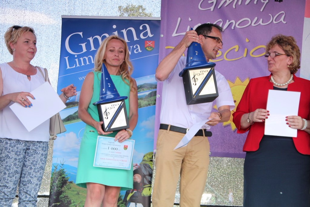 Dyrektorzy szkół Bogdan Woźniak oraz Paweł Ciuła odebrali z rąk wójta statuetki oraz czeki. Akcentem podsumowującym tegoroczną edycję Przeglądu były występy, które kolejno miały miejsce na scenie.