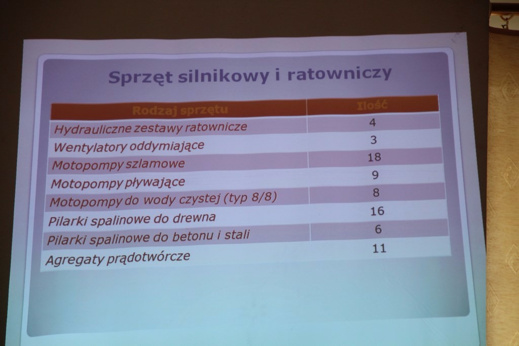 - utrzymanie w stałej gotowości bojowej i sprawności technicznej samochodów motopomp i sprzętu przeciwpożarowego we wszystkich jednostkach OSP,