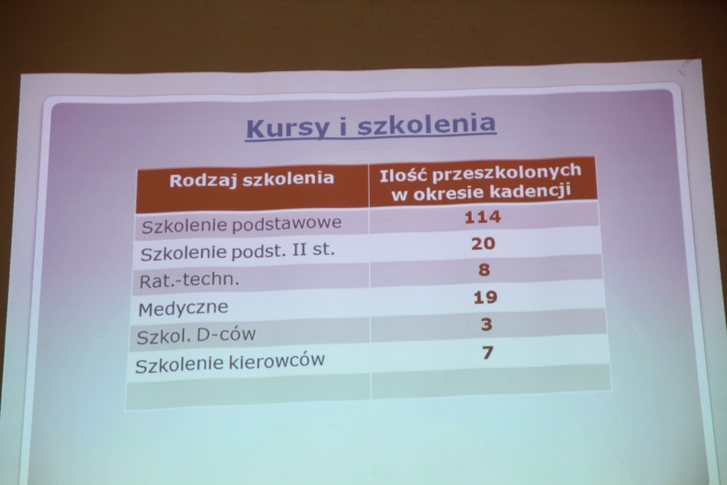 Po przedłożeniu szczegółowych sprawozdań z działalności Związku za okres mijającej kadencji oraz prezentacji najważniejszych zmian które dotyczyły Ochotniczych Straży Pożarnch, przystąpiono do wyboru nowych organów Oddziału Miejsko-Gminnego Związku OSP RP.