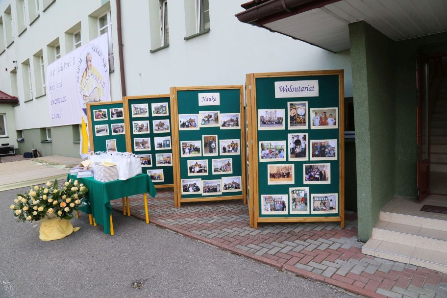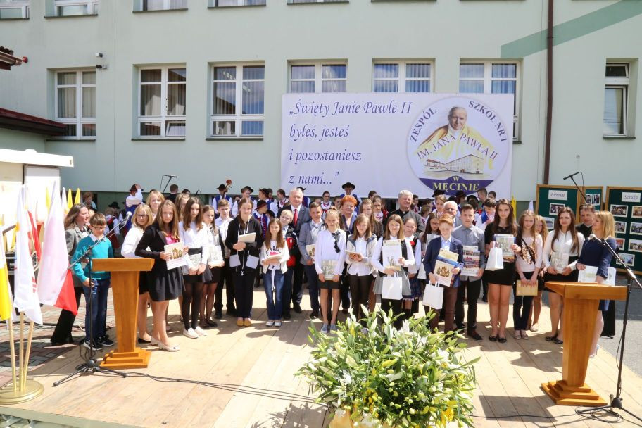 Na zakończenie zaproszeni goście złożyli pamiątkowe wpisy w kronice szkolnej i zostali obdarowani okolicznościowymi płytami, prezentującymi dorobek szkoły z ostatniego dziesięciolecia. Wszyscy uczniowie zostali zaproszeni na degustację „papieskich” kremówek.