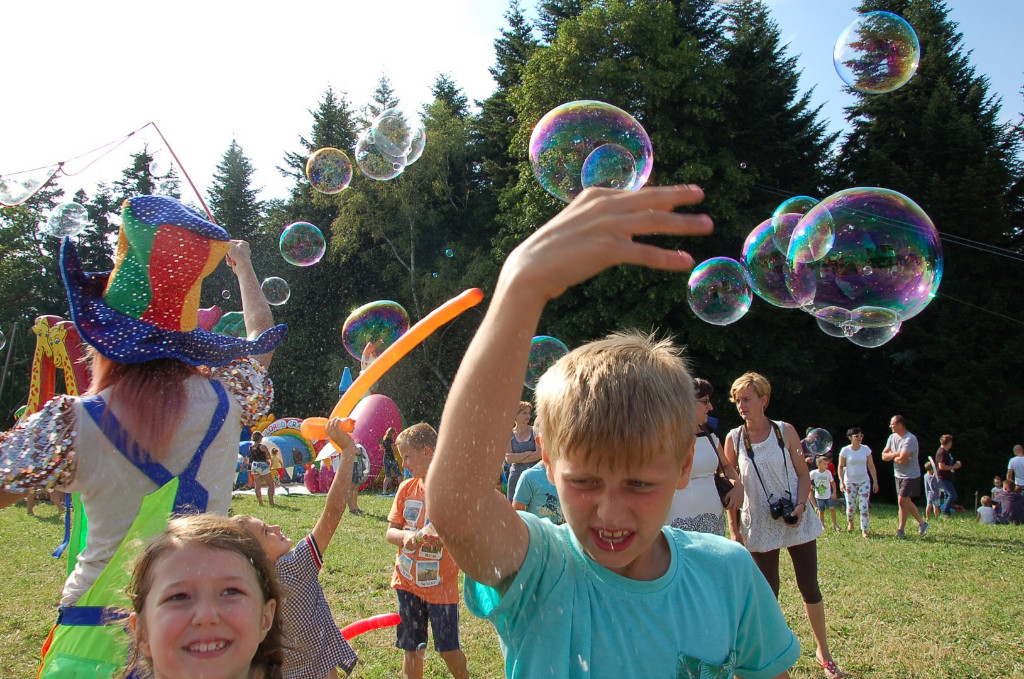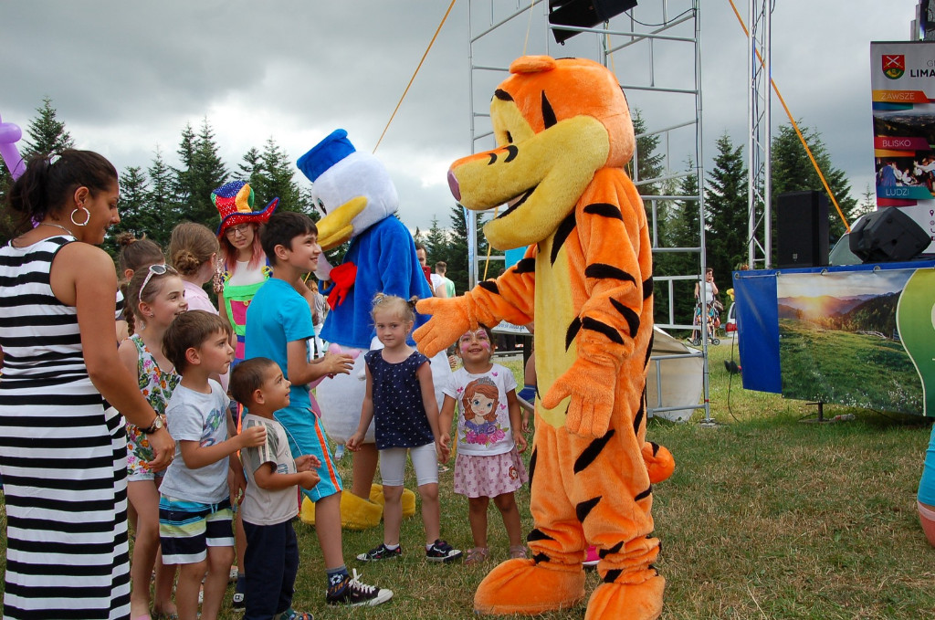I tak kolejno na scenie miały miejsce poszczególne atrakcje zaplanowane na niedzielne popołudnie, były zabawy i konkursy dla najmłodszych, występy grup dziecięcych z Przedszkola Samorządowego w Tymbarku, z ZSS n4 w Limanowej, z Zespołu Szkół nr 2 w Starej Wsi gdzie oprócz tanecznych popisów zespołu „Diverse” muzycznie zaprezentowała się także Justyna Hybel. W trakcie występów najmłodsi bezpłatnie korzystać mogli z urządzeń dmuchanych i euro bungee , przejażdżek konnych, ścianki wspinaczkowej i zjeżdżaniu po linie, było też malowanie buziek i konkursy z nagrodami dla dzieci i rodziców.