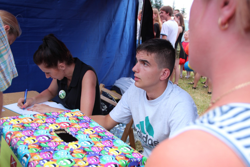 Ci których nie odstraszyła długa kolejka mogli wziąć udział w bezpłatnej loterii, której rozstrzygnięcie miało miejsce przed występami zespołów muzycznych. Łącznie rozdano 700 losów, a właściciele szczęśliwych numerków otrzymali nagrody takie jak gminne gadżety, sprzęt sportowy i turystyczny – m.in. piłki, plecaki, hamaki, namioty oraz elektroniczny – mp4, słuchawki, tablety.