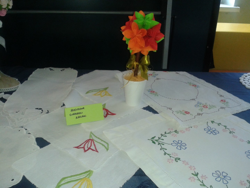 W drugim dniu zorganizowana została wystawa składająca się głównie z rękodzieła wykonanego przez uczniów i ich rodziny oraz panią Stanisławę Oleksy – miejscową mistrzynię koronki i bibułkarstwa. Na wystawie pojawiły się także prace inspirowane folklorem oraz projekty gorsetów wykonane przez uczniów. Znalazło się również miejsce na pamiątki - przedmioty codziennego użytku wykonane przez dziadków i pradziadków.