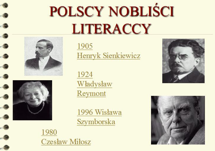 Pierwszy z projektów w formie prezentacji multimedialnej przybliżył sylwetki polskich laureatów Literackiej Nagrody Nobla. Celem pracy zespołu było poszerzenie wiedzy o Polakach, którzy otrzymali Nagrodę Nobla w dziedzinie literatury, poznanie specyfiki tej nagrody oraz przybliżenie sylwetki jej fundatora – Alfreda Nobla. Prezentacja obfitowała w rzeczowe informacje o noblistach, nieznane fakty z ich życia, zaskakujące ciekawostki oraz liczne fotografie.