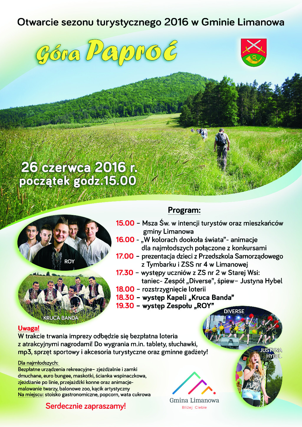 Oficjalny serwisUroczystość „Otwarcia Sezonu Turystycznego na górze Paproć” rozpocznie się o godz.15.00 tradycyjnie mszą św. w intencji turystów. Po mszy rozpoczną się prezentacje i występy przygotowane z myślą o najmłodszych, a następnie koncerty zespołów muzycznych już dla starszej publiczności.
