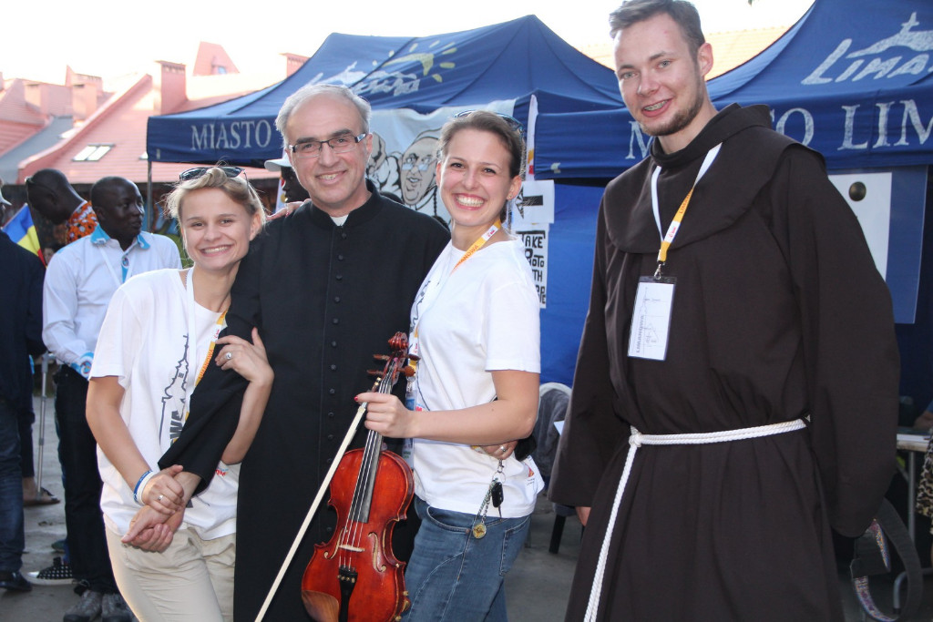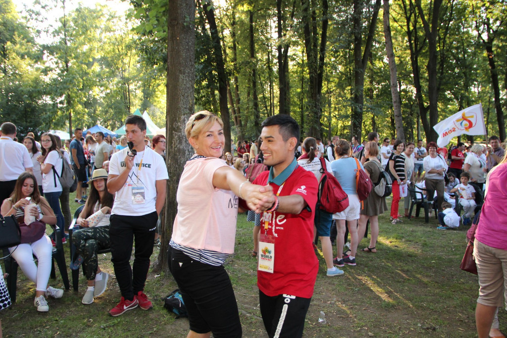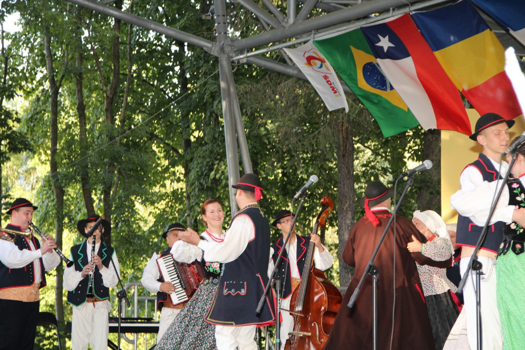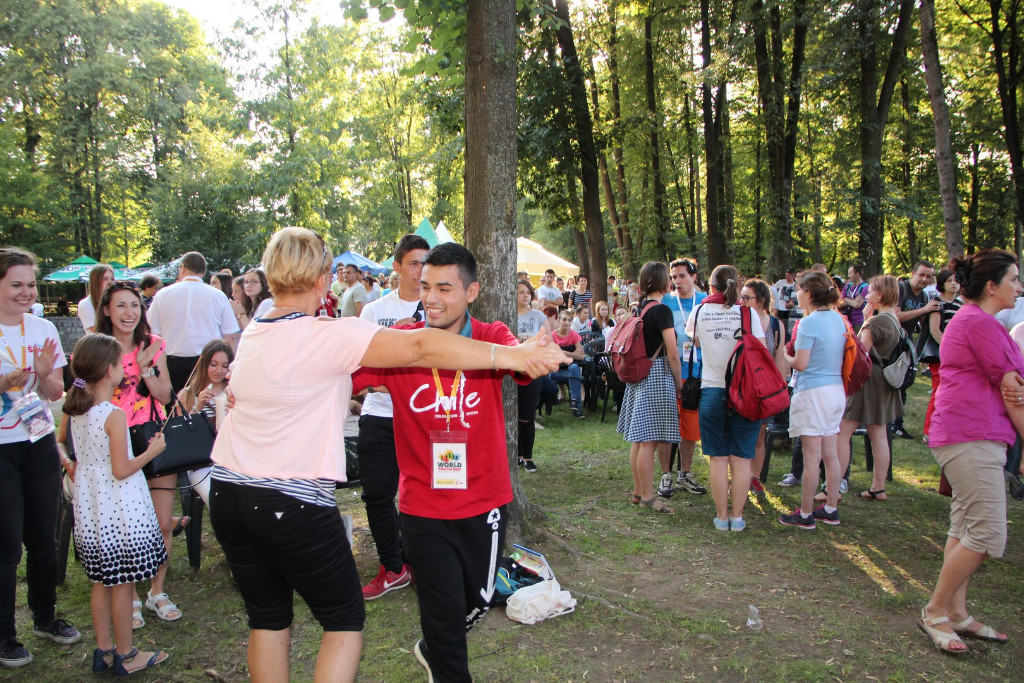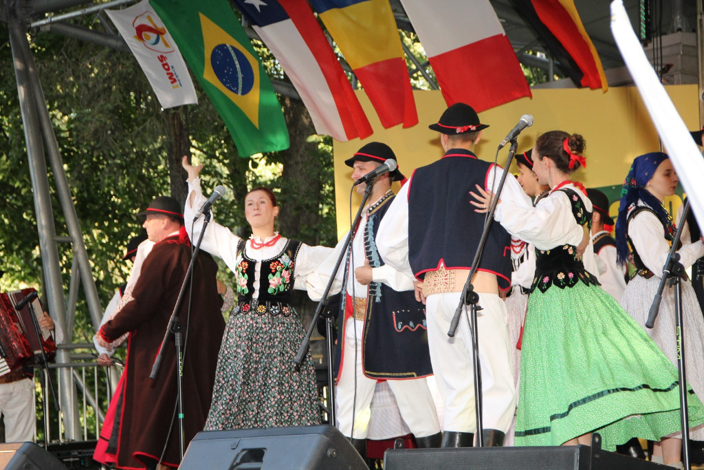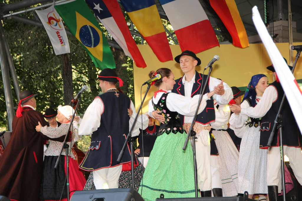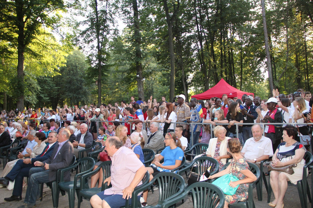 Spotkanie rozpoczęło się o godzinie 17.00 uroczystym powitaniem pielgrzymów m.in. z Francji, Włoch, Czadu, Chile, Ukrainy, Madagaskaru, Niemiec, RCA oraz Brazylii. W kolejnej części specjalnie przygotowanego na tę okoliczność programu zaprezentowały się zespoły regionalne "Limanowianie" z Limanowej oraz "Sami Swoi" z Krasnych Lasocic, ukazujących poprzez taniec i śpiew ludowy folklor i kulturę Lachów Limanowskich. Występy wzbudziły wielki zachwyt przybyłych gości, którzy z wielką radością próbowali swoich sił w naszych regionalnych tańcach.