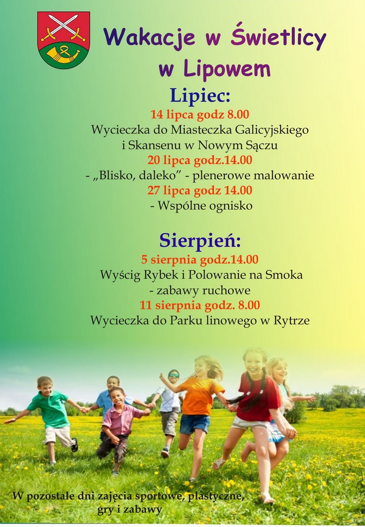 Zapraszamy dzieci i młodzież do skorzystania z przygotowanych atrakcji, życząc udanego wypoczynku!