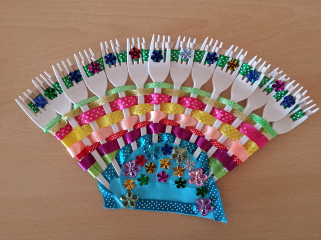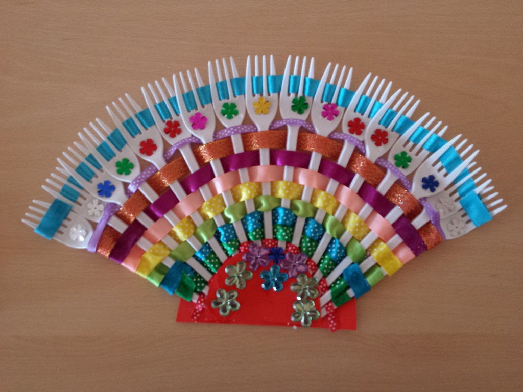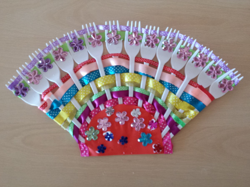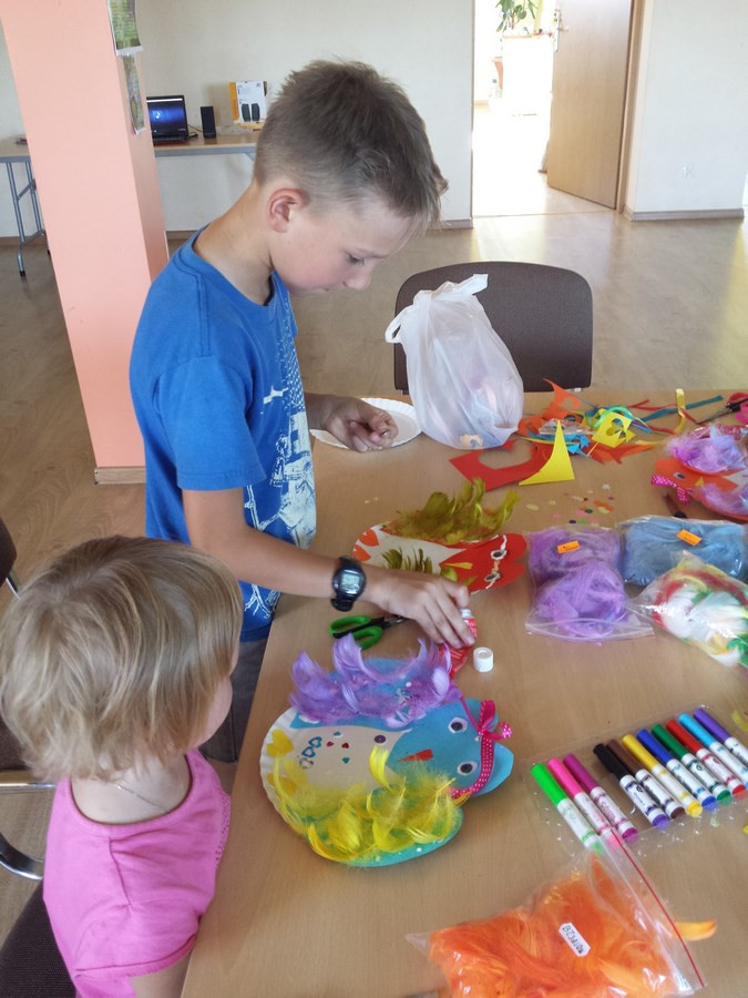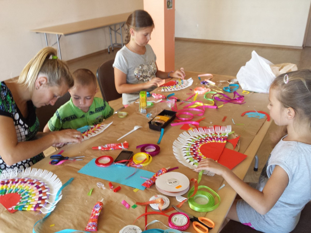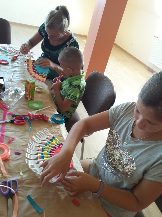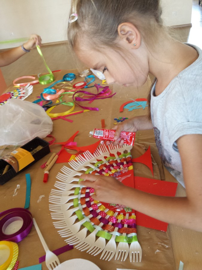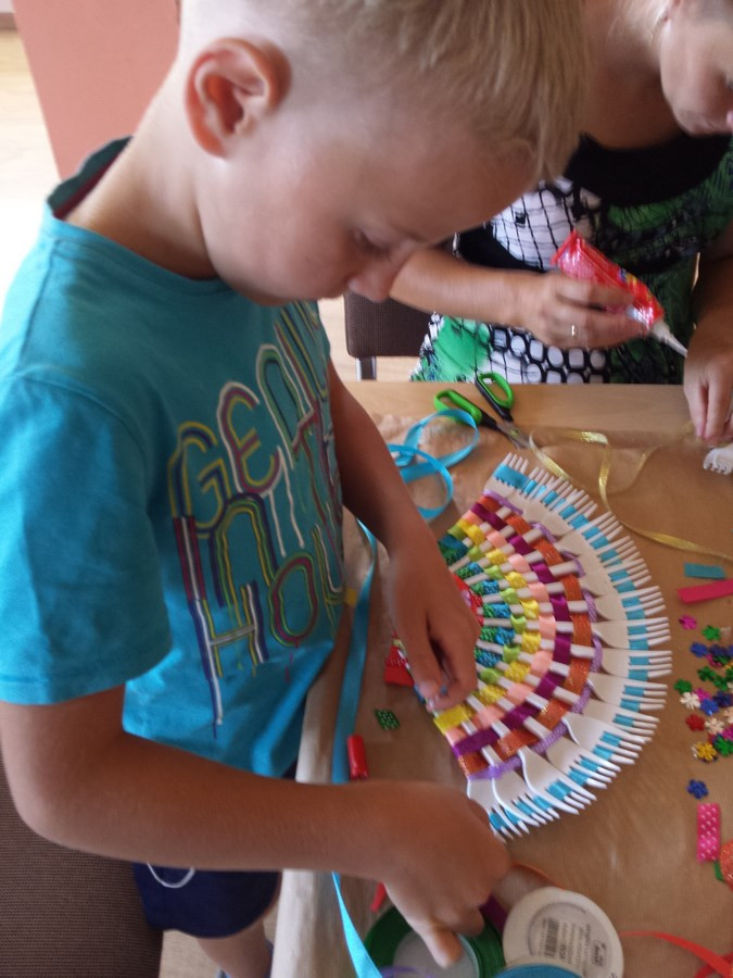 Innym razem podopieczni świetlic wykorzystując dość nietypowe elementy tworzyli barwne wachlarze. Za pomocą plastikowych widelczyków i wstążek powstały efektowne prace, które hiszpańskie tancerki z pewnością mogłyby wykorzystać do energicznego poruszania w rytm flamenco.