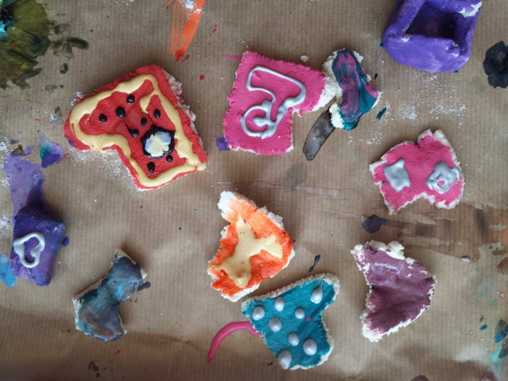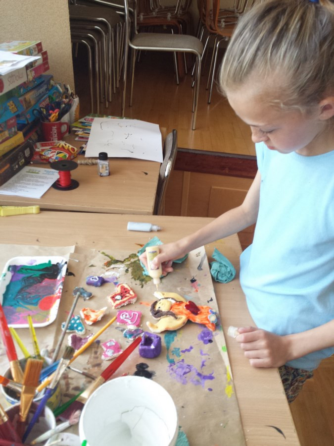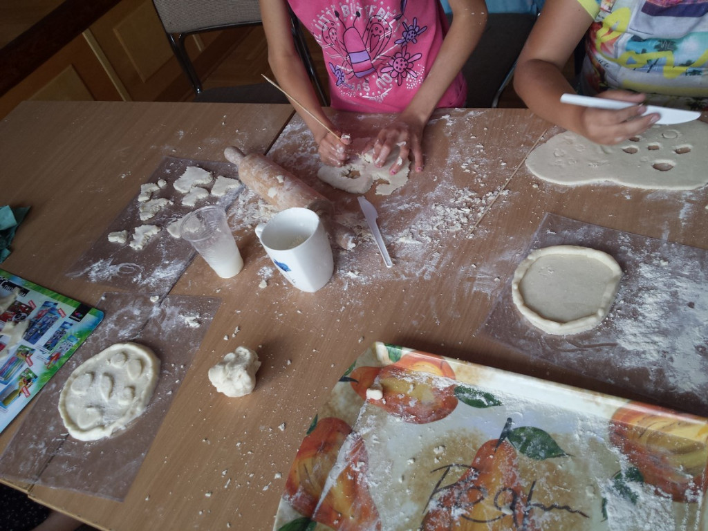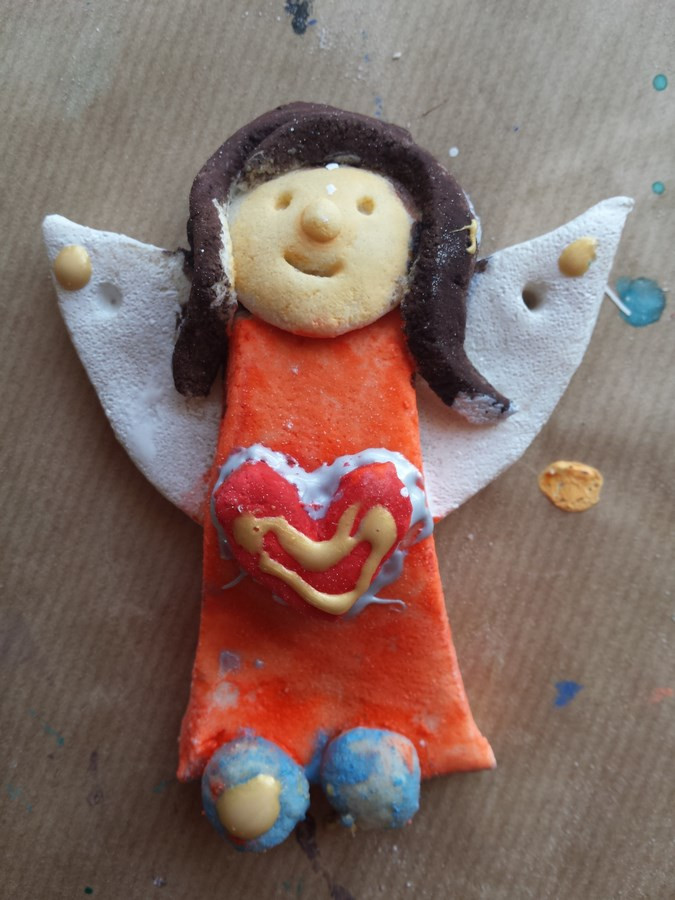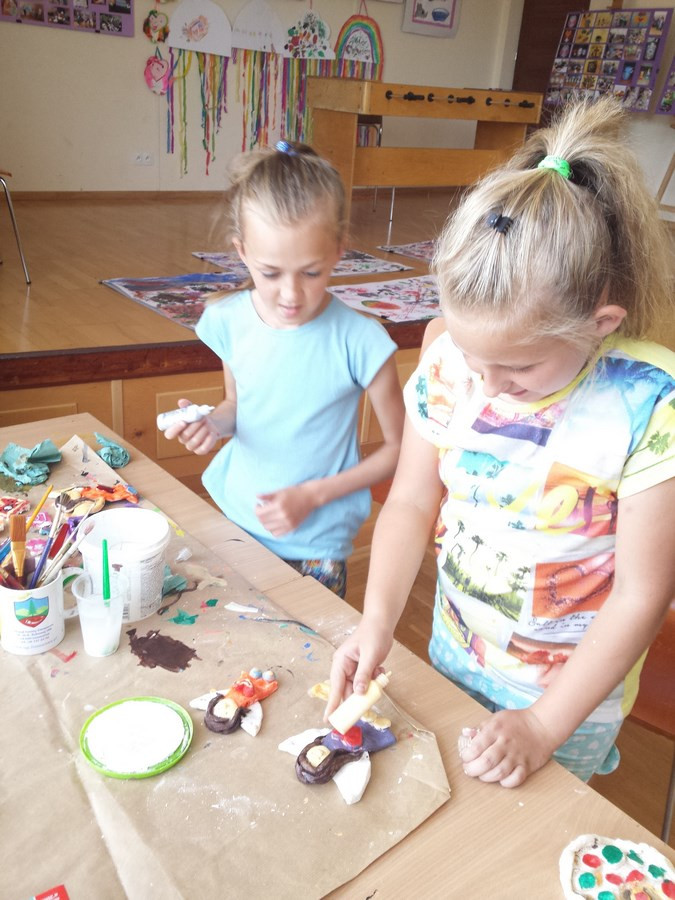 W trakcie jednych z wakacyjnych spotkań dzieci miały okazję przygotować masę solną, z której powstały kolorowe aniołki. Pomysłowość podopiecznych przełożyła się na wspaniały efekt końcowy w postaci wielokolorowych figurek. Mimo, że najmłodsi włożyli sporo pracy w wykonanie swoich dzieł to zadowolenie i satysfakcja była jeszcze większa.